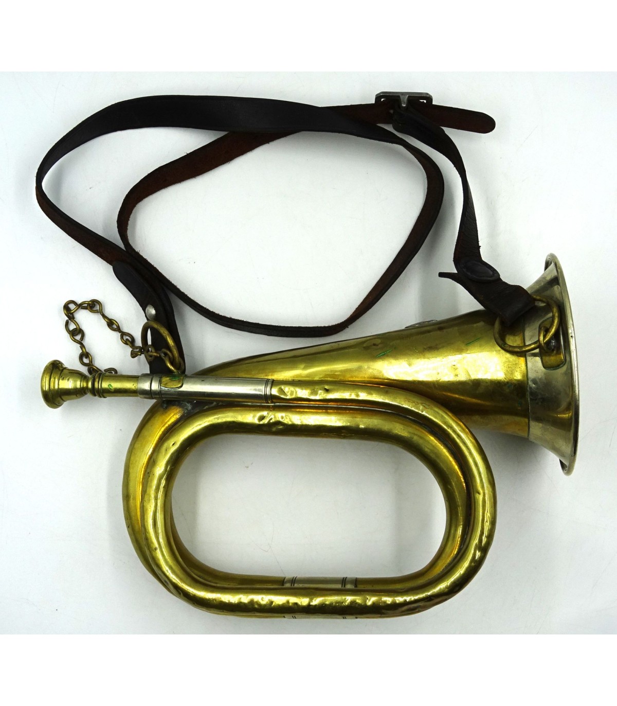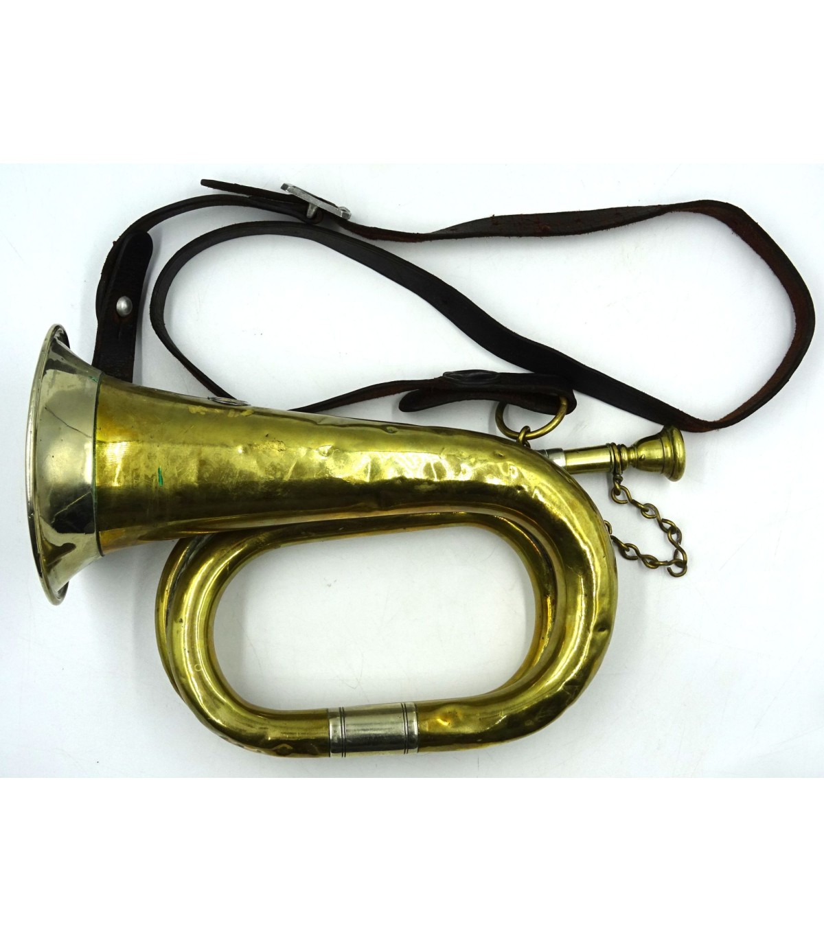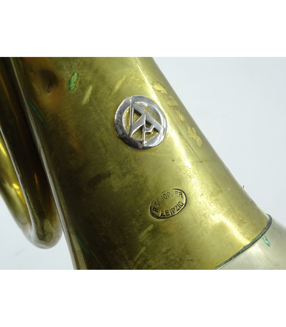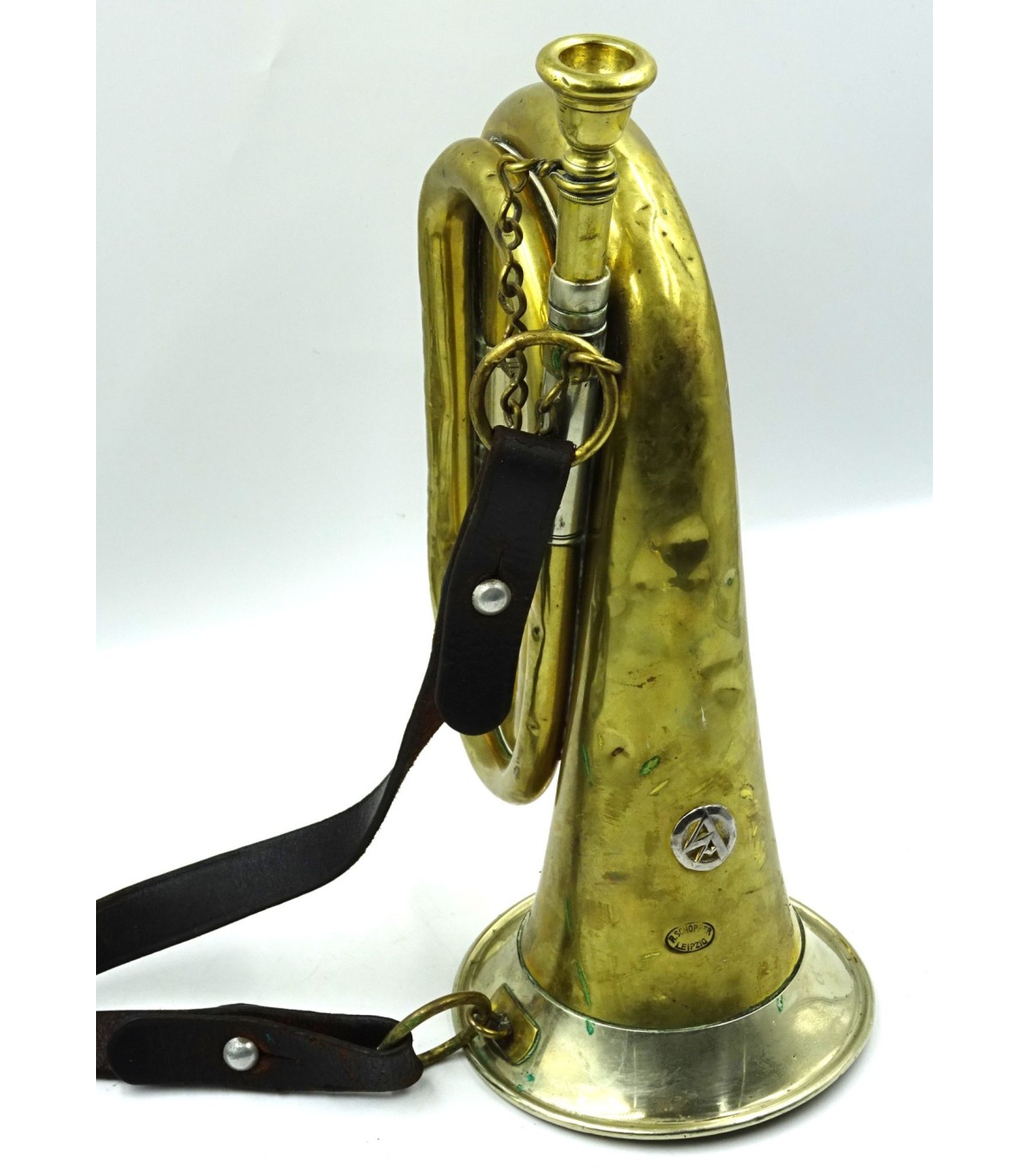 Laiton et maillechort. Fabricant R.Schopfer Leipzig. Sigle SA en relief. Avec courroie cuir. ABE.