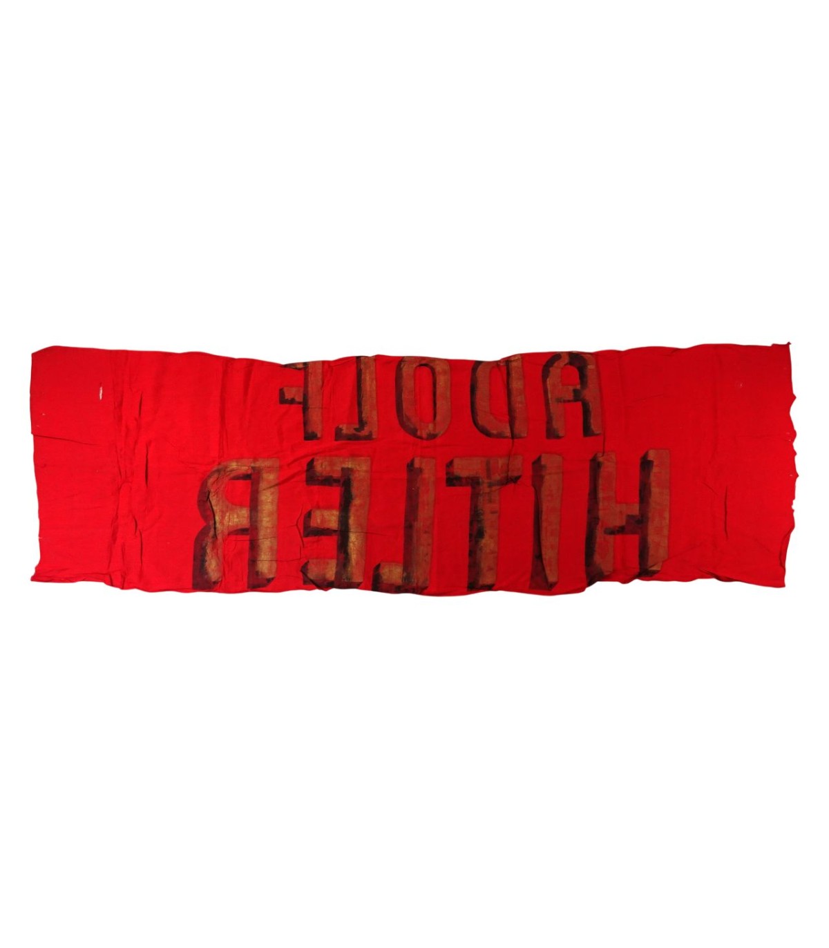 220x70cm. Lettres or et noires sur fond rouge. On peut imaginer que ce bandeau a servi à rehausser une tribune où le chancelier ou le candidat A.H. s'exprimait. Pièce de musée, probablement unique. ABE-.