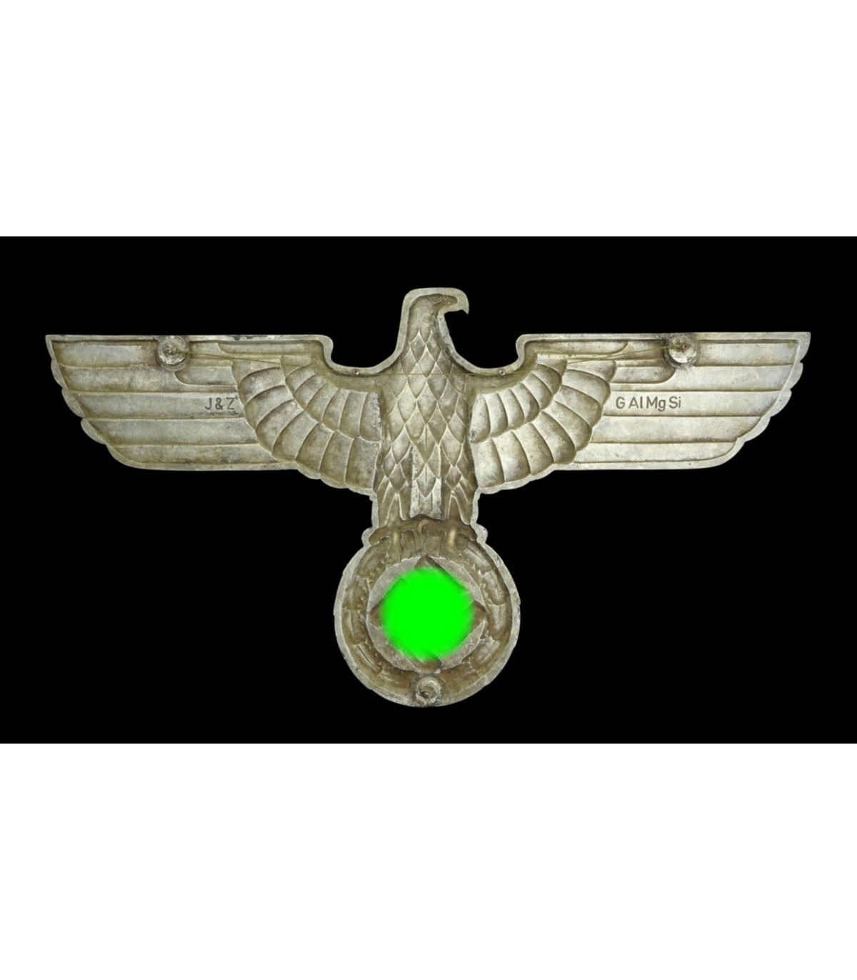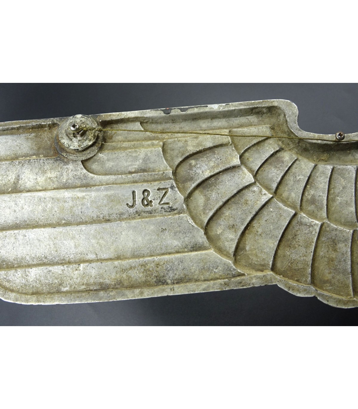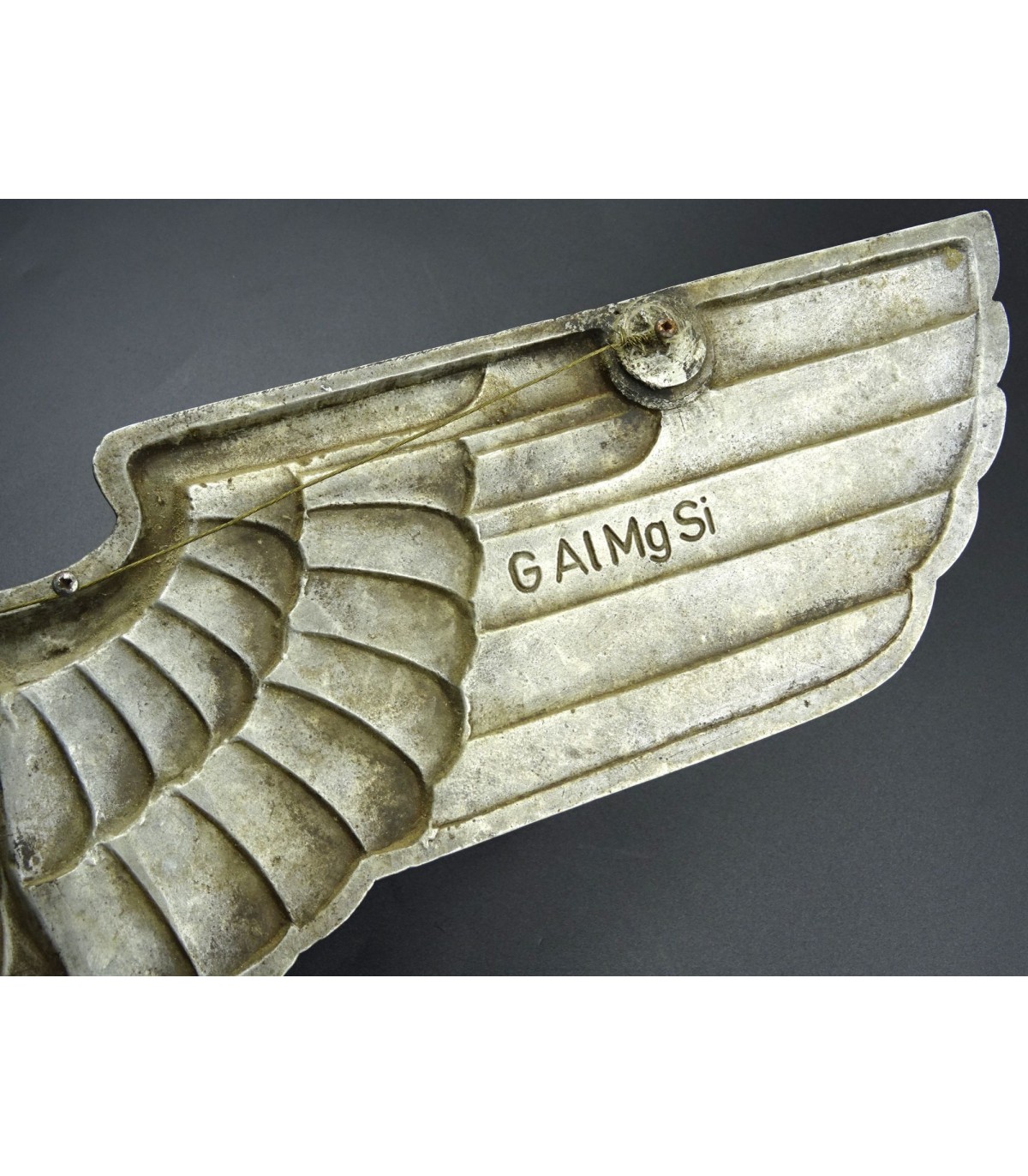Envergure 62cm. Marquage J&Z - G AlMgSi. Les fixations d'origine ont été disquées pour l'enlever de son support. 5 petites vis ont été ajoutées portérieurement pour l'accrocher au mur. Enfin un exemplaire inconestable, le marché est envahi de copies. TBE.