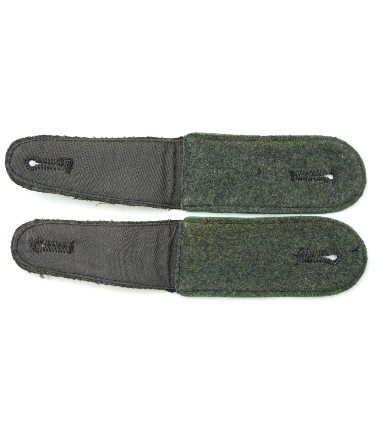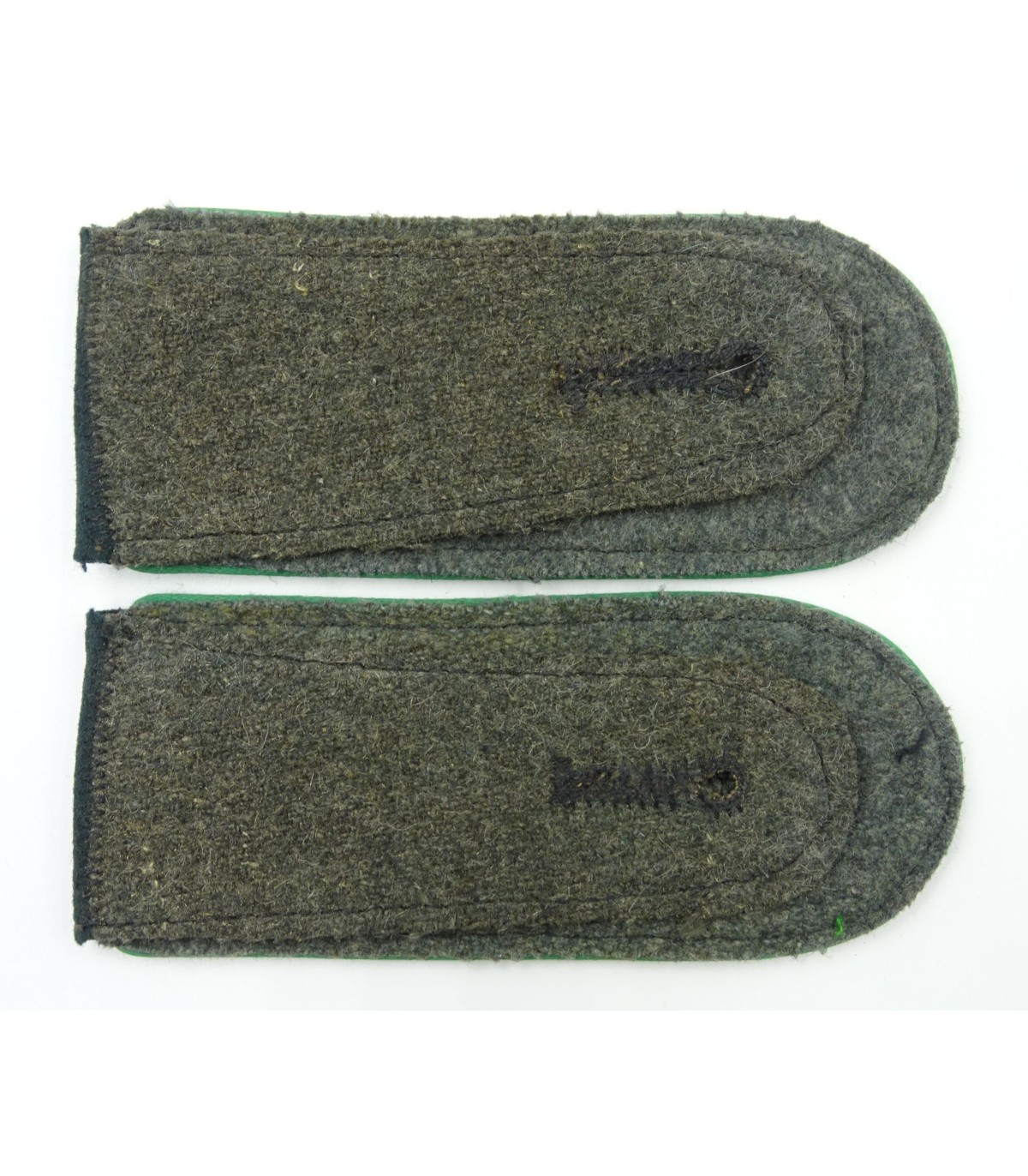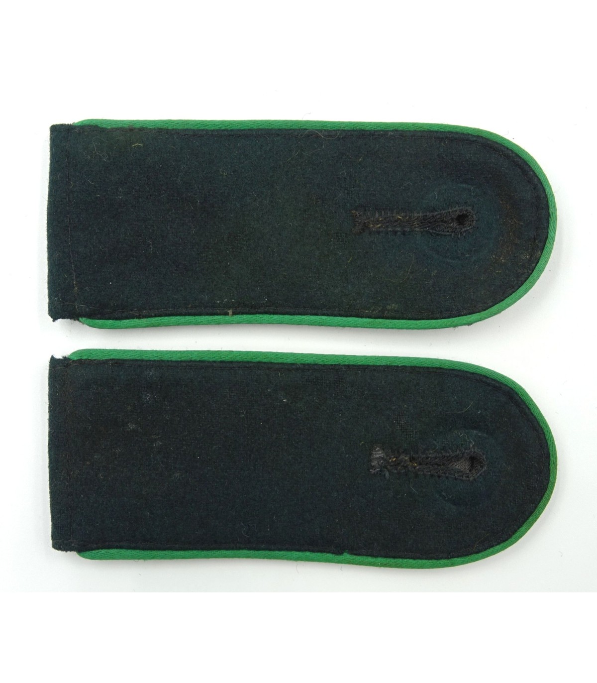 Drap vert-foncé, passepoil vert-chasseur. A languettes. TBE.