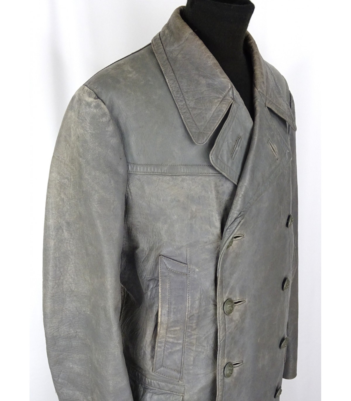 Double boutonnage. Boutons gris à l'ancre, marqués 'Besonders haltbar'. Doublure laine anthracite. Bonne taille. BE.