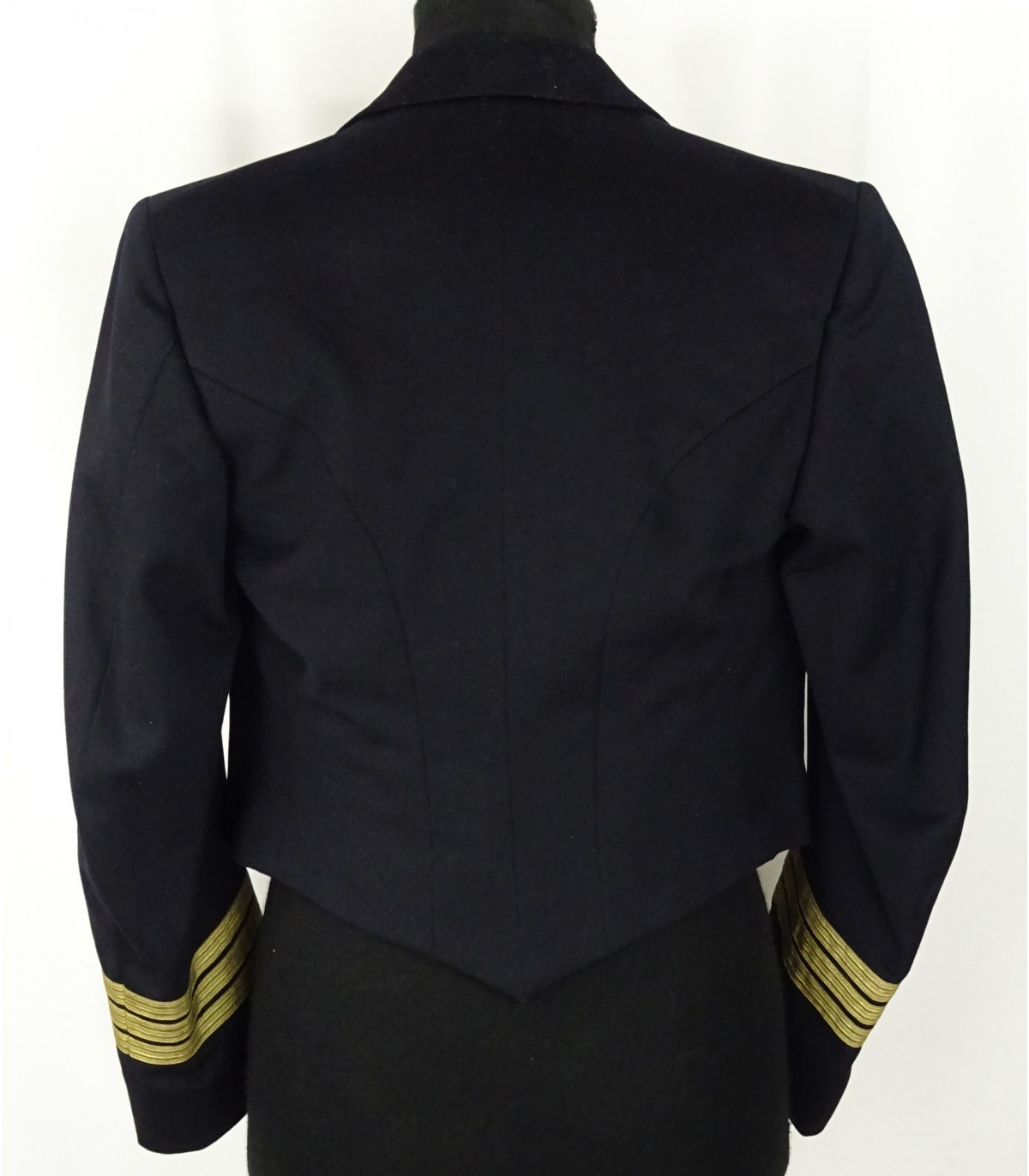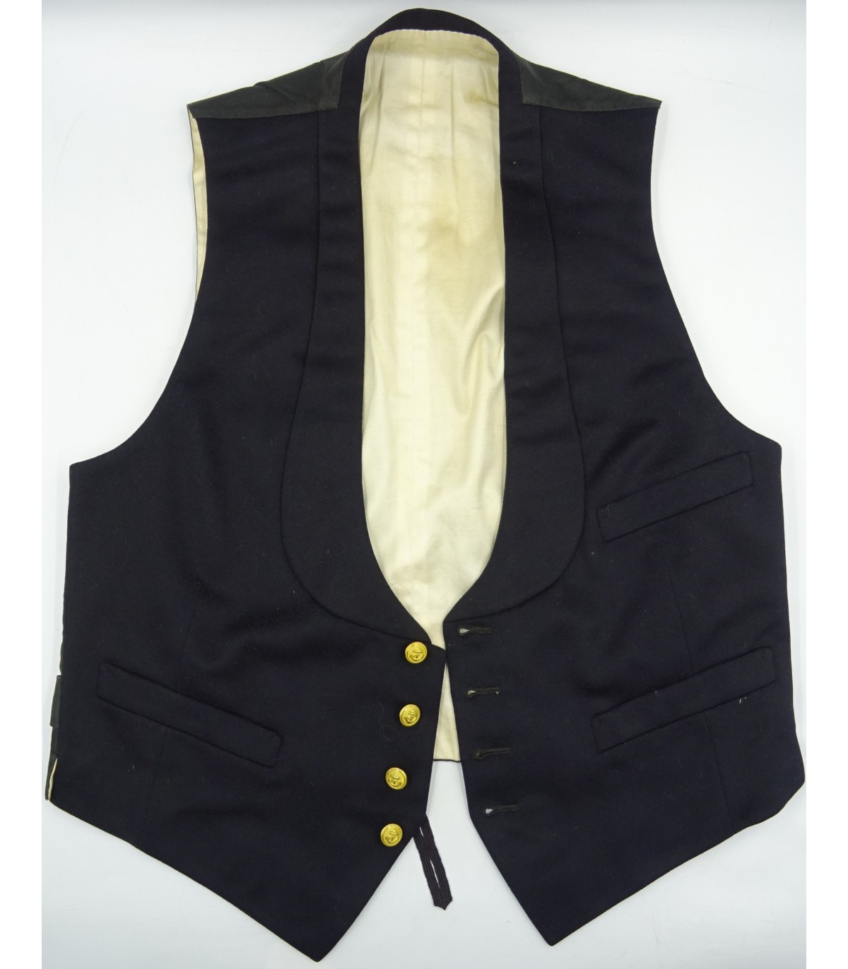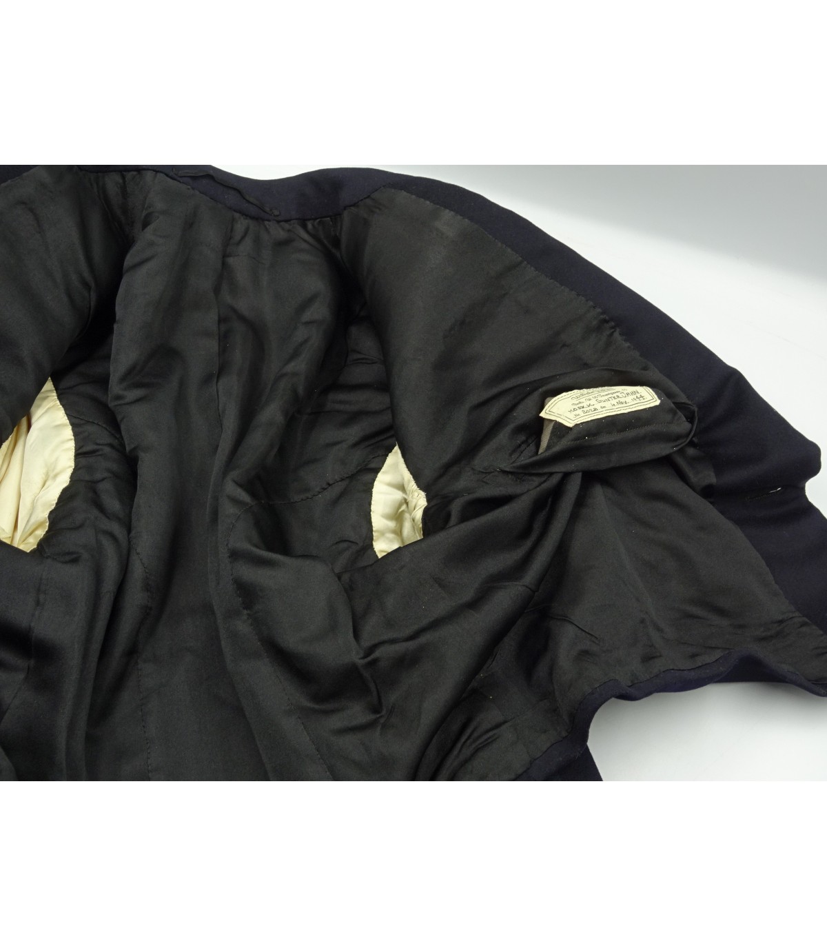 Tenue de soirée comprenant: spencer avec 3 galons de manche or, aigle de poitrine brodé main or sur fond bleu, étiquette nominative du célèbre tailleur militaire de Berlin Holters, datée de 1944. Gilet assorti et noeud papillon. On rappelle que G. Jahn était titulaire de la croix de chevalier et qu'il a commandé la 29e U-Flottille. Rarissime ensemble, digne d'un musée, et en TBE. Sur la carrière de G.Jahn, voir : https://en.wikipedia.org/wiki/Gunter_Jahn