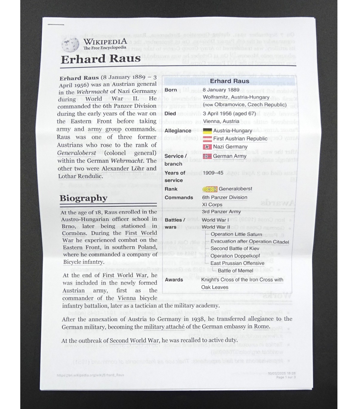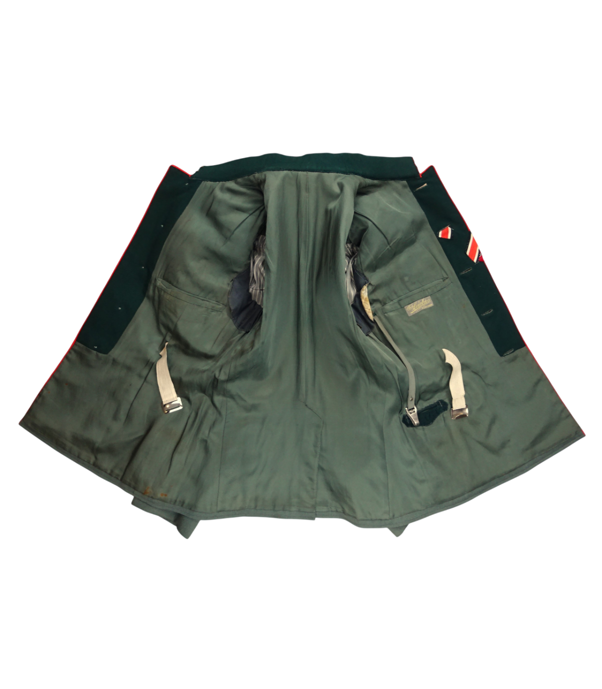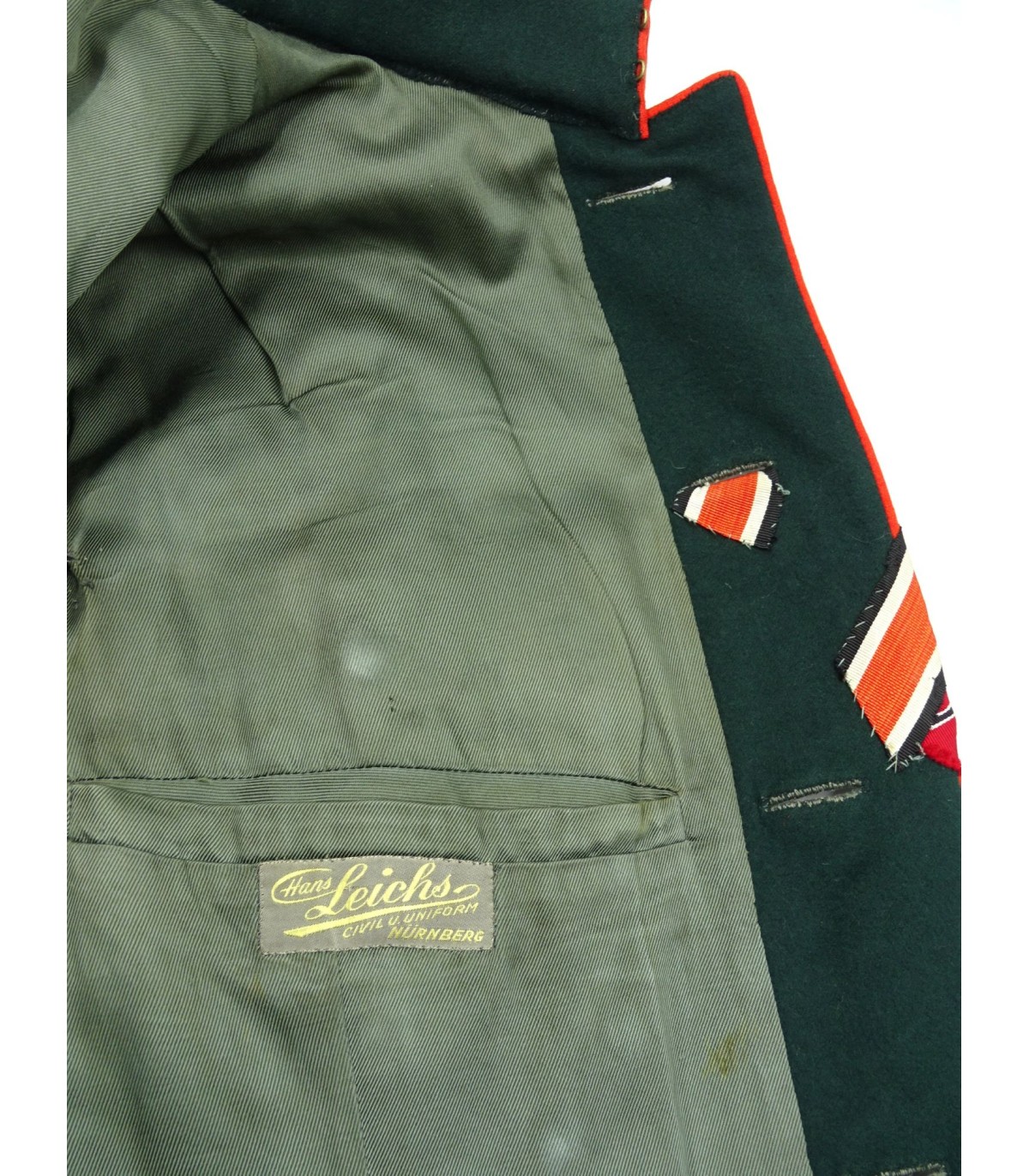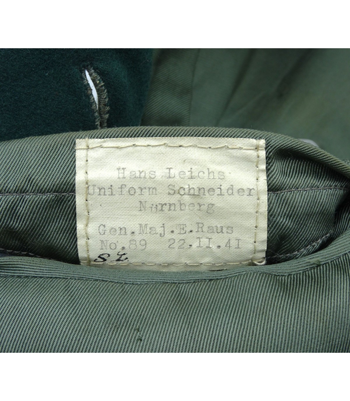 Uniforme de Generaloberst de la Wehrmacht ayant appartenu au général des Panzers Erhard Raus, titulaire de la Croix de chevalier avec feuilles de chêne et de la Croix allemande en or (dont la casquette et la dague sont en vente sous les références respectives HB001 et ES245). Comporte: vareuse en tricotine feldgrau avec étiquette nominative, col vert-foncé avec pattes de col Larisch Stickerei or sur fond rouge, passepoil rouge du col et du devant, pattes d'épaules de général avec 3 étoiles de grade, aigle de poitrine brodé main en fil or, nombreuses brides de décorations dont celles de la croix allemande, boutons or marqués Extra Fein, ruban de la croix de fer de 2e classe et de la médaille du front de l'Est. BE. Avec culotte de cheval en tricotine gris-pierre à bandes rouges. L'ensemble de cette tenue était présenté au AAF Tank Museum de Danville VA. USA jusqu'à sa fermeture en 2022. Pour la biographie du Generaloberst E.Raus, voir: https://fr.wikipedia.org/wiki/Erhard_Raus