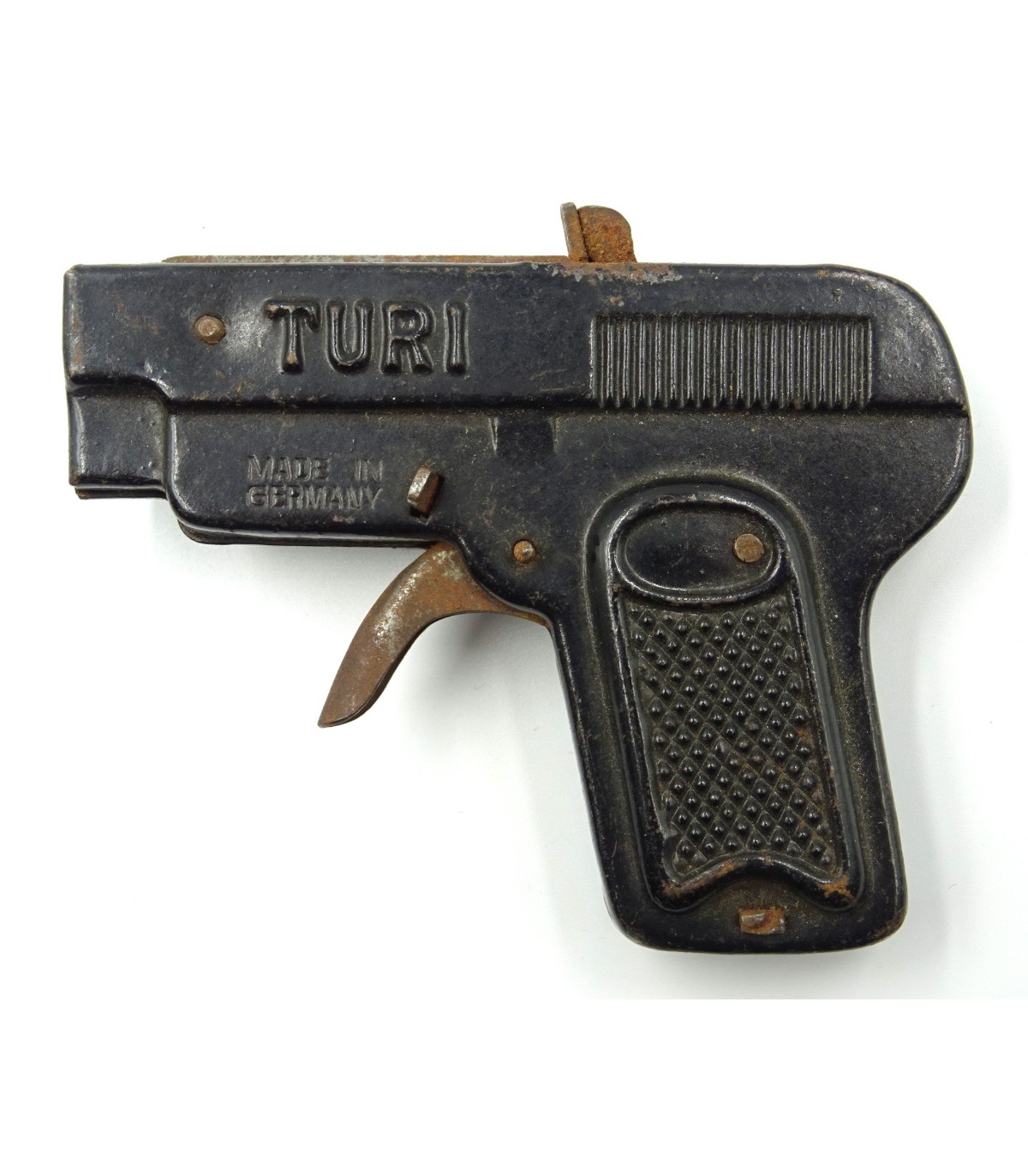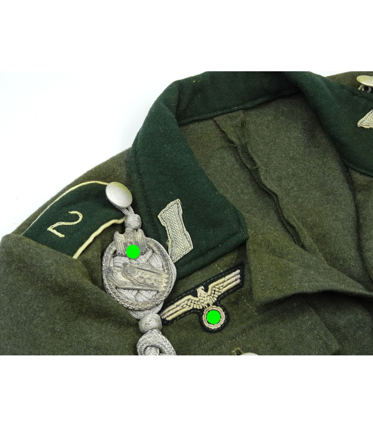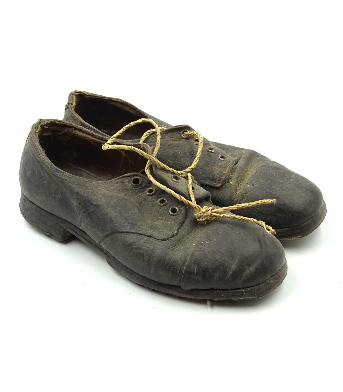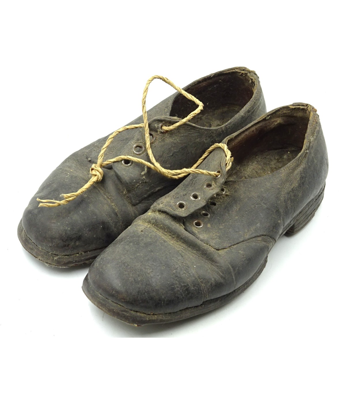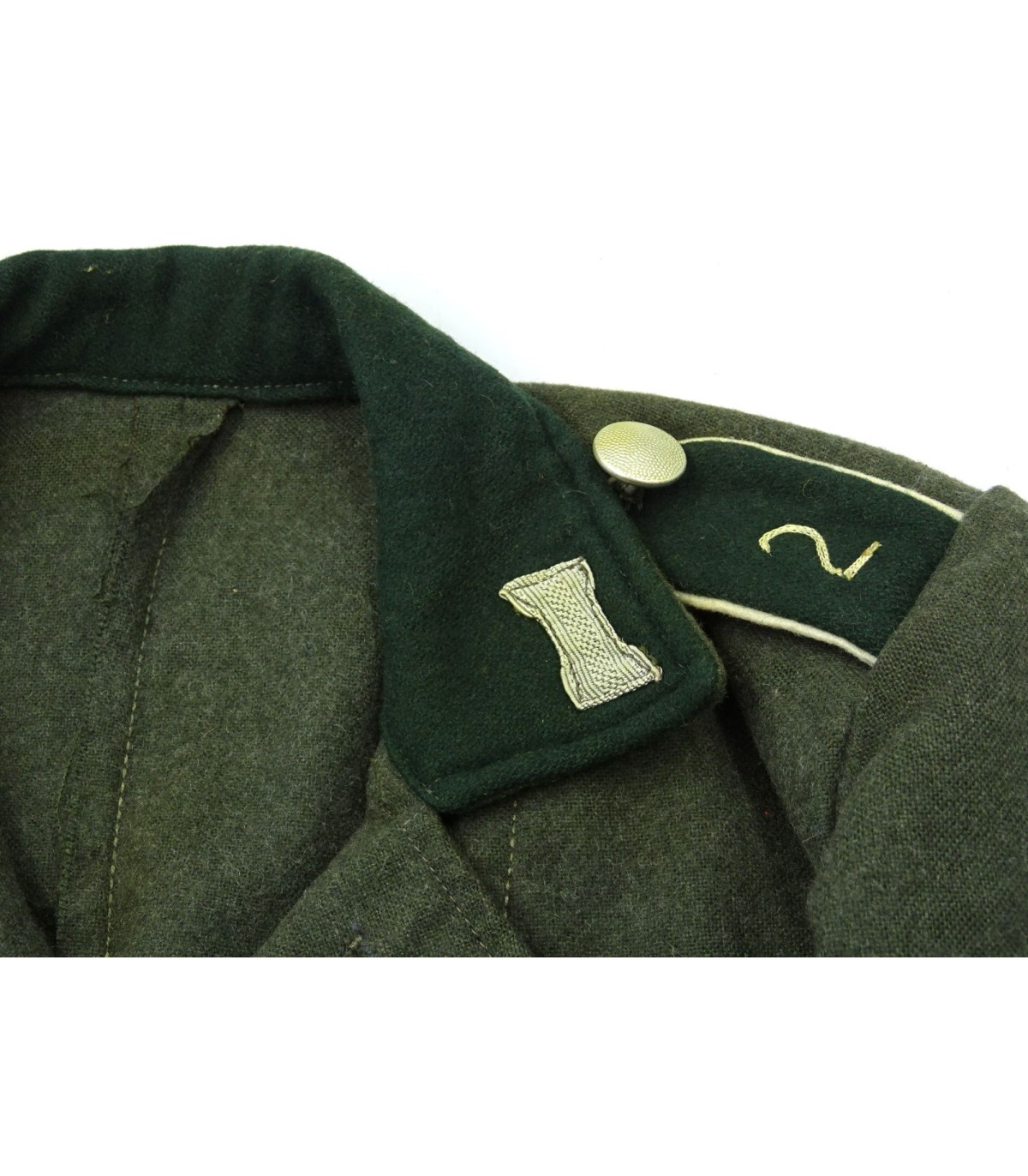 Comprend: vareuse de panoplie d'enfant sur la modèle de la veste M36 de la Heer. Col vert-foncé. Pattes de col, pattes d'épaules d'infanterie, aigle de poitrine et cordon de tireur + pantalon droit assorti. Tissu feldgrau léger, col vert-foncé. Taille enfant 6-8 ans. Chaussures cloutées. Petit fusil, sabre et pistolet. Joint une photo d'archives format 16x12 illustrant le port de panoplies de soldats par des enfants (Allemagne 1934). TBE.