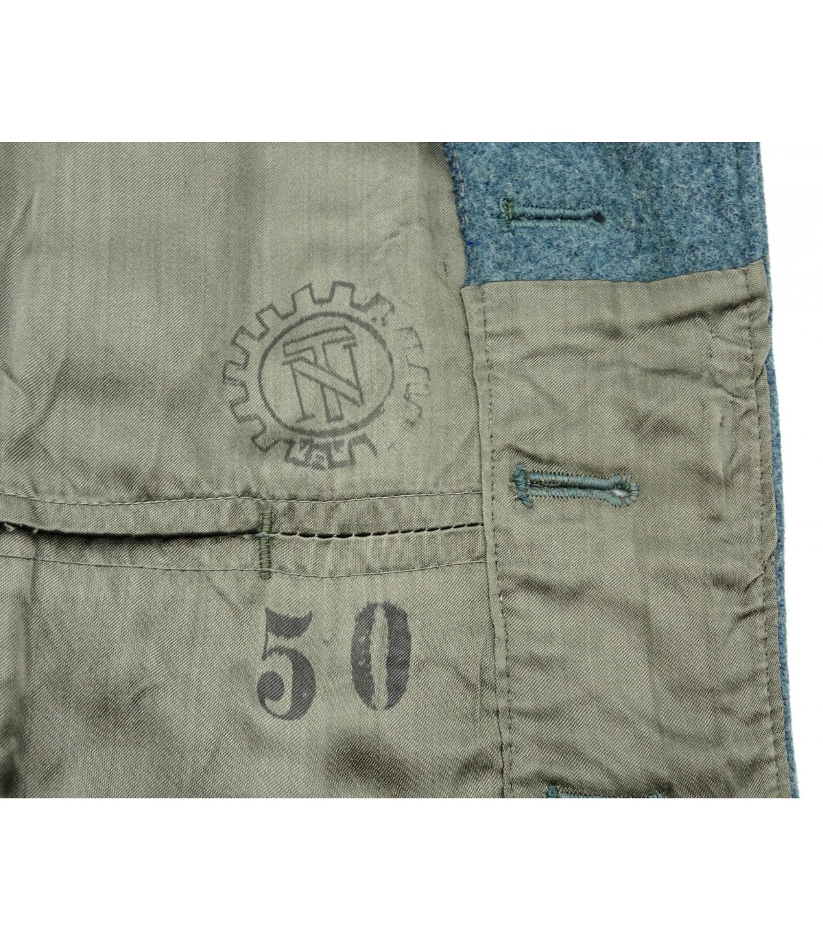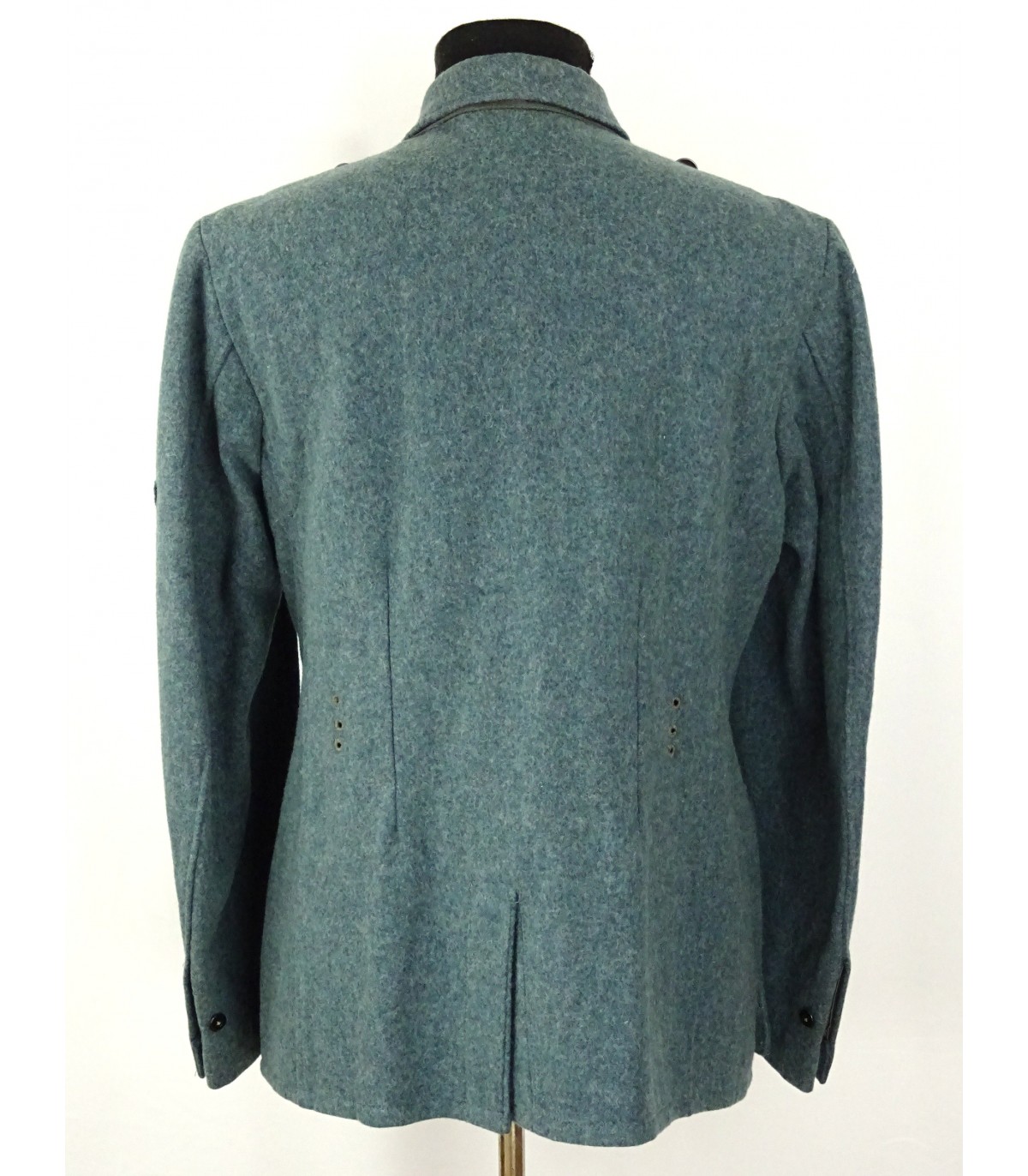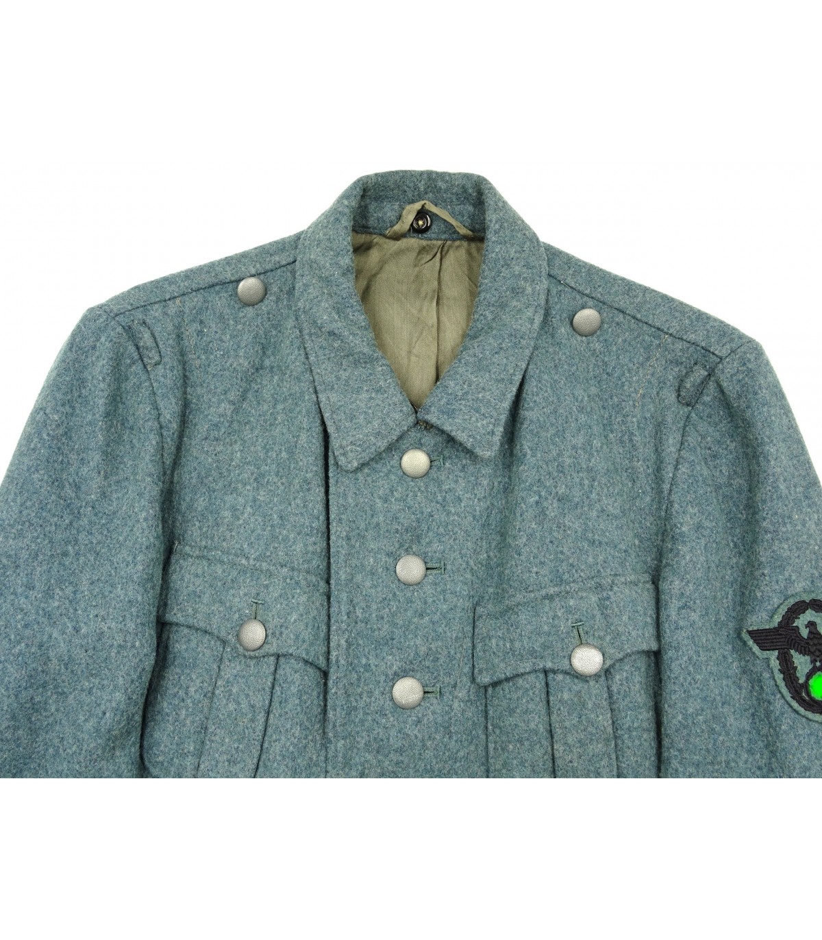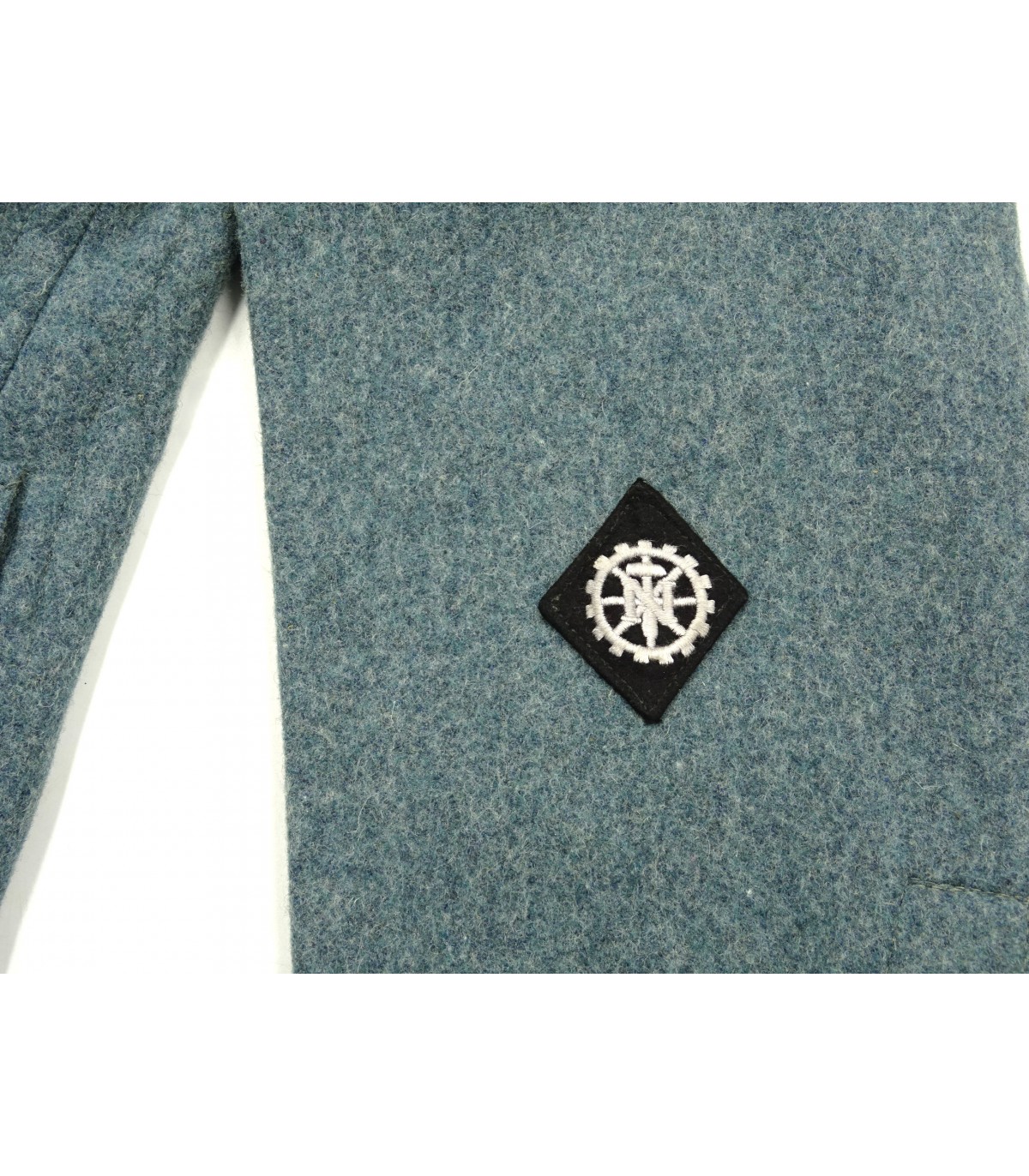 Drap police. Coupée sur le modèle de la vareuse Mle 40 de la Heer. Rarissime aigle de bras police brodé machine en fil noir (piqué d'origine). Insigne de manche du Teno. Marquage de réception du Teno. Taille 50. Corps de prévôté du Technisches Nothilfe. Pièce de musée en état exceptionnel.