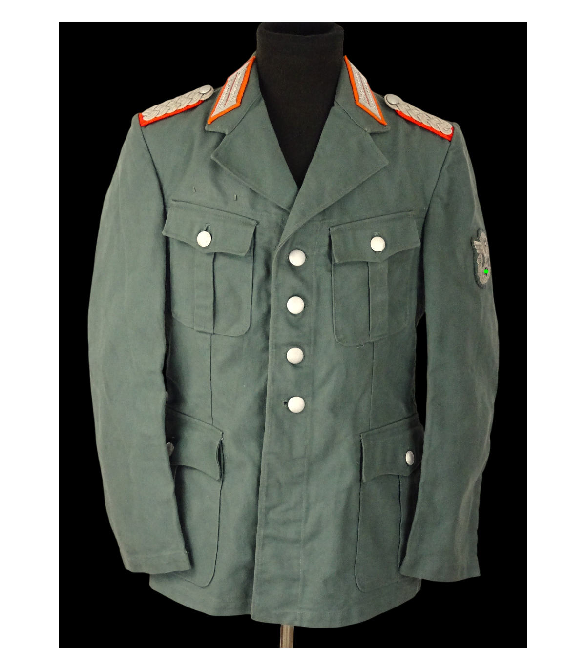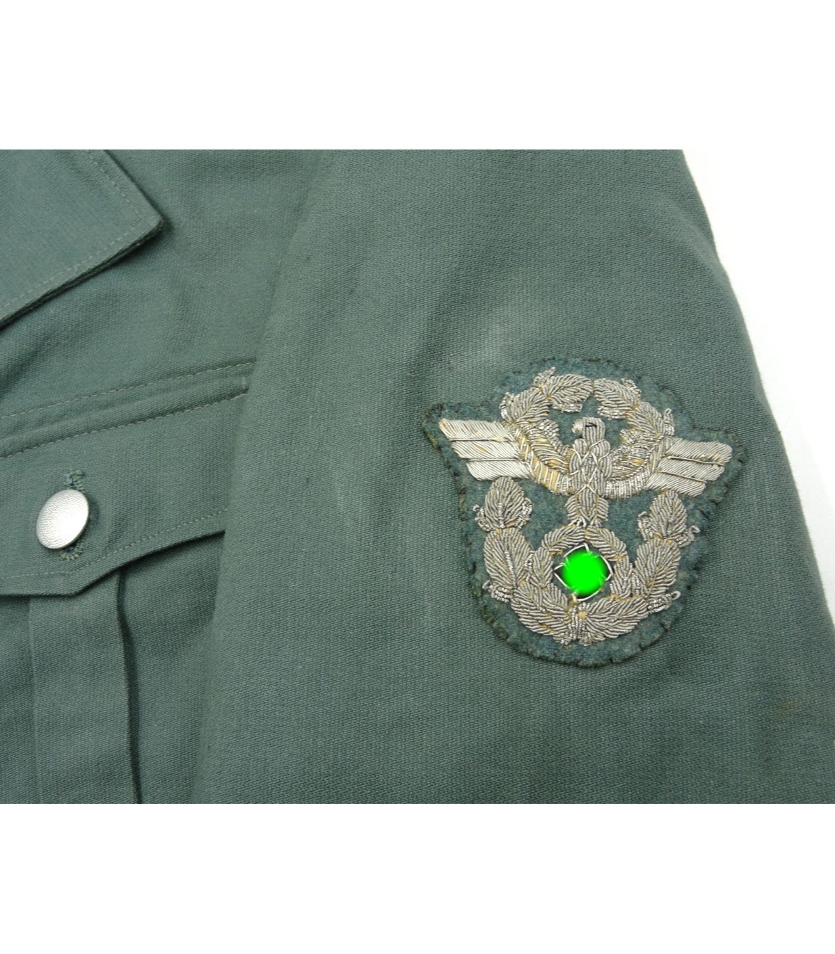 Veste estivale en toile feldgrau. Pattes de col et aigle de bras brodés main. Bride pour aigle de poitrine Wh en métal. TBE.