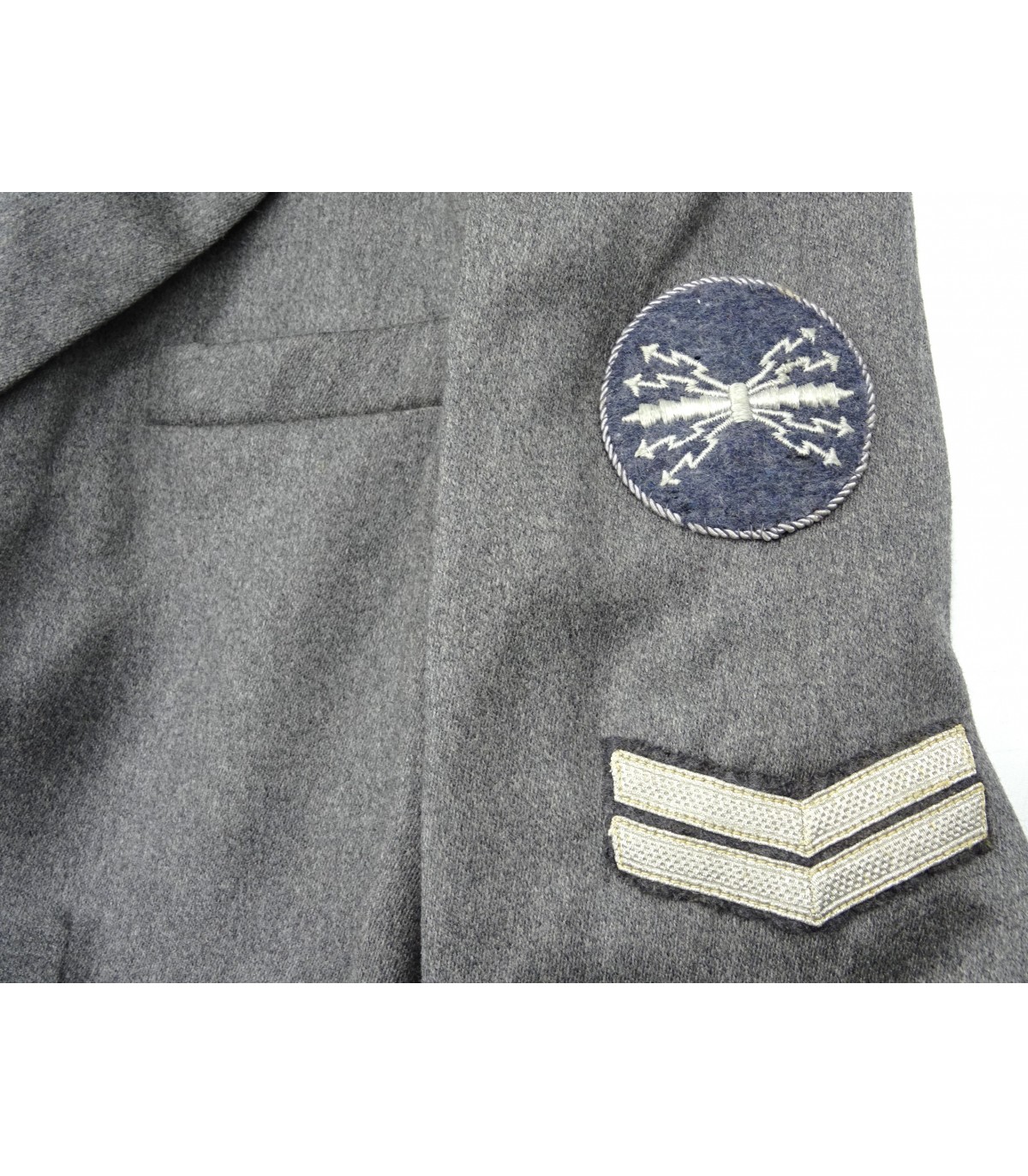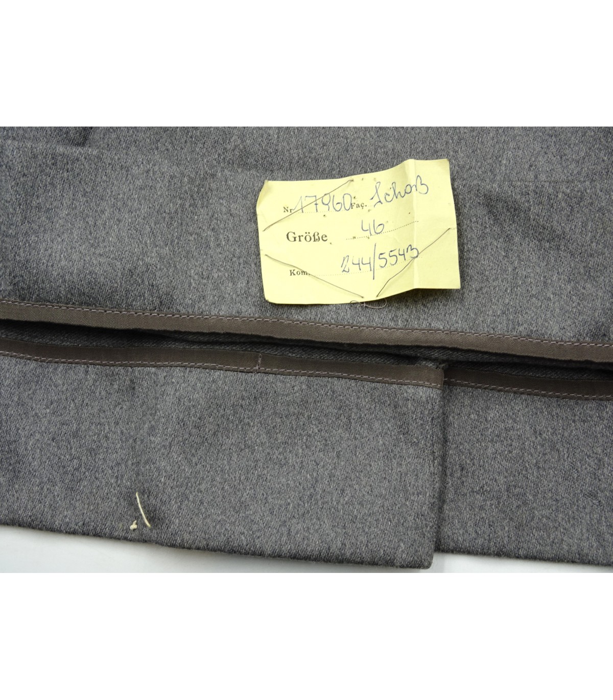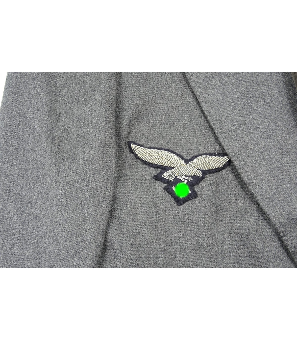 Veste de coupe spécifique, superbe aigle de poitrine brodé main. Insigne de manche des transmissions et chevron de grade de Luftnachrichten-Flugmelde-Oberhelferin (senior plane spotter auxiliary). Etiquette papier fabricant. Gabardine fine, doublure de satinette grise. avec jupe assortie. Très rare ensemble.