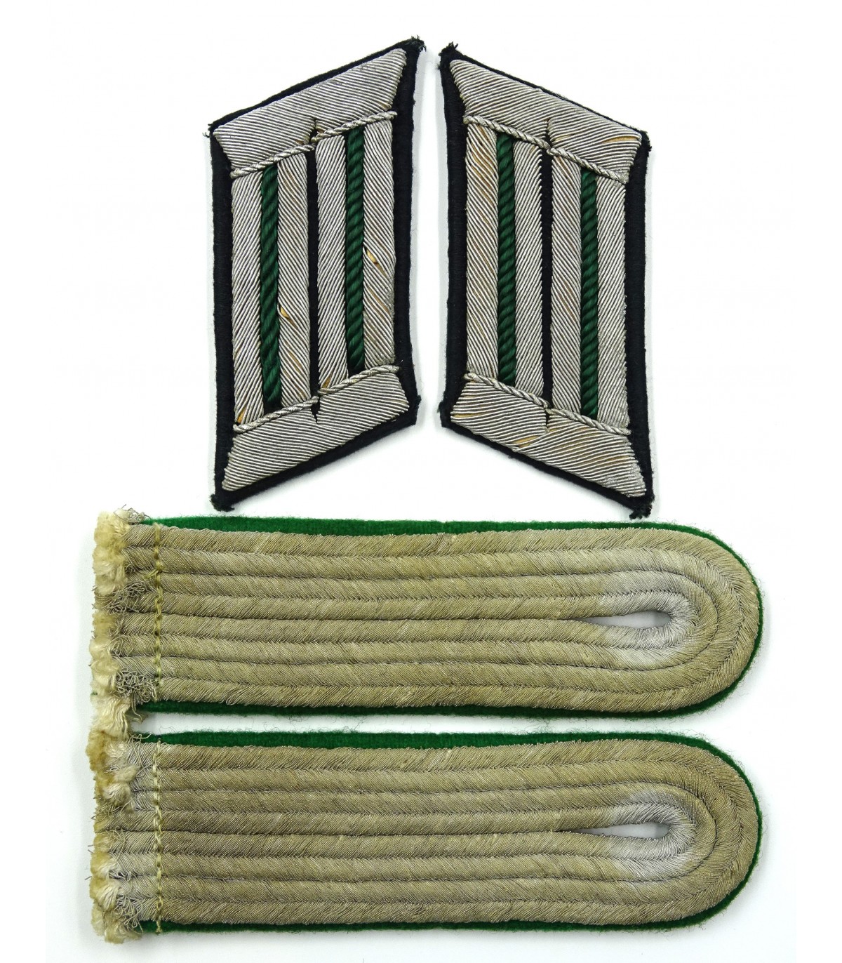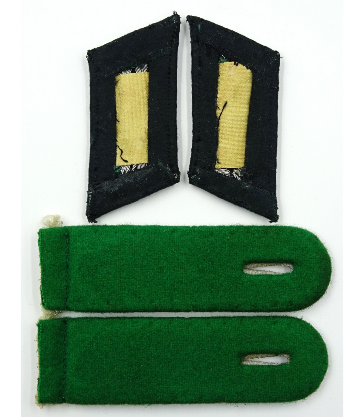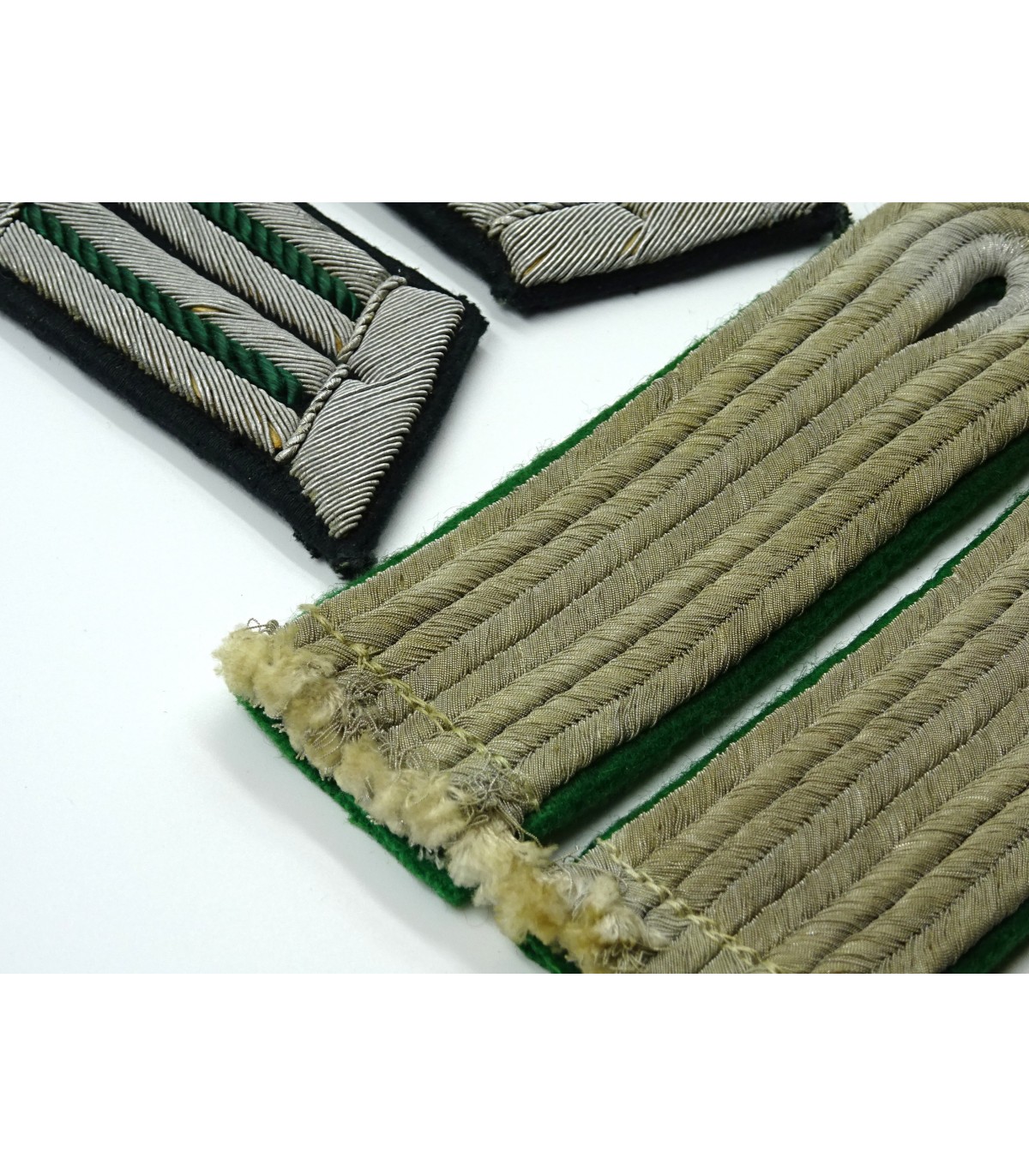 Pattes d'épaules à coudre à l'emmanchure, socle vert-chasseur + pattes de col brodées main. TBE.