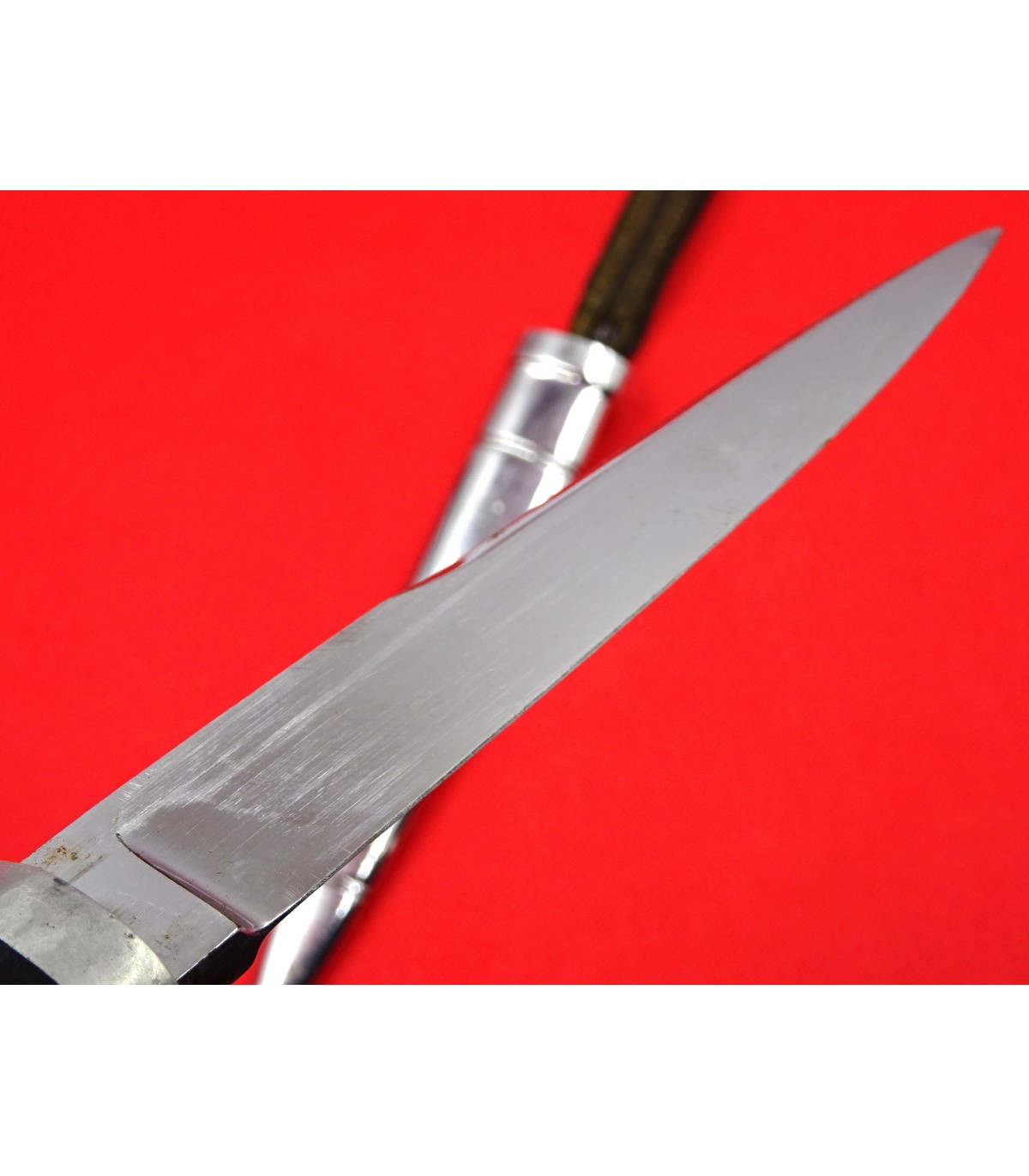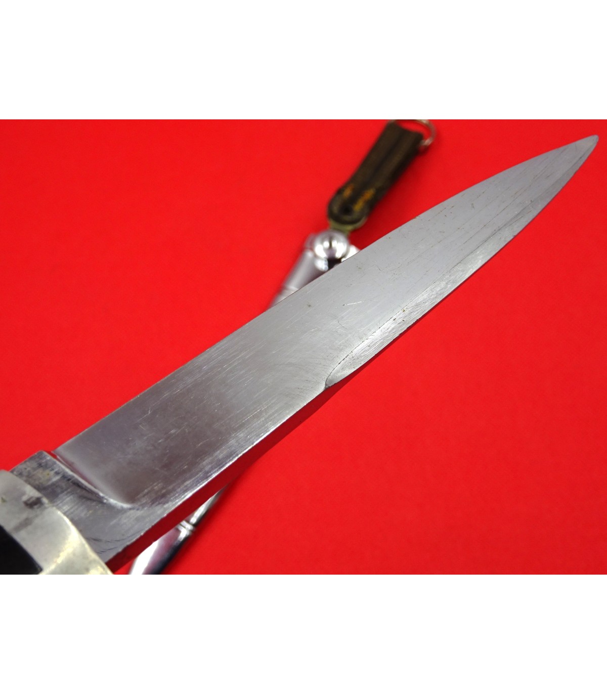 Aluminium handle with ebonit grip, nickled scabbard. Nice blade. Brocade belt's loop. VGC.