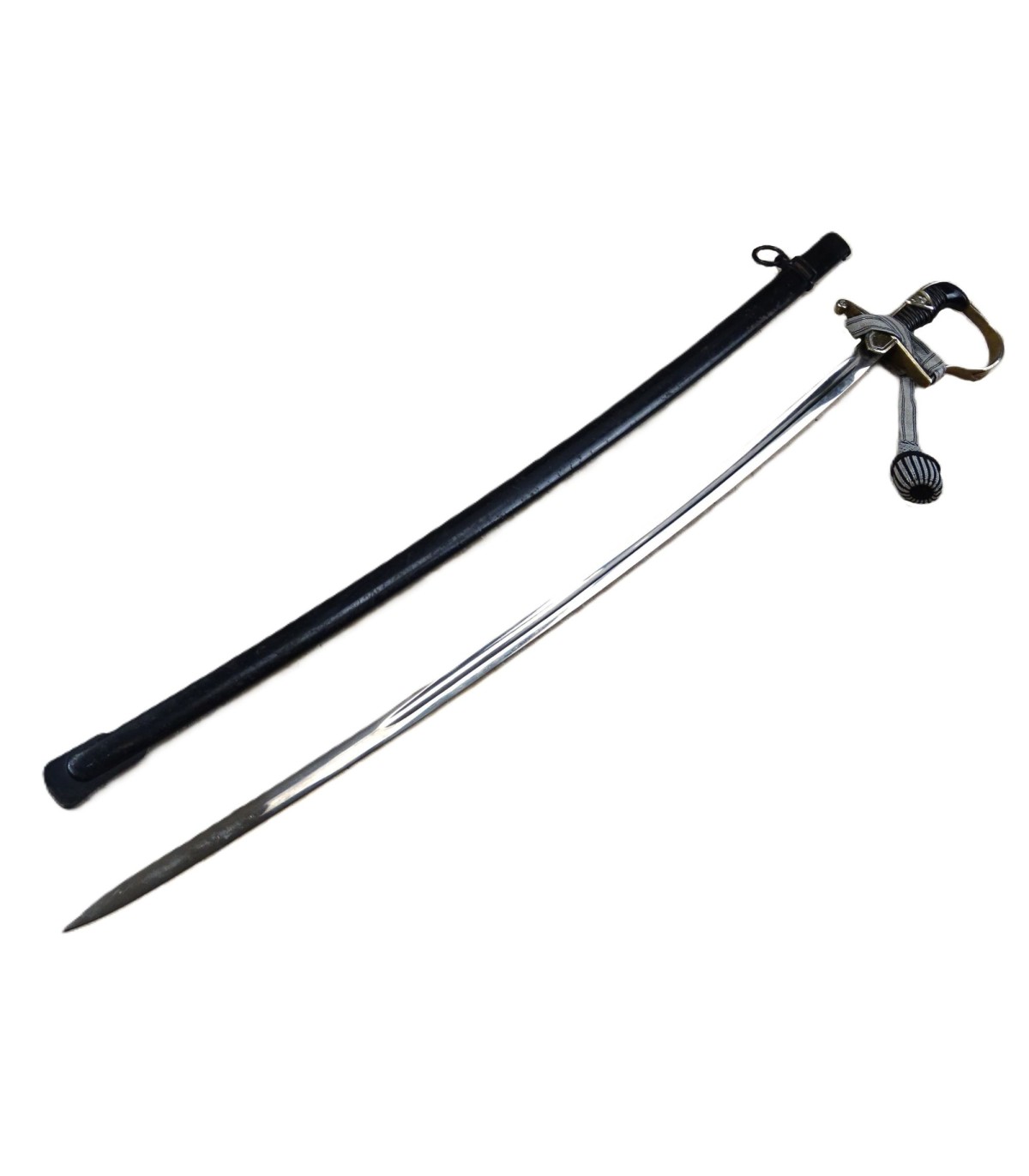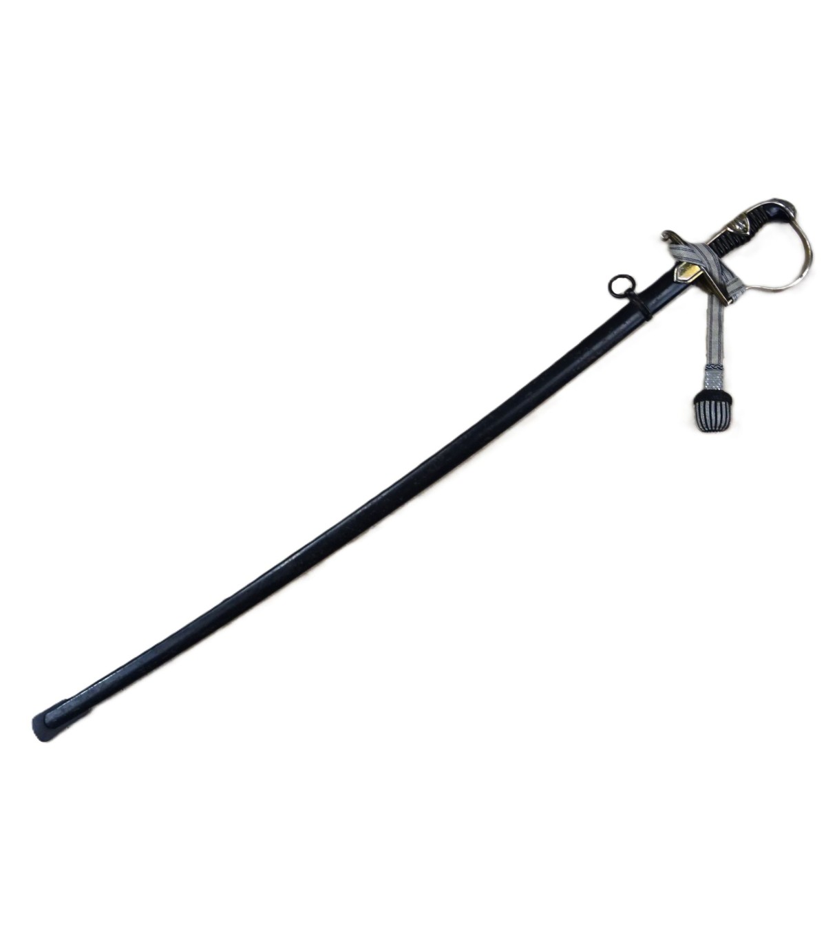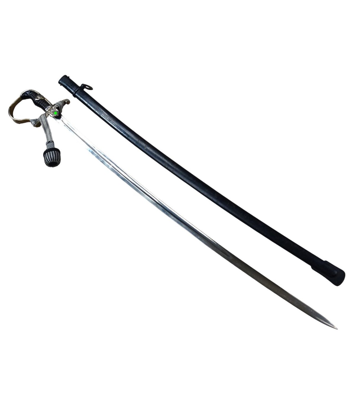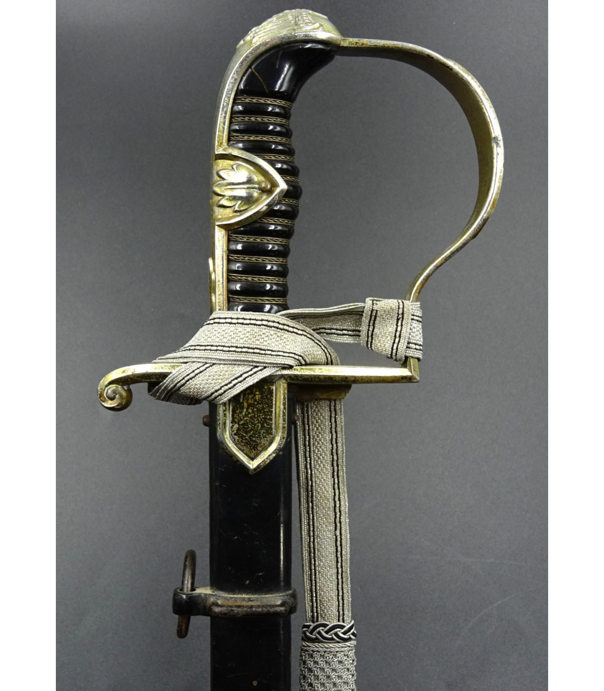 Prestigious sward, common to the Army and the SS (before a specific SS-Degen was adopted). Aluminium cross guard. Good blade. Scabbard retains 90-95% of black painting. Comes with a SS knot for low rank officers and NCO. VGC.