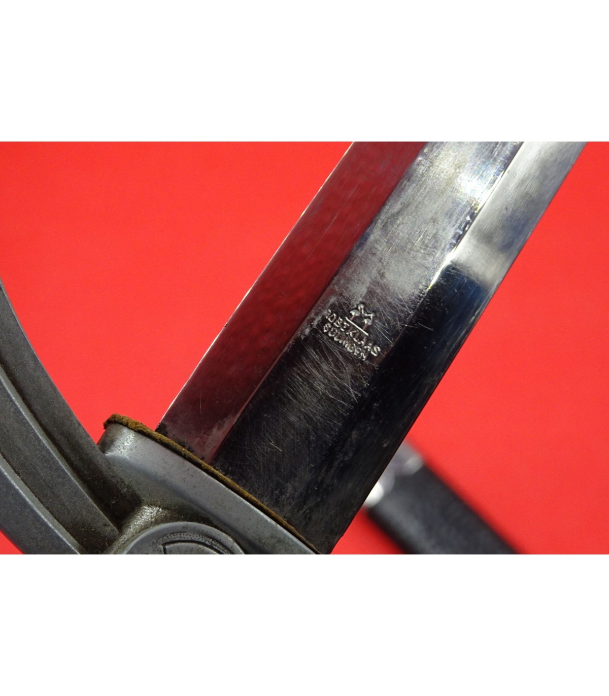 Leather scabbard with a luxury embossed design. Good blade. OLC chain snap hook. GC-VGC.