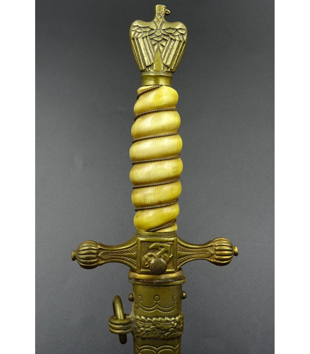 A fine KM Mle 37 officer's dagger by Hster with an ivory handle. No damage to the scabbard. Superb double-sided engraved blade. A beautiful example in VGC.