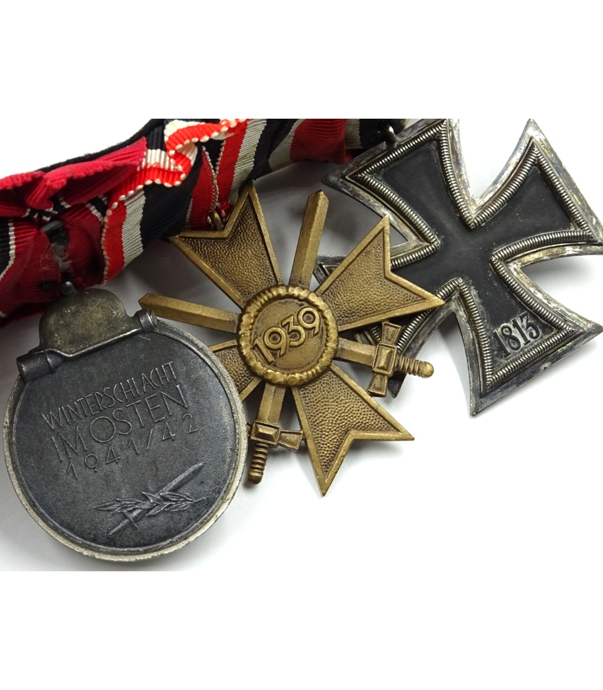 Iron cross 2nd class 1939, war merit cross 2nd class w/swords, eastern front medal. VGC.