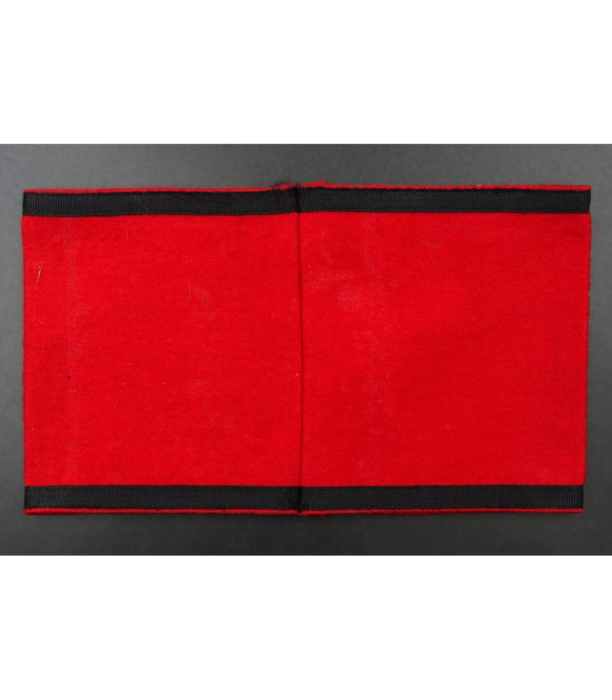 Multi sewn center piece on red wool. Very small moth traces, no hole. VGC.