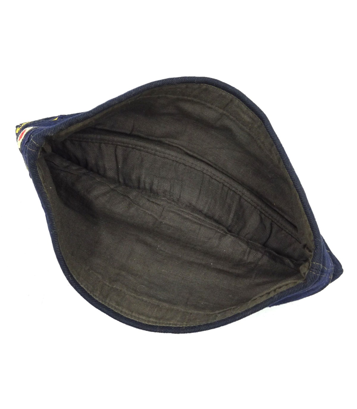 Navy-blue gabardine. Machine woven bevo insignias. Size 55. GC.