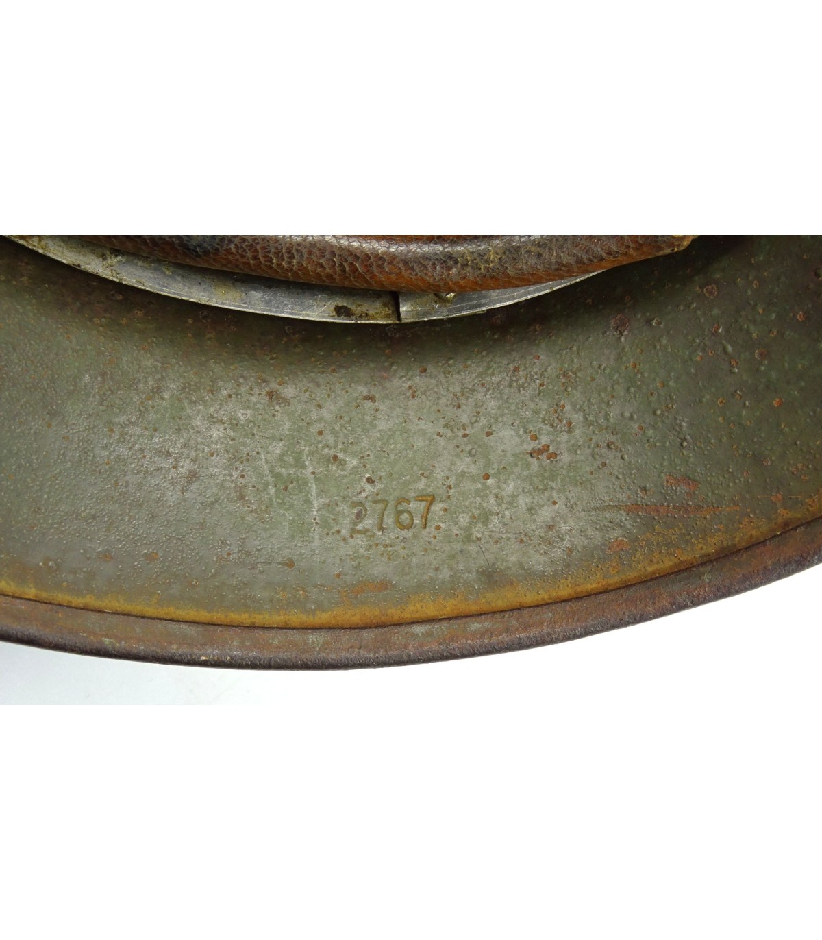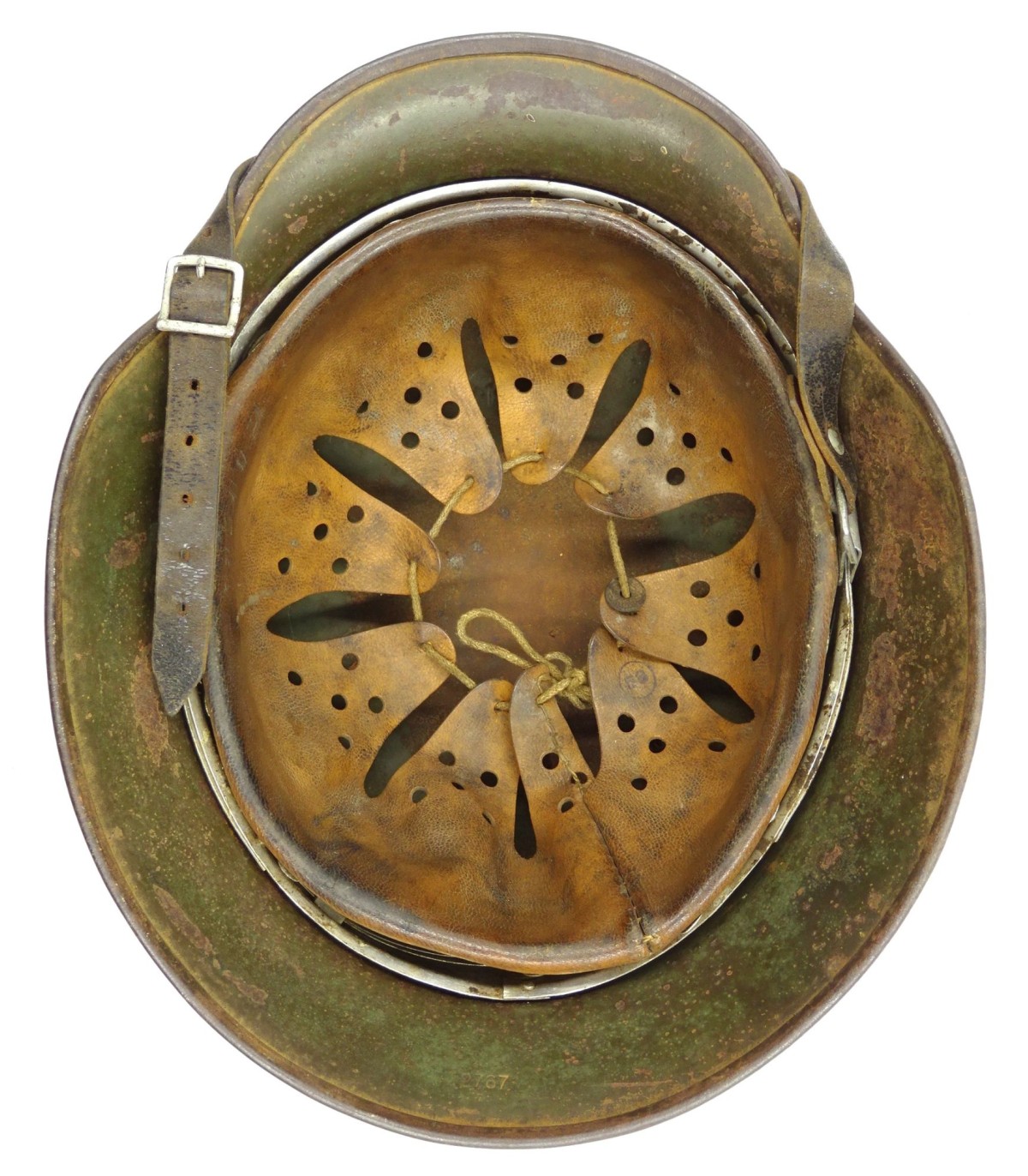 Complete. ET66 #2767. Aluminium ring. Maker's marking on chin strap. Size 58. Retains 70% of apple-green painting, 90% of WH eagle and 70% of national shield. Hard to find a size 58. GC.