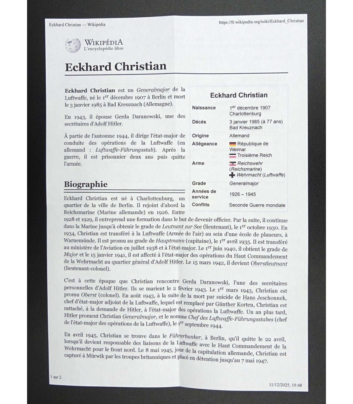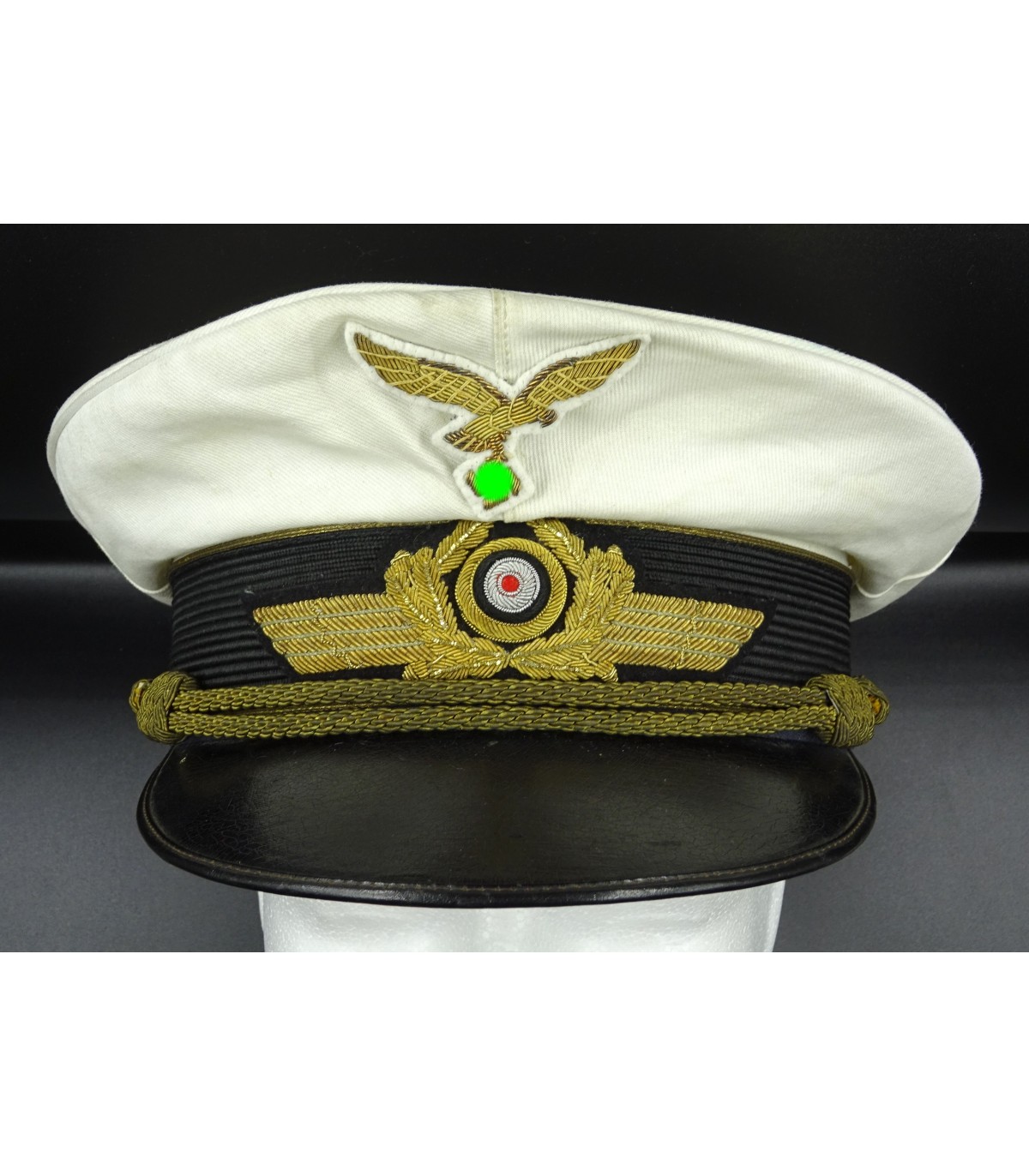 Gorgeous white top LW general visor cap, supposed to come the Generalmajor Christian Eckhard, which was captured by the British troops in 1945. Comes from a british collection. Hand embroidered wreath, cocade and removable eagle. Gold buttons and chin cord. Metal initials Ch.E on the sweat band. see: https://en.wikipedia.org/wiki/Eckhard_Christian VGC.