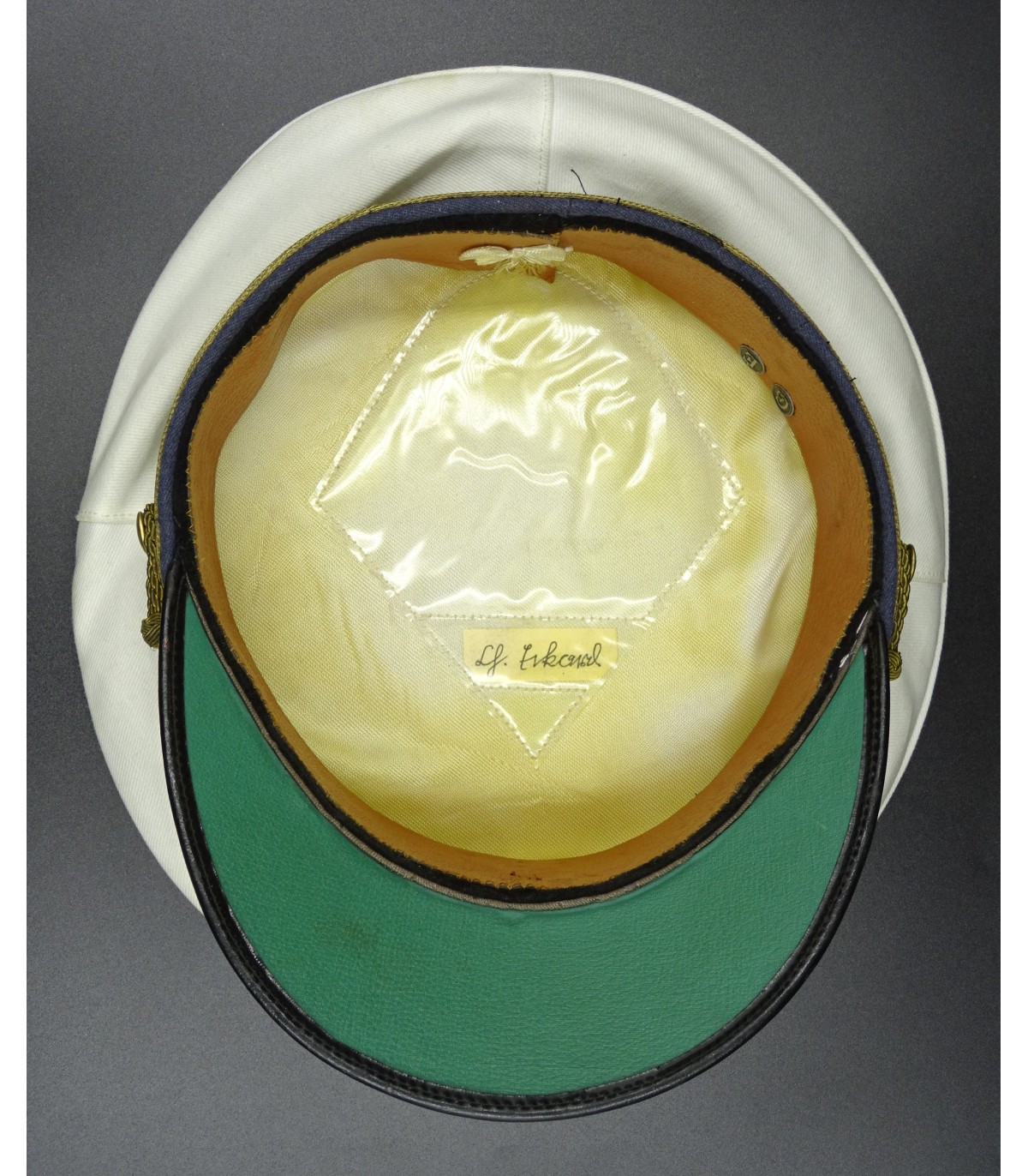 LW general white top visor cap, attribuated, with owner's initials