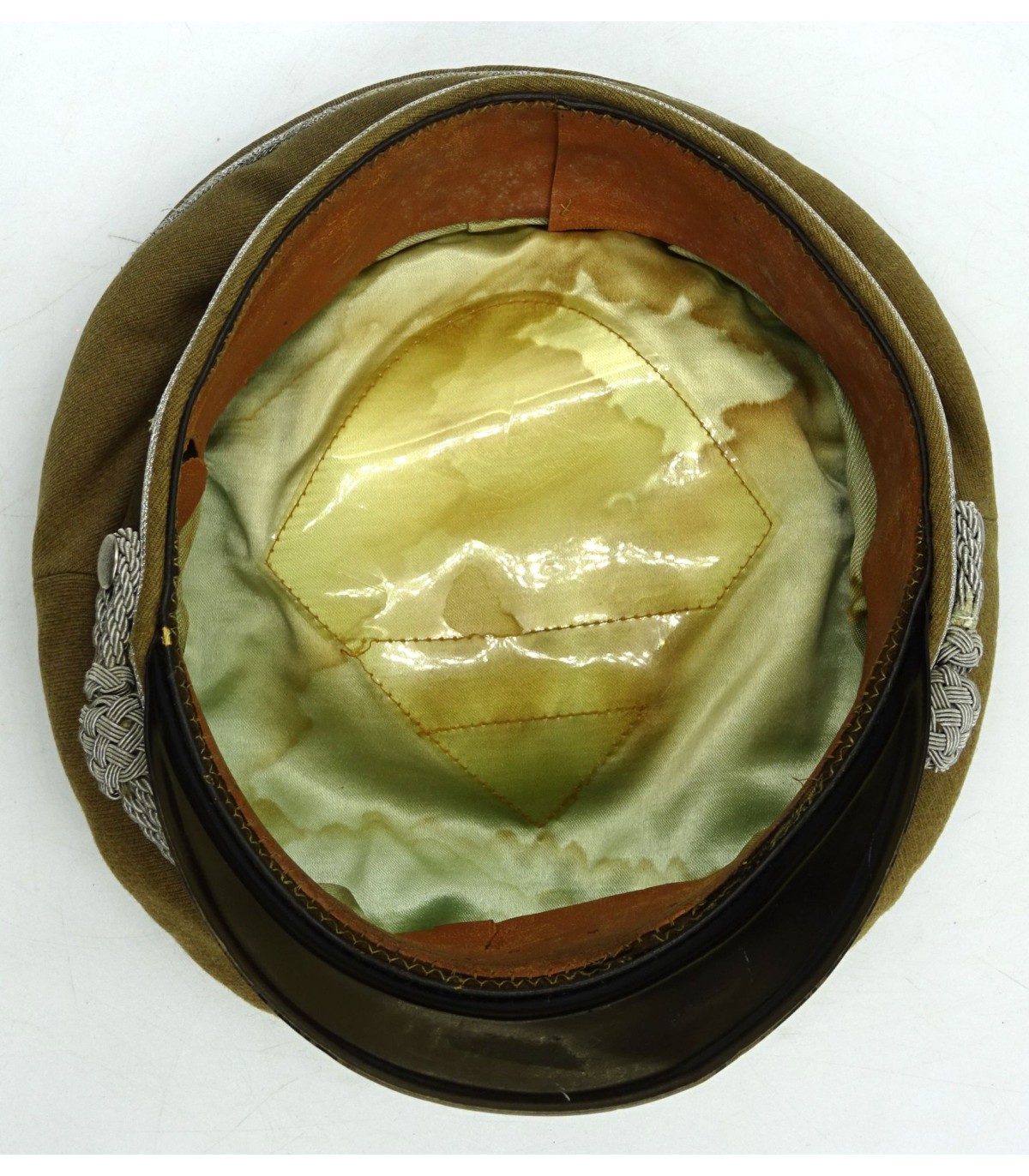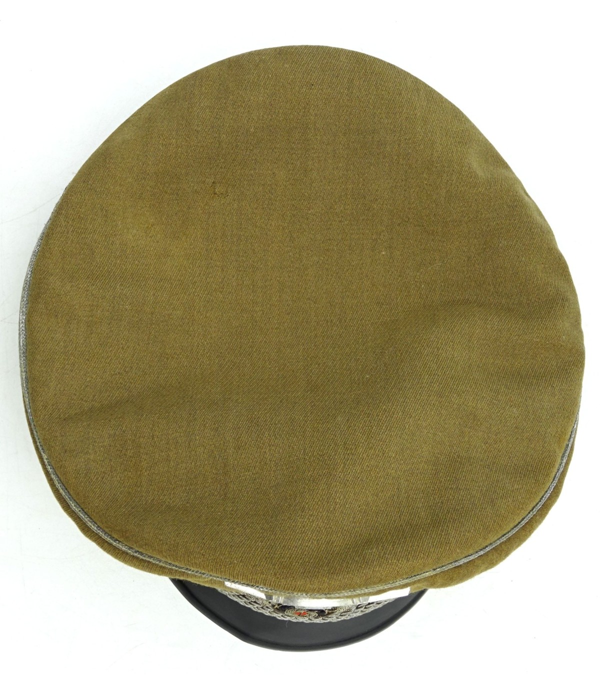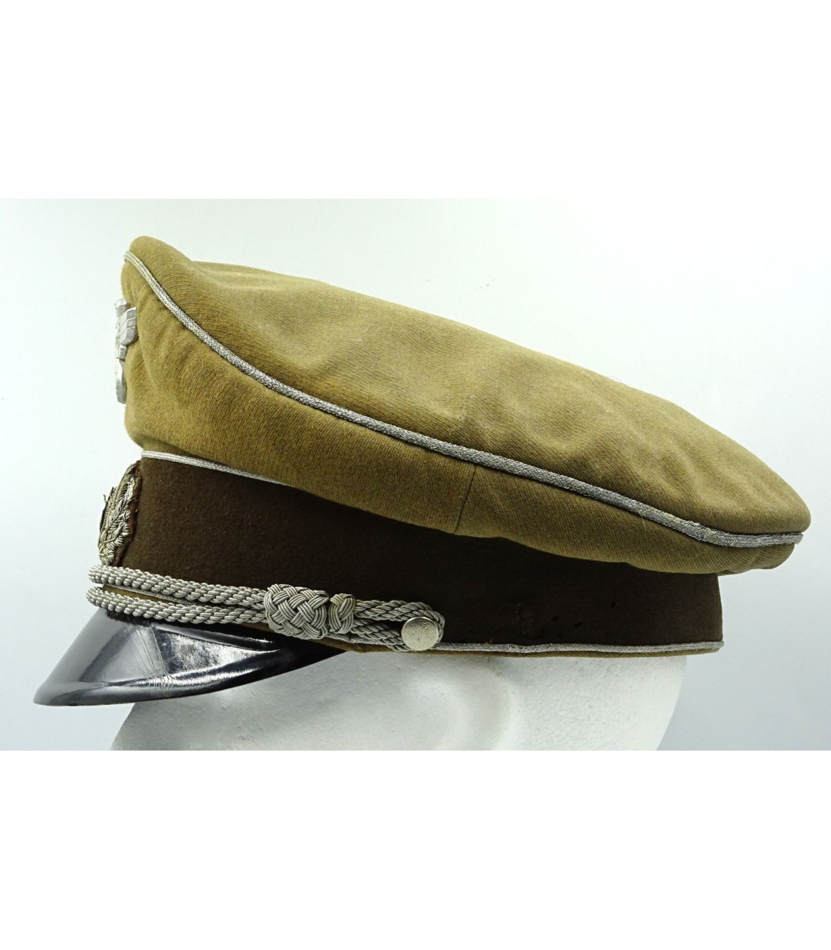 Introduced on may the 31th 1941 to replace the coffee can for NSKK officers. Light brown gabardine body and dark brown band. Aluminium piping. Hand embroidered wreath, army style, on dark brown underlay. Sattelform. Made by Erel Berlin. Scarce. GC-.