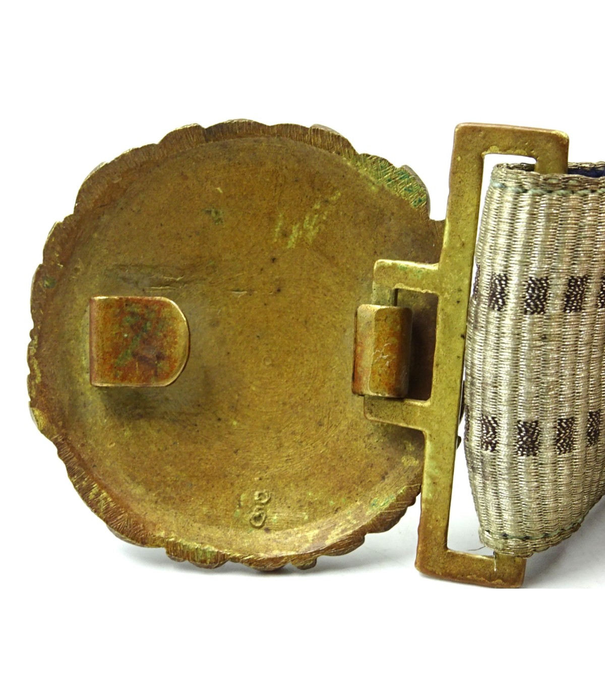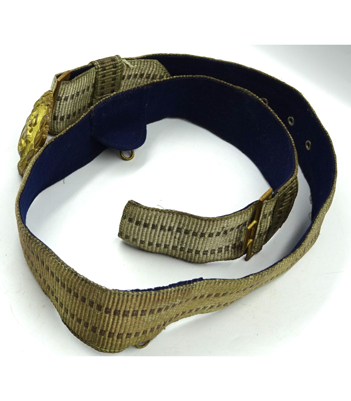 Brocade and silver. Bronze buckle. With 2 loops. Lenght 108cm. With 2 hanger's rings. VGC.