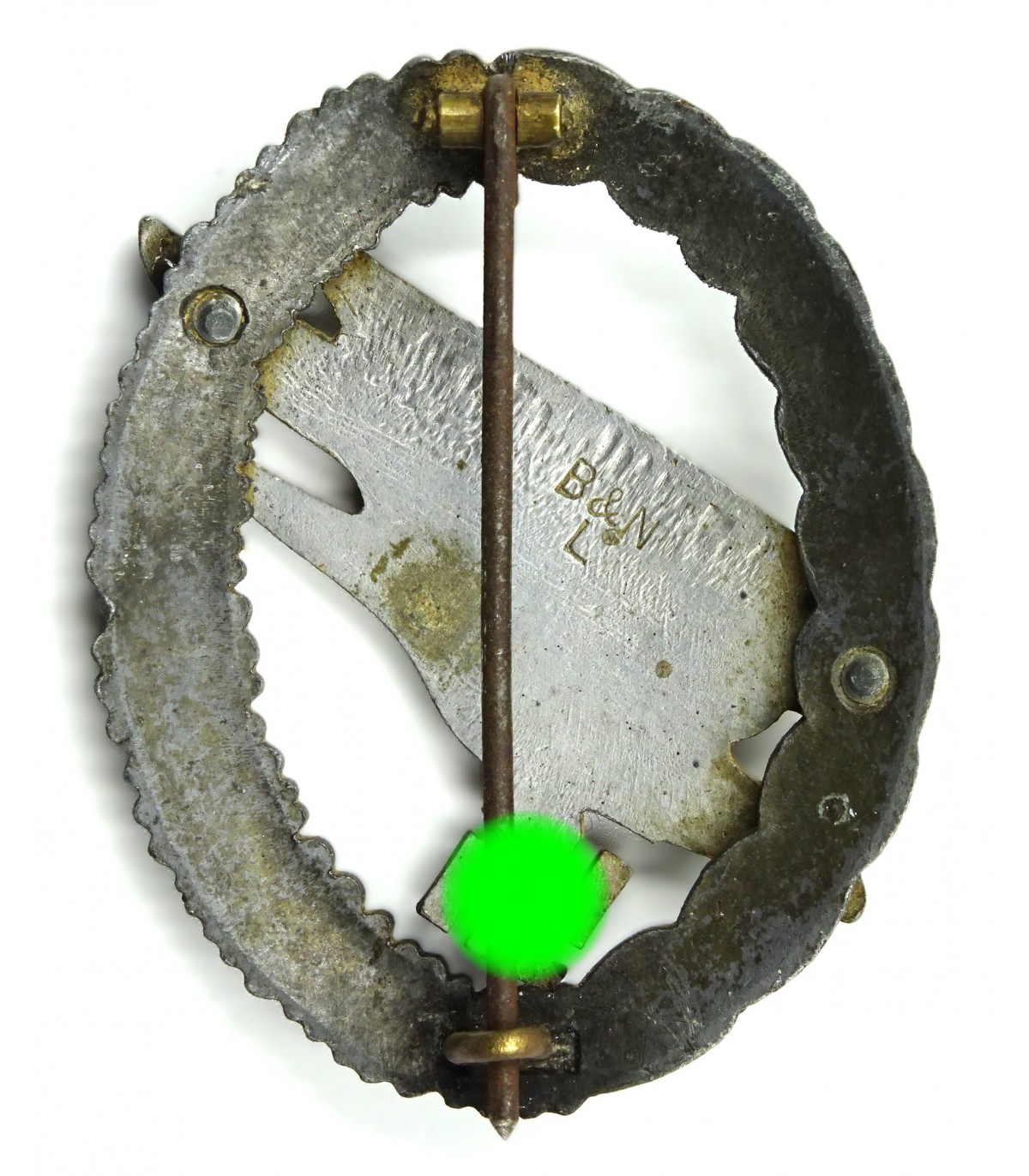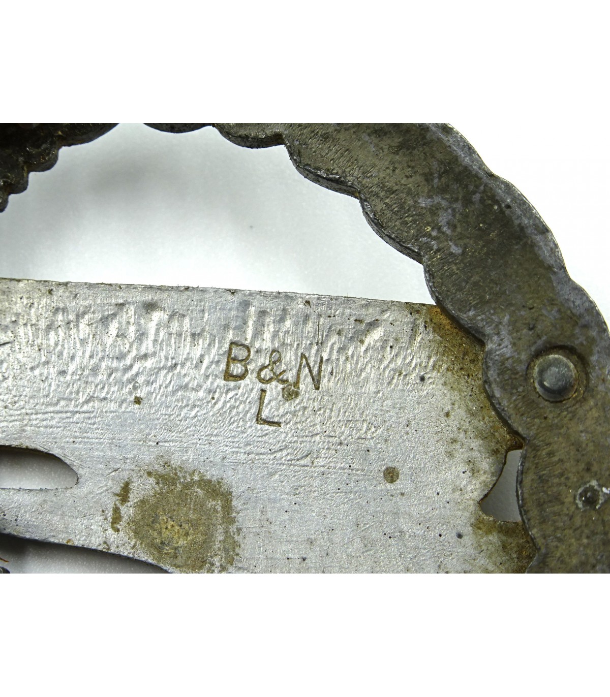 Wartime production in Feinzink (pot metal). Slightly curved. Riveted eagle. Patina. GC-VGC.