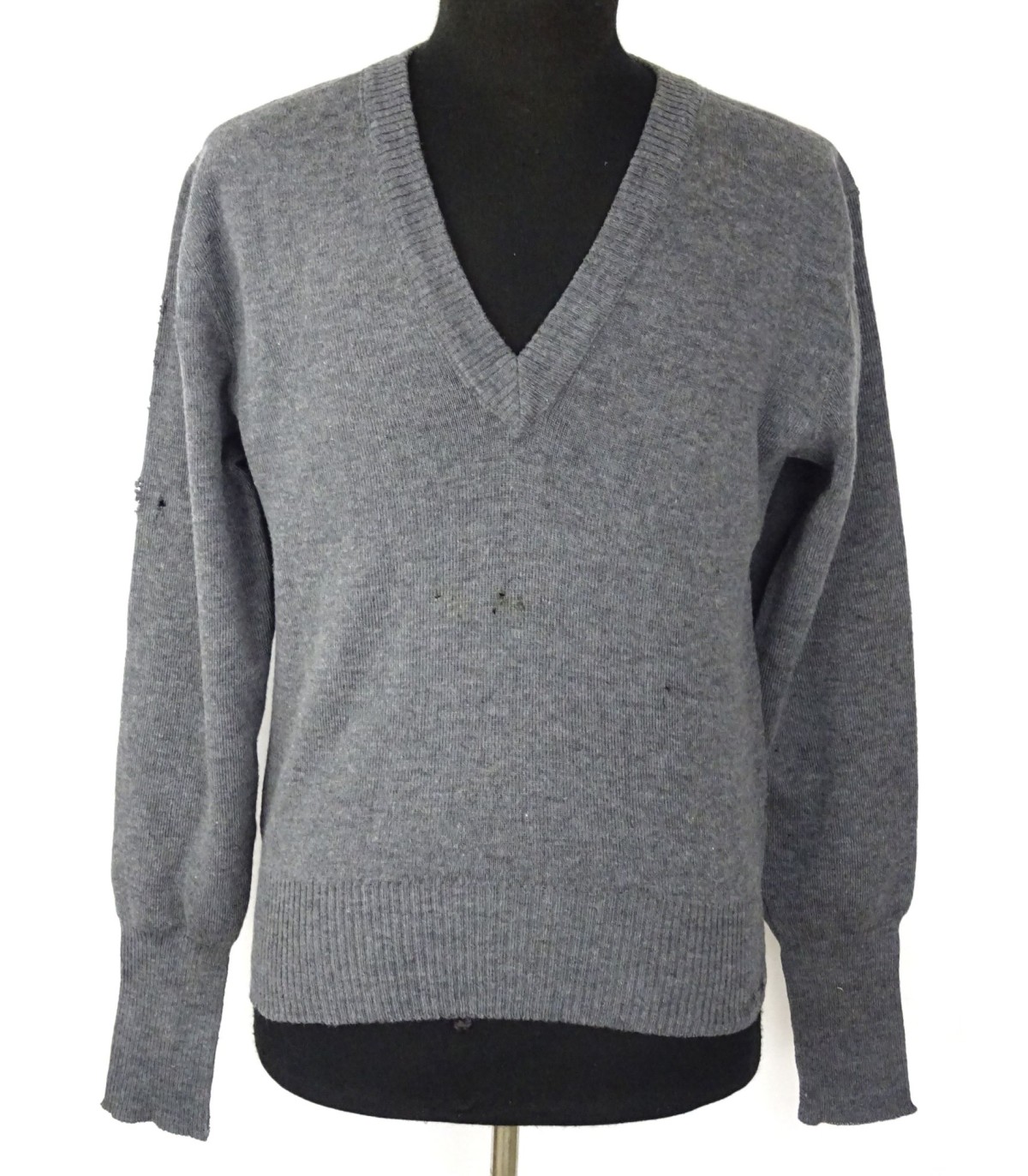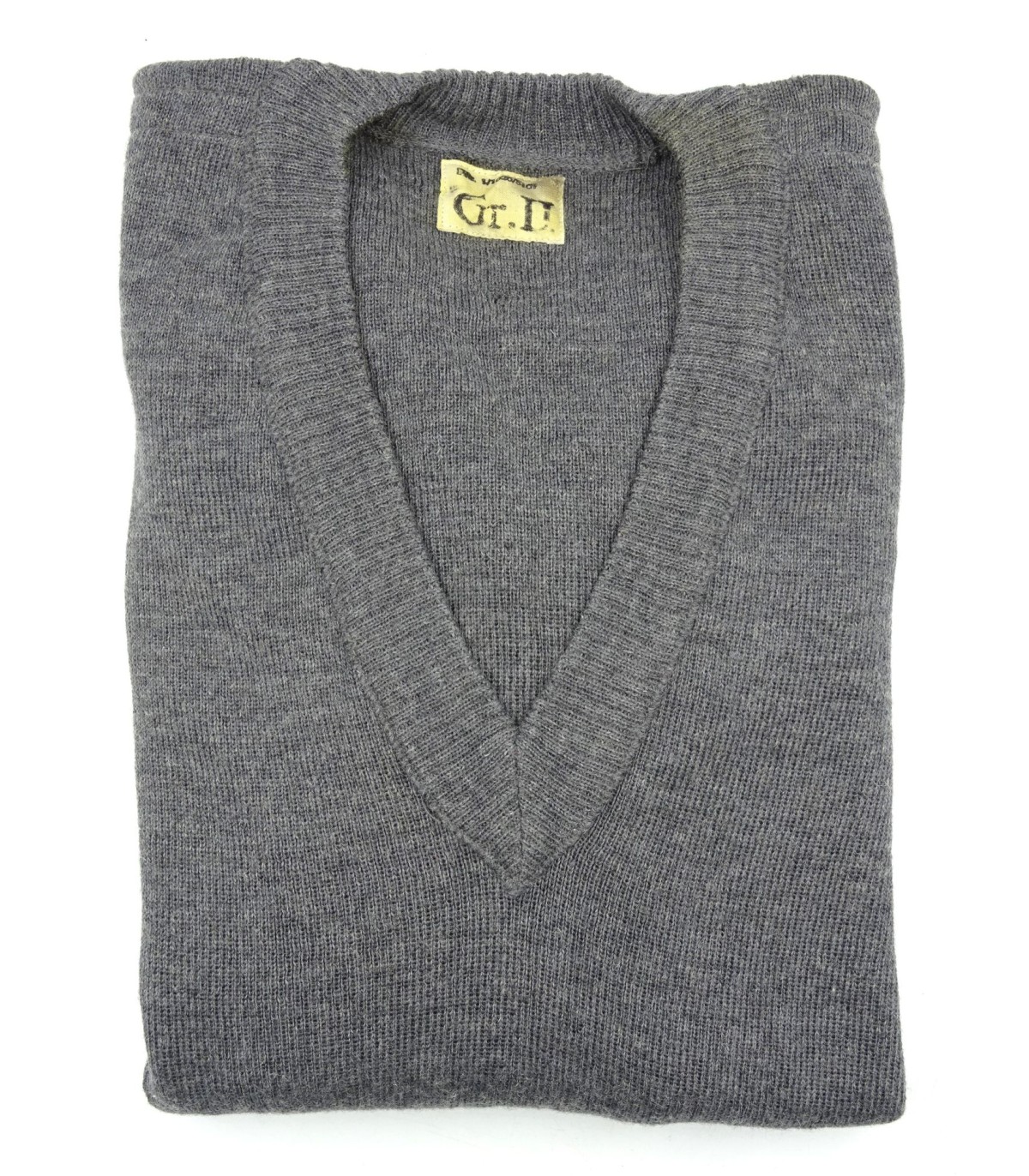 V shpa collar. Grey wool. RBNr. Label. Size 2. A few moth holes. GC/GC-.
