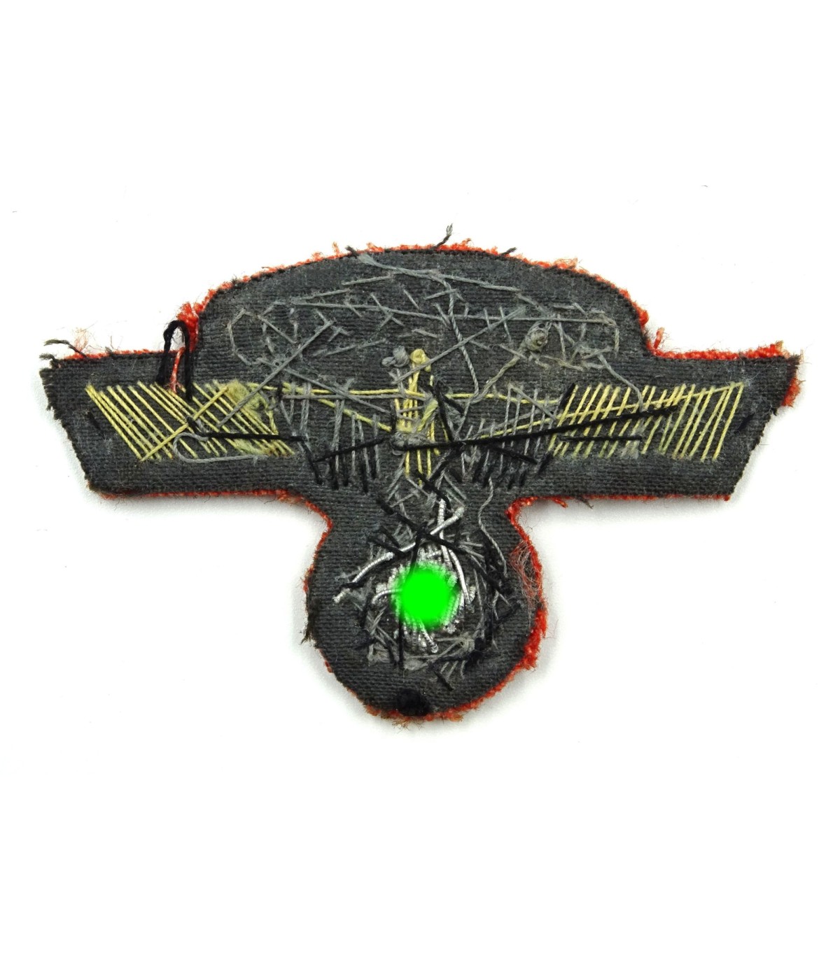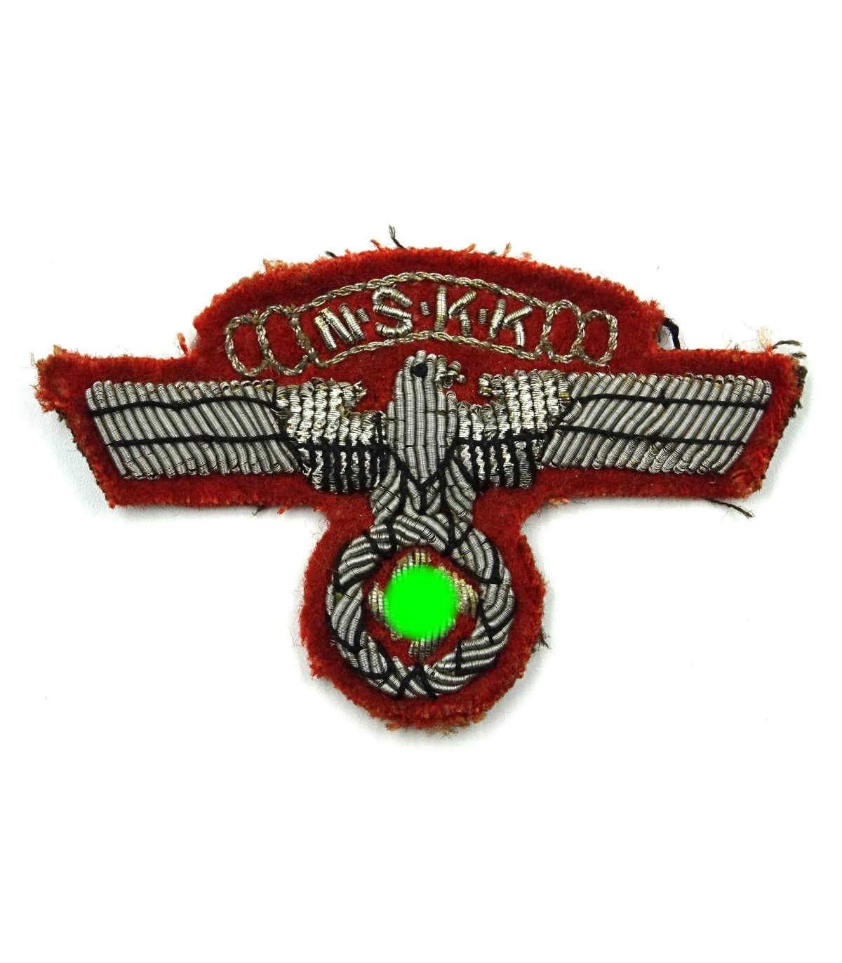 Hand embroidered on red backing. Hard to find. VGC.