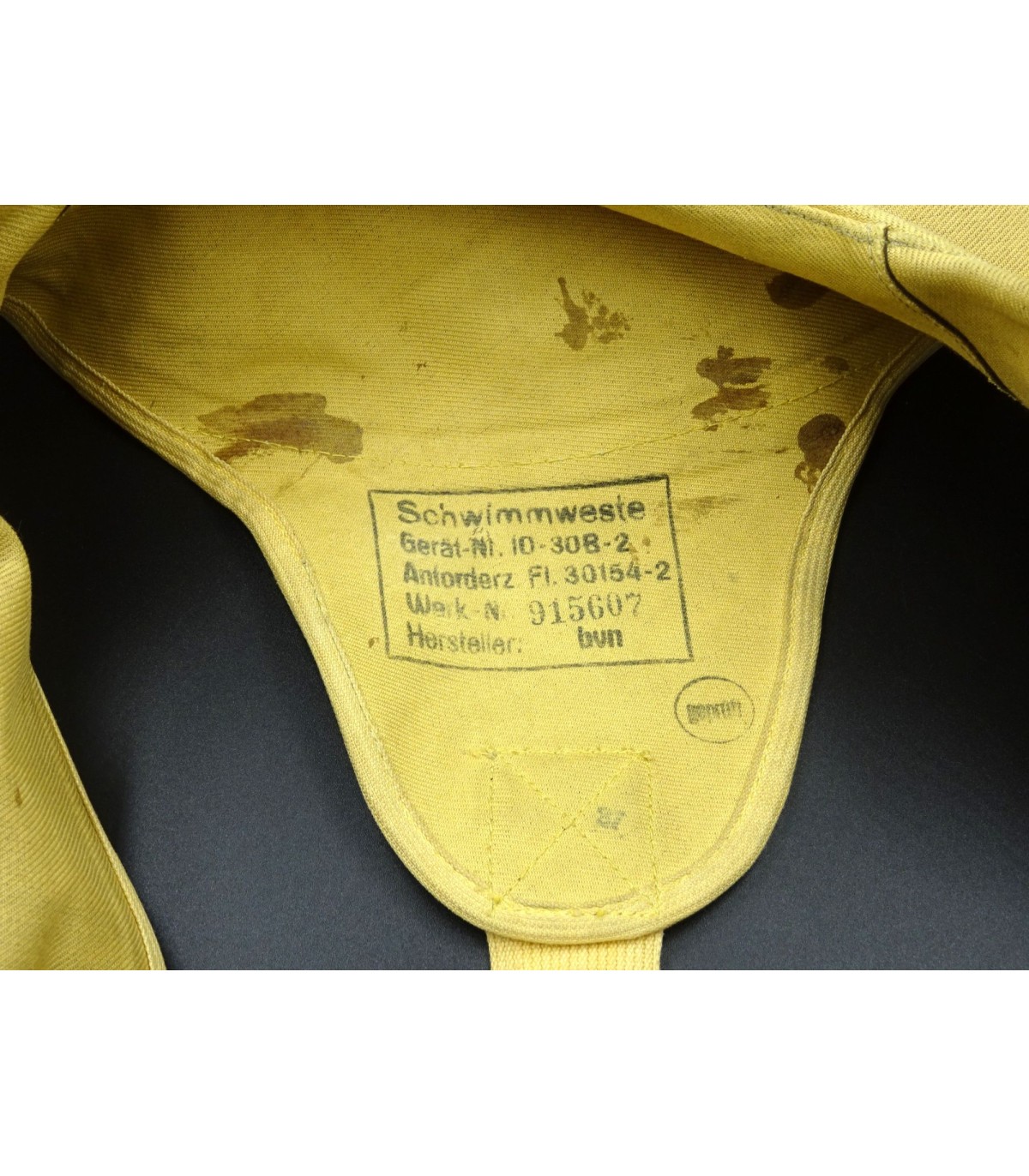 Gorgeous Schwimmweste Fl.10-30B-2 - Fl.30154-2 - Maker BVN. "Geprüft" stamped (tested). Complete. Mouth inflator and compressed air bottle. Superb piece to complete an LW pilot's flight suit. GC-VGC.