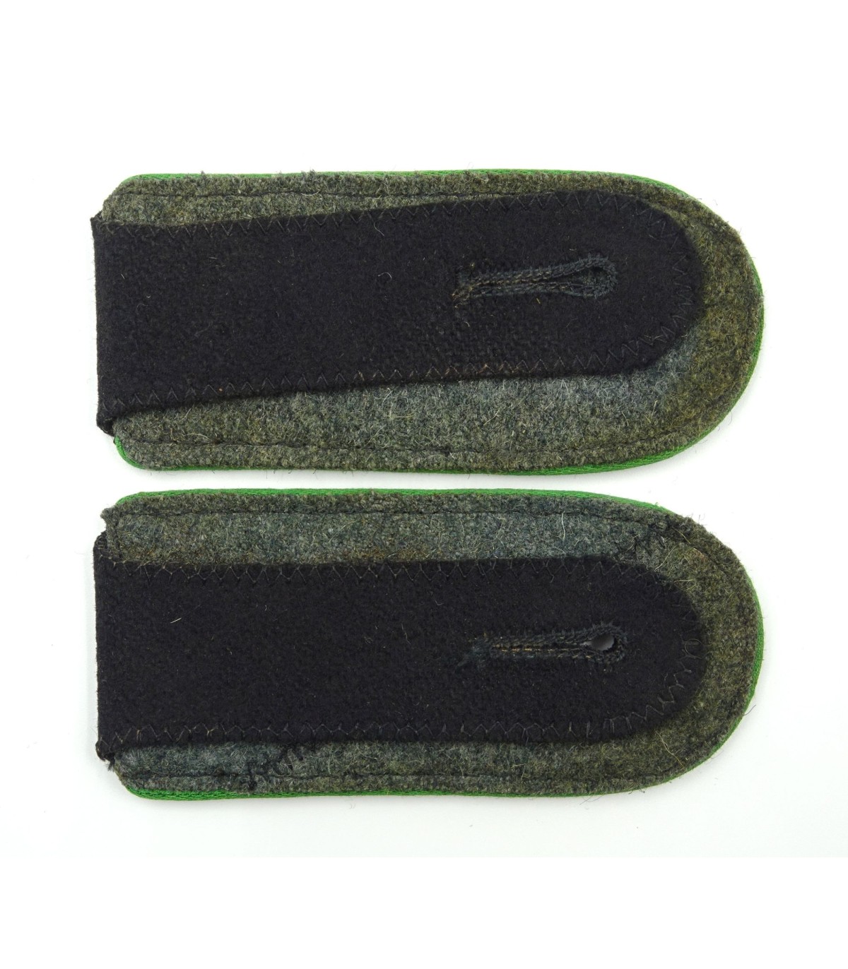 Black wool, fieldgrey underlay, Jer green piping. Hard to find. VGC.
