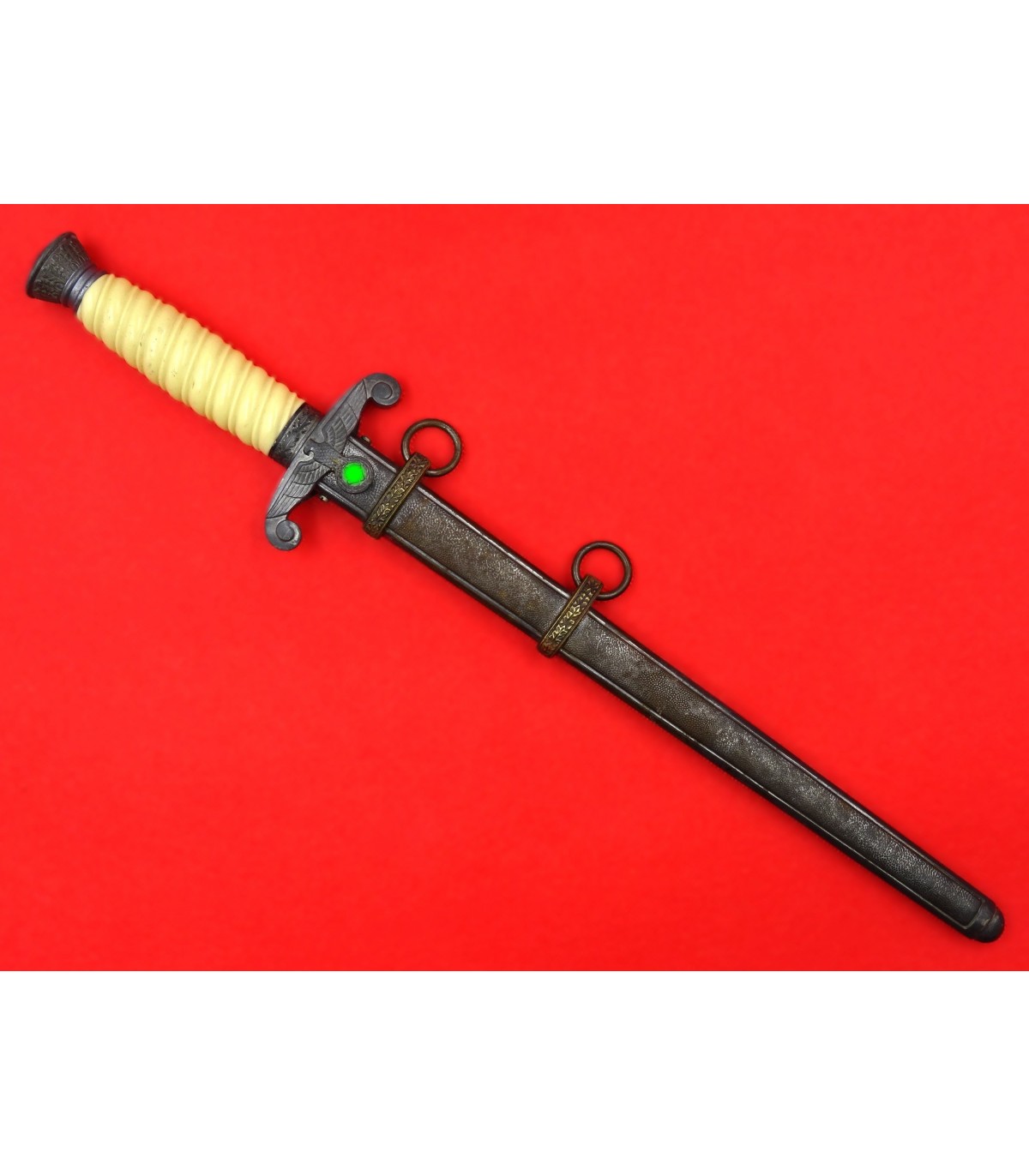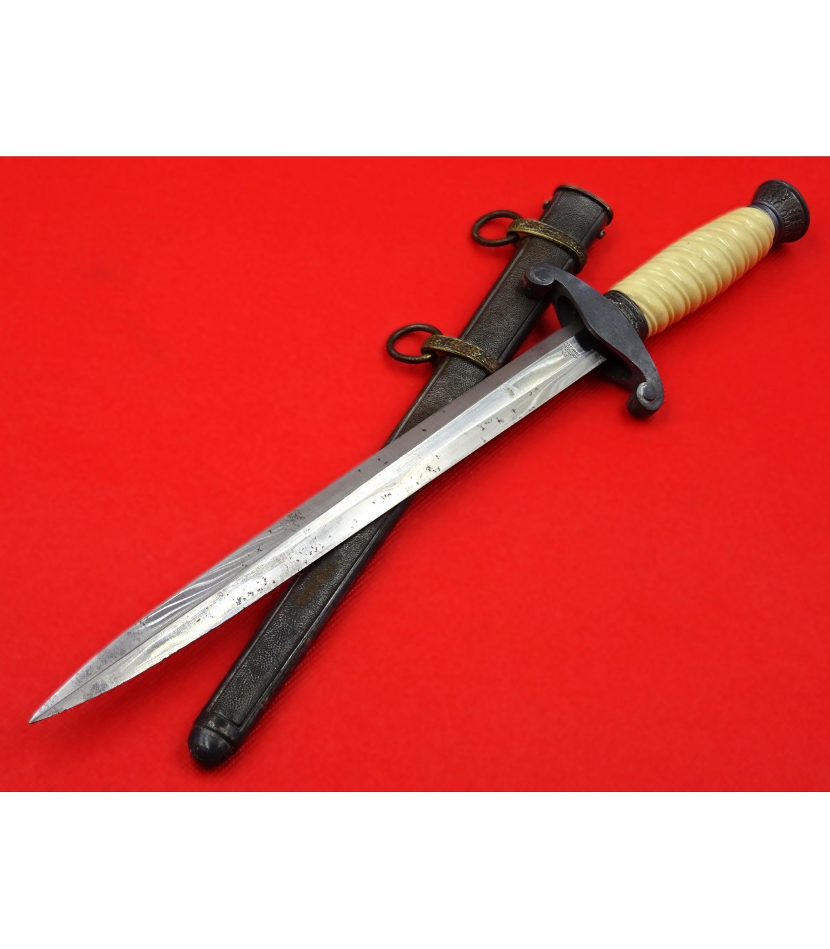 Bella lama. Fuso bianco. Nessun danno al fodero. Tipica manifattura del tempo di guerra. OTTIME CONDIZIONI.