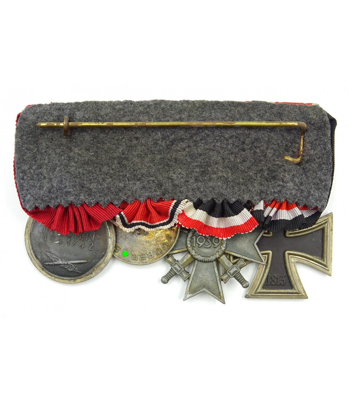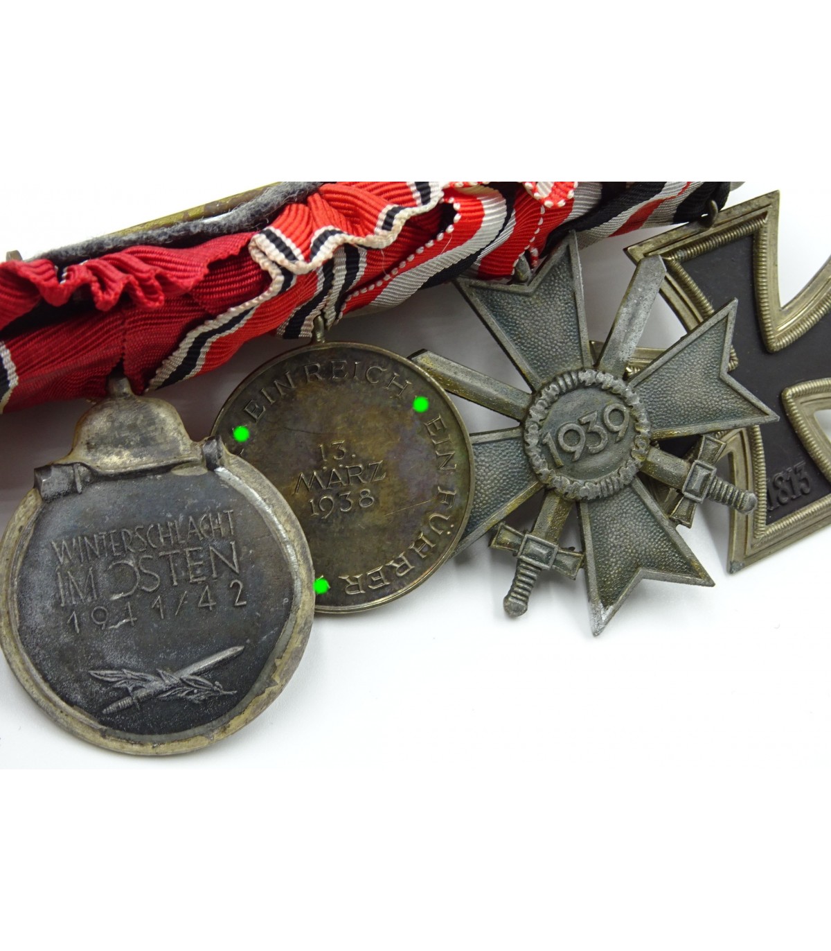 Croce di ferro di 2a classe 1939, croce al merito di guerra di 2a classe 1939 con spade, medaglia Anschluss e medaglia del fronte orientale. TBE