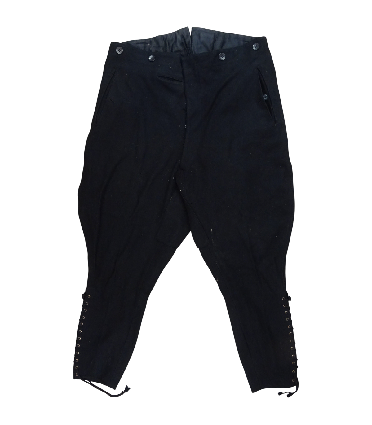 Lana nera, fodera nera. Vita 88 cm. Alcuni piccoli fori di tarme. ABE.