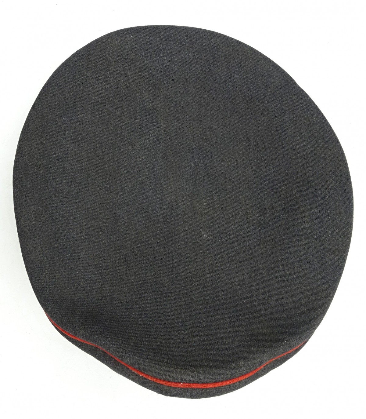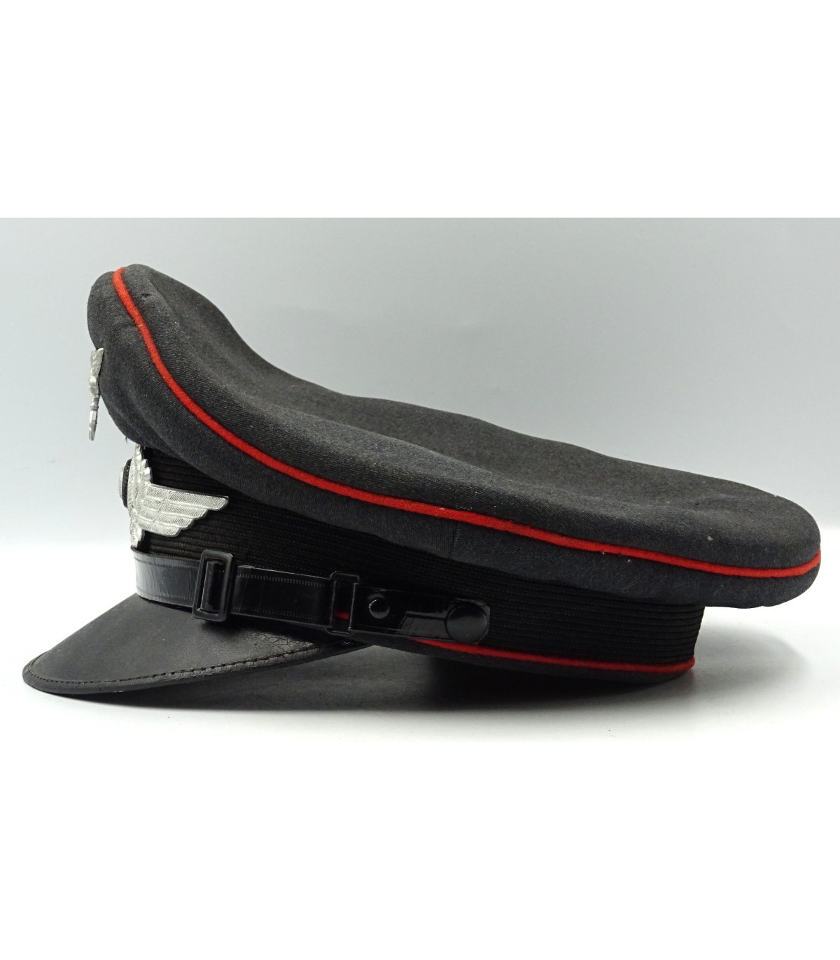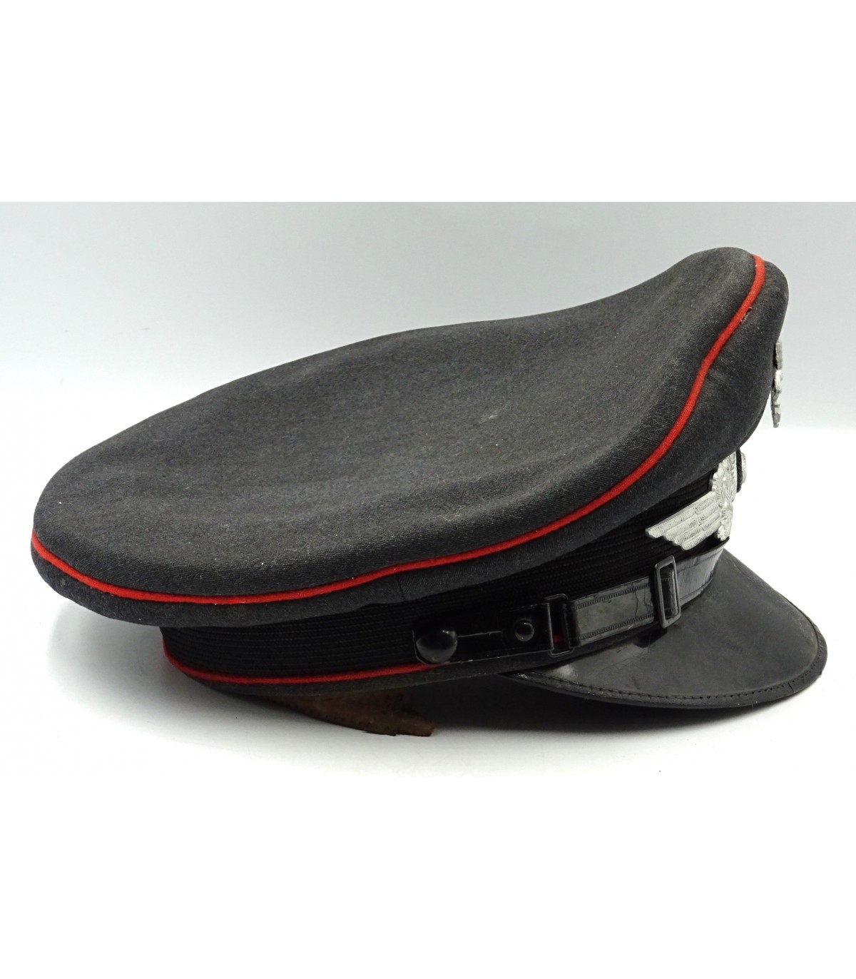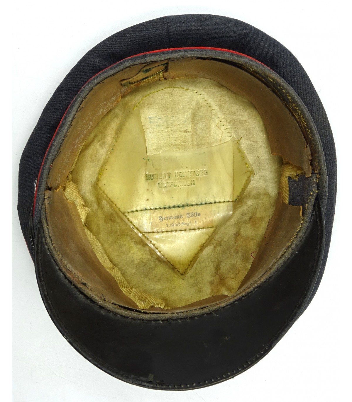 Completo. Cappuccio in maglia. Distintivi in alluminio. Sottogola in vernice. Visiera con bordo in tela cerata, parte inferiore nera. Nominativo con il nome di Hermann Tölke del Reggimento Flak 4 (Dortmund - 1935/1945). Interno sbiadito, altrimenti BE-TBE.