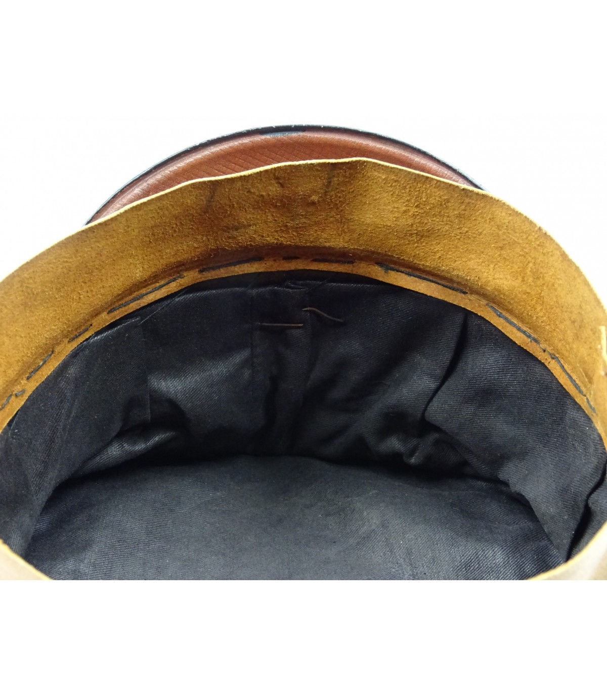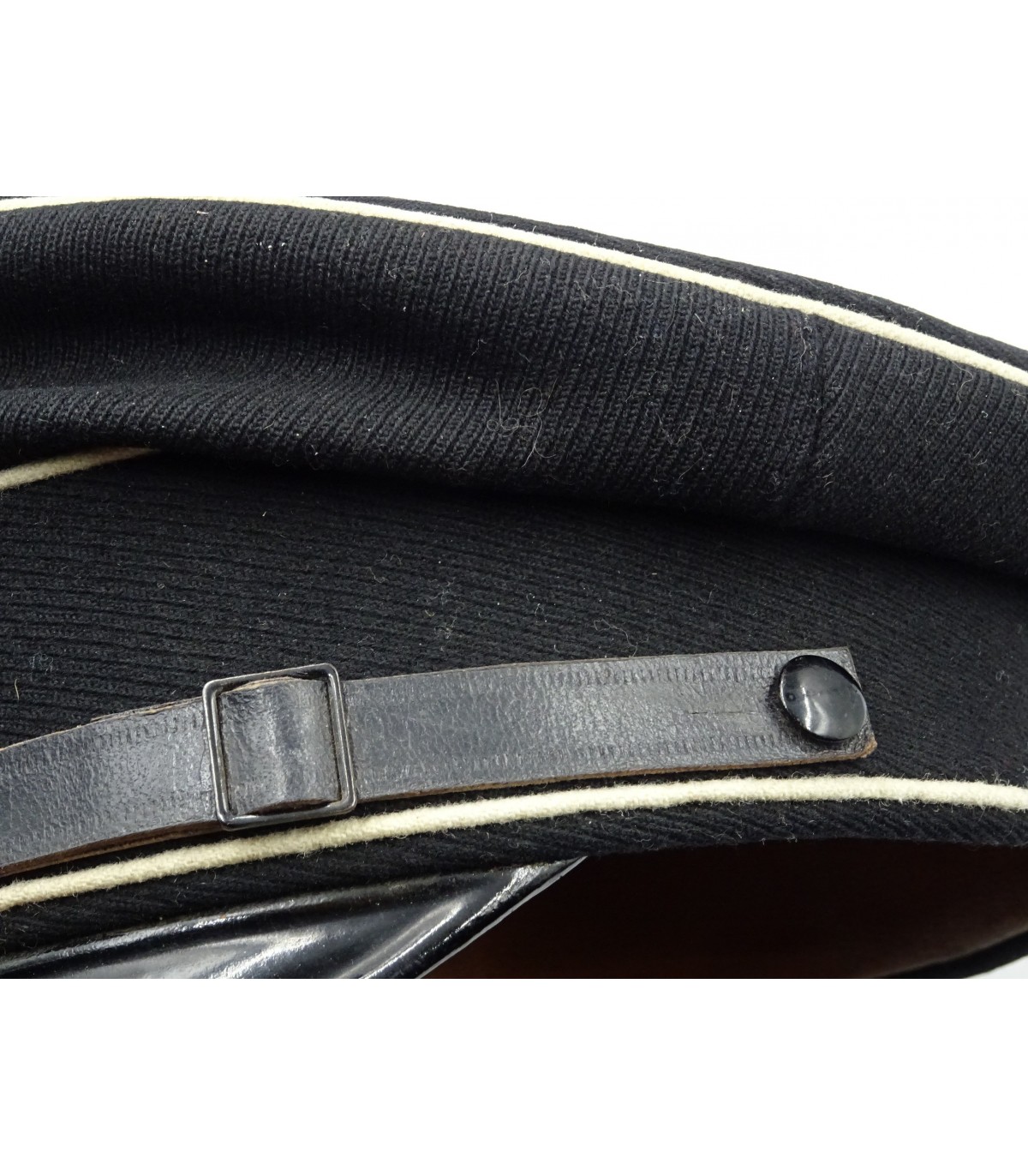Un berretto Allgemaine-SS eccezionale e forse unico per un bambino! Sappiamo che gli alti ufficiali dell'esercito e i dignitari del regime amavano fornire ai loro figli uniformi a loro immagine e somiglianza e, sotto il regime nazista, tali uniformi erano di qualità militare, realizzate dagli stessi sarti e modiste militari e negli stessi materiali degli articoli per adulti. È il caso di questo rarissimo berretto, realizzato nel gabardine nero del "vero", con l'aquila e il teschio del 1° tipo, la visiera e il sottogola con anello centrale rigorosamente identici a quelli dei "grandi"! Per dare un'idea delle dimensioni (bambino di 6-8 anni?), è presentato accanto a un copricapo di dimensioni normali. BE-TBE.
