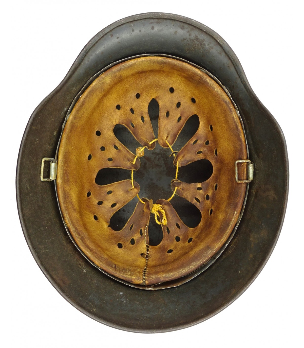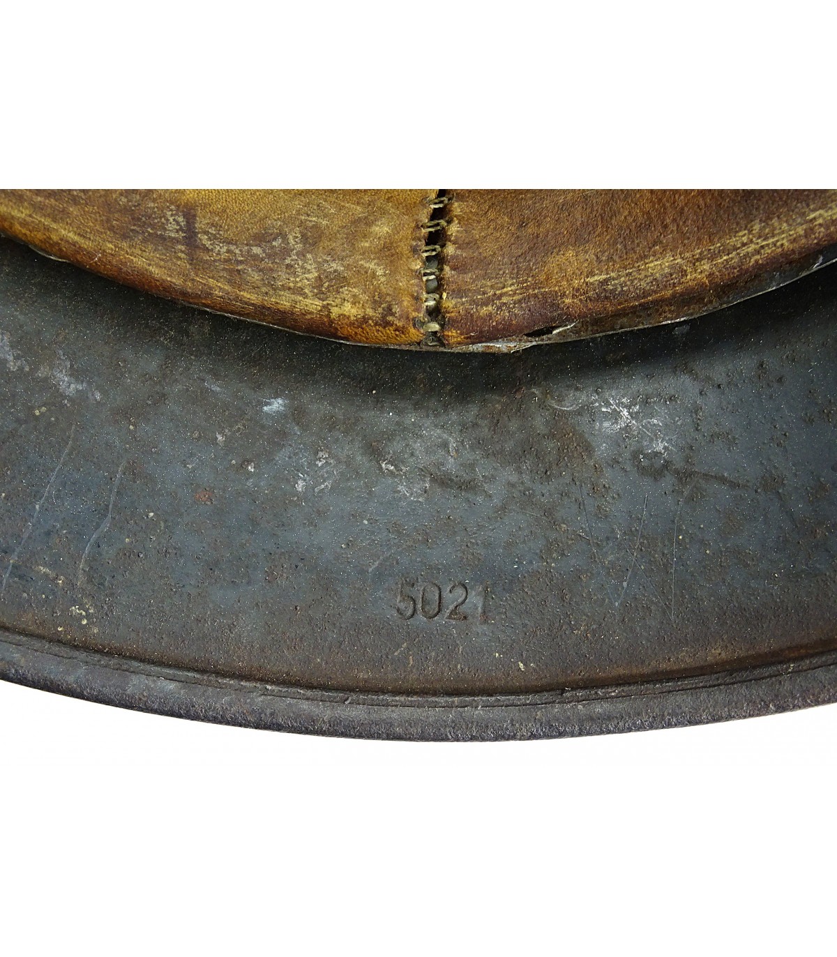 ET66, #5021, taglia 60. Senza sottogola. Pelle del copricapo asciutta. 60% vernice grigia LW, 30% aquila LW 2° tipo. EM.