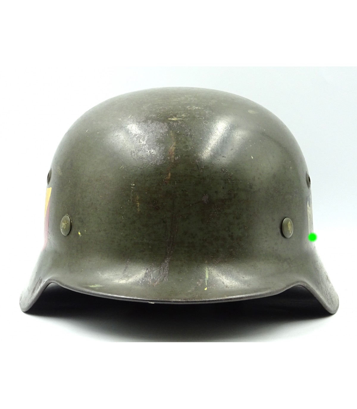 Eccezionale elmo Mle 35 a doppia insegna del legionario vallone R. Hers