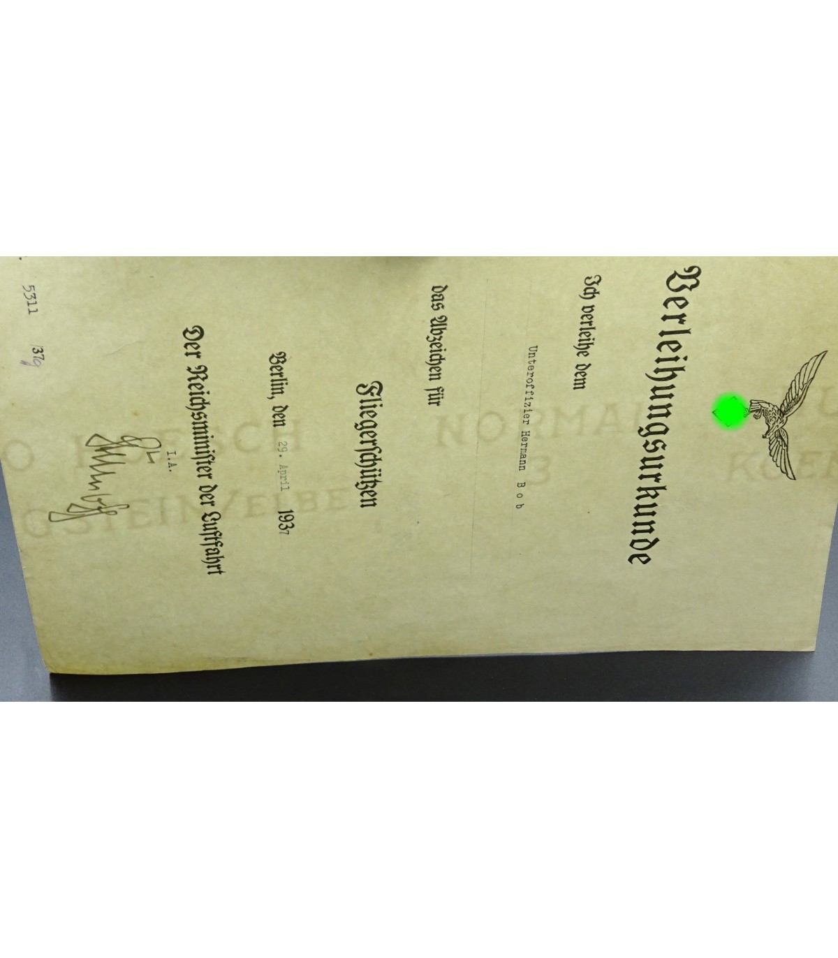 Diploma di distintivo da mitragliere "Fliegerschützen-Abzeichen