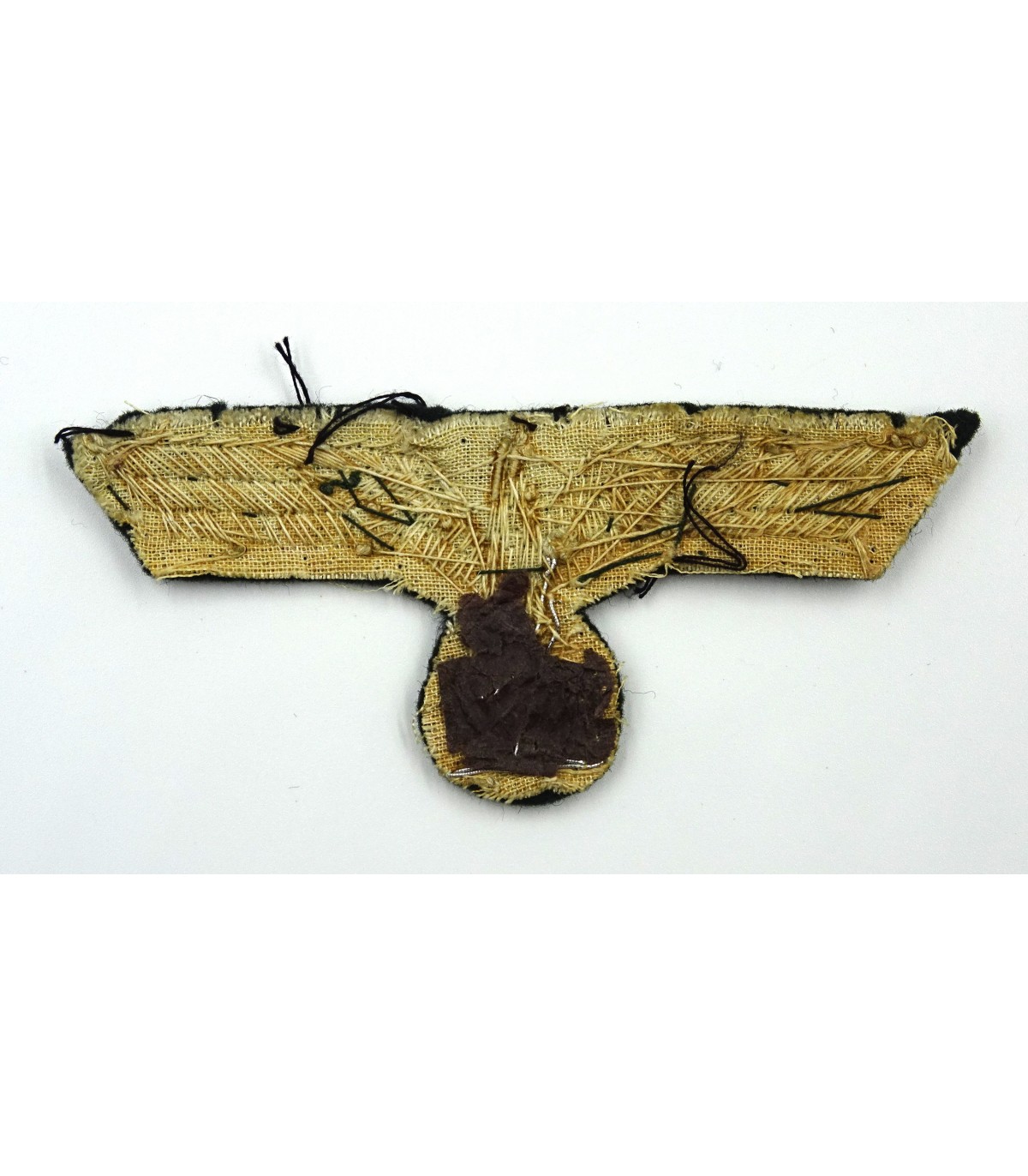 Ricamato a mano in canetille di alluminio su fondo di tela verde scuro. ABE.