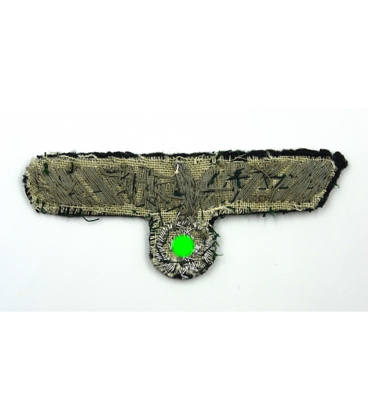 Ricamato a mano in canetille di alluminio su sfondo di tela verde scuro. EM.