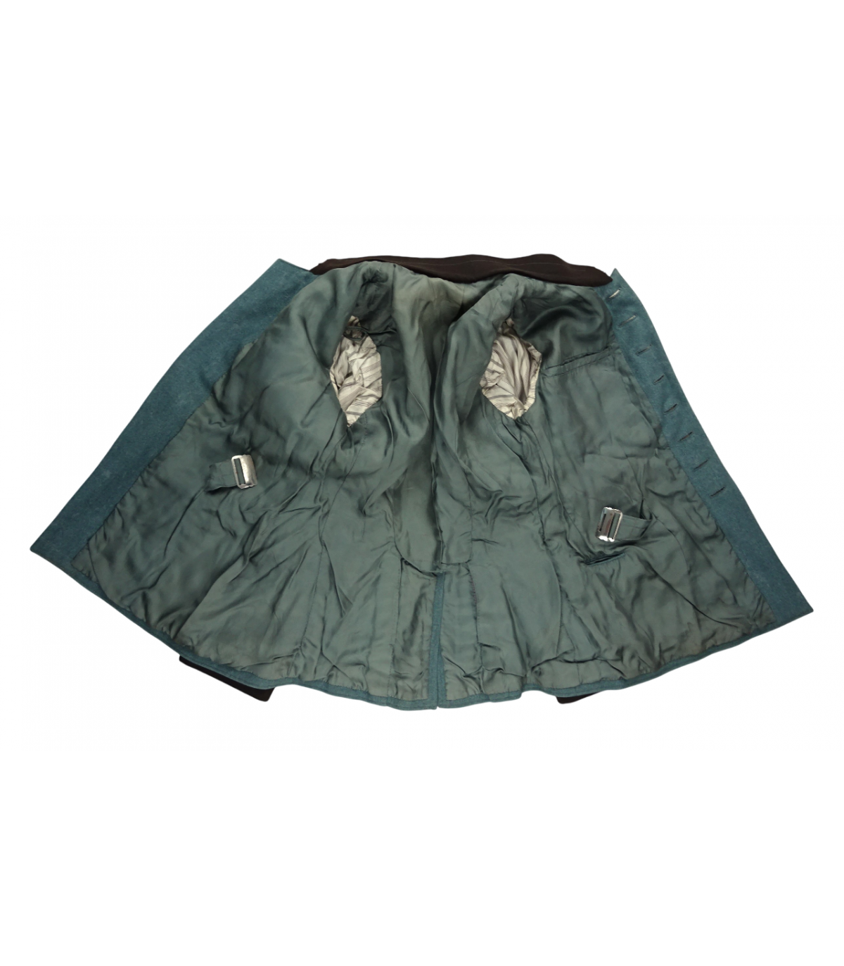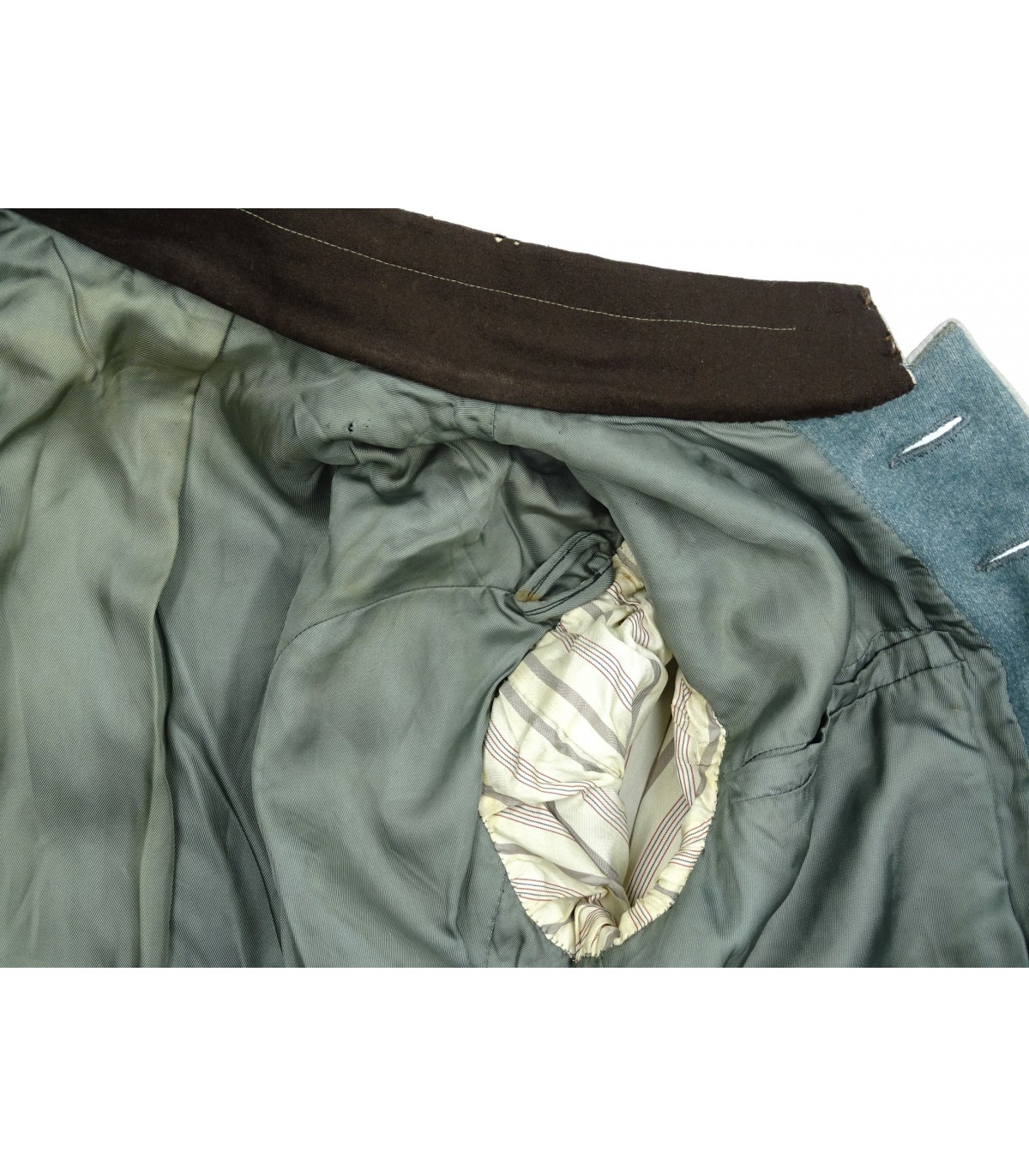 Giacca intera con splendida aquila da braccio ricamata a mano. Doppie spalline da divano. Profili grigi. Maglia verde polacco. Due riparazioni sulla schiena. Barra a 5 nastri così polizia e croce di anzianità NSDAP, croce di ferro 14-18 con richiamo 1939. Pantaloni da cavallo in maglia. Set raro. BUONE CONDIZIONI.