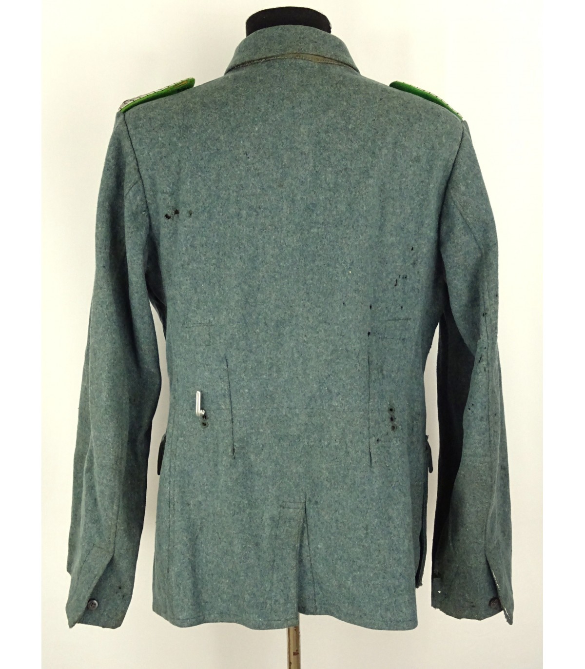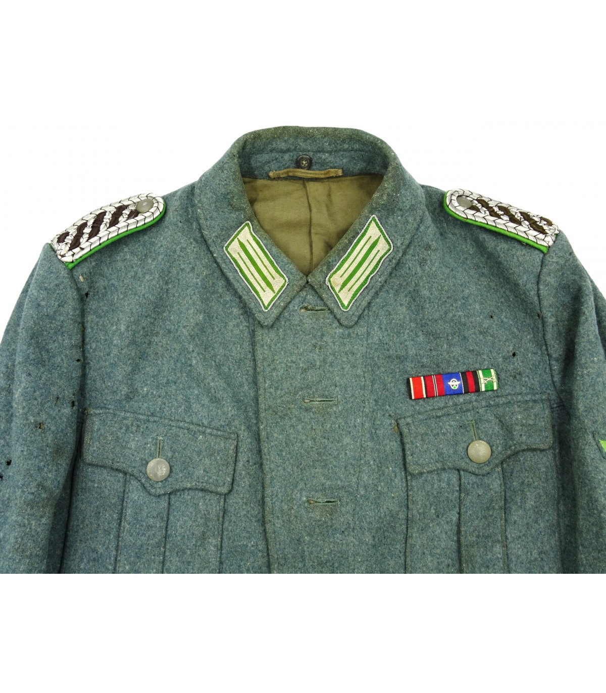 Giacca Mle 40 di un Meister delle unità di combattimento della Polizei. Completo. Bar 5 nastrini tra cui medaglia dei volontari dell'Est con spade. Petto 102. Numerosi fori di tarme.
