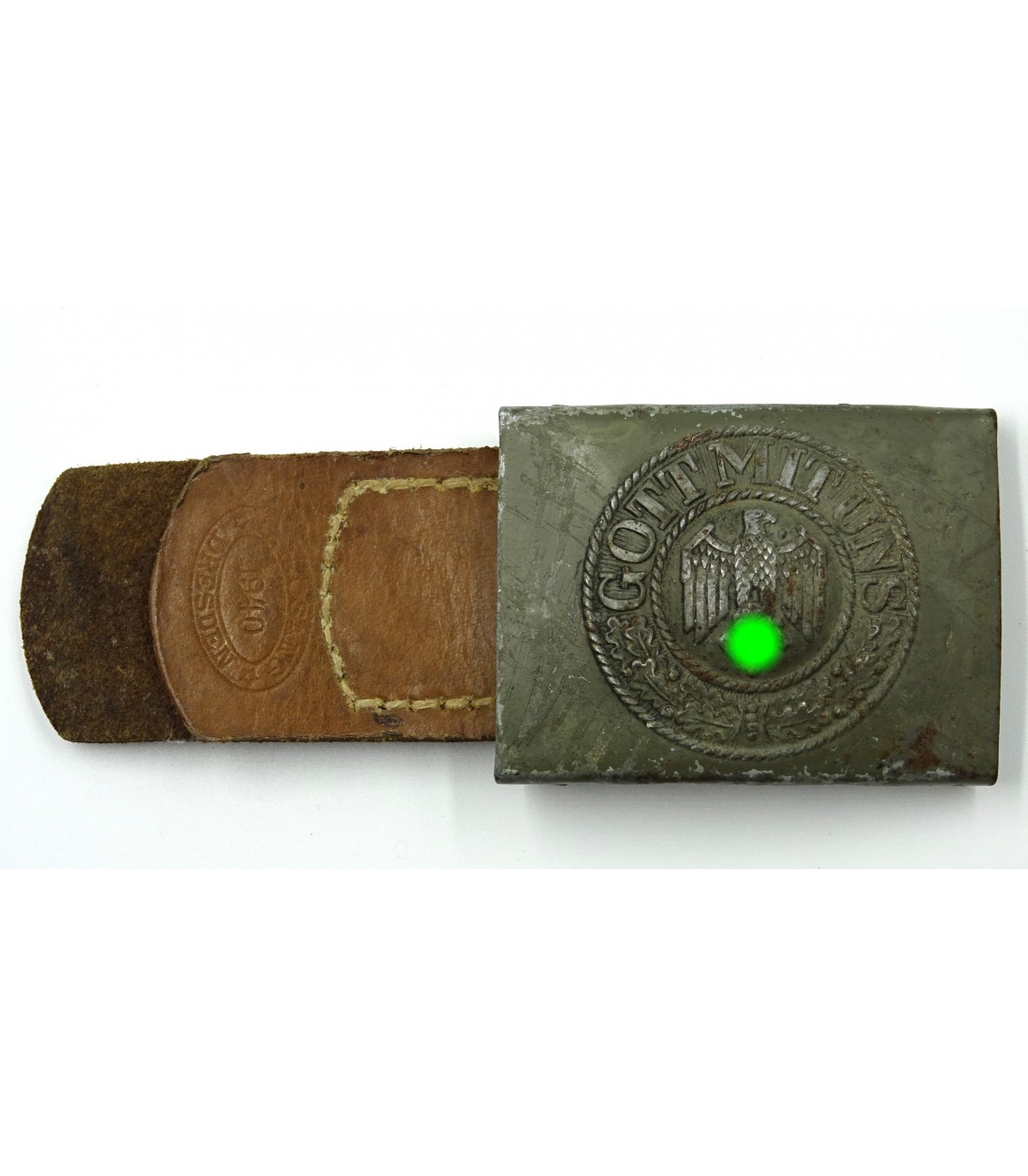 Fibbia da cintura per truppe WH, acciaio, linguetta in pelle