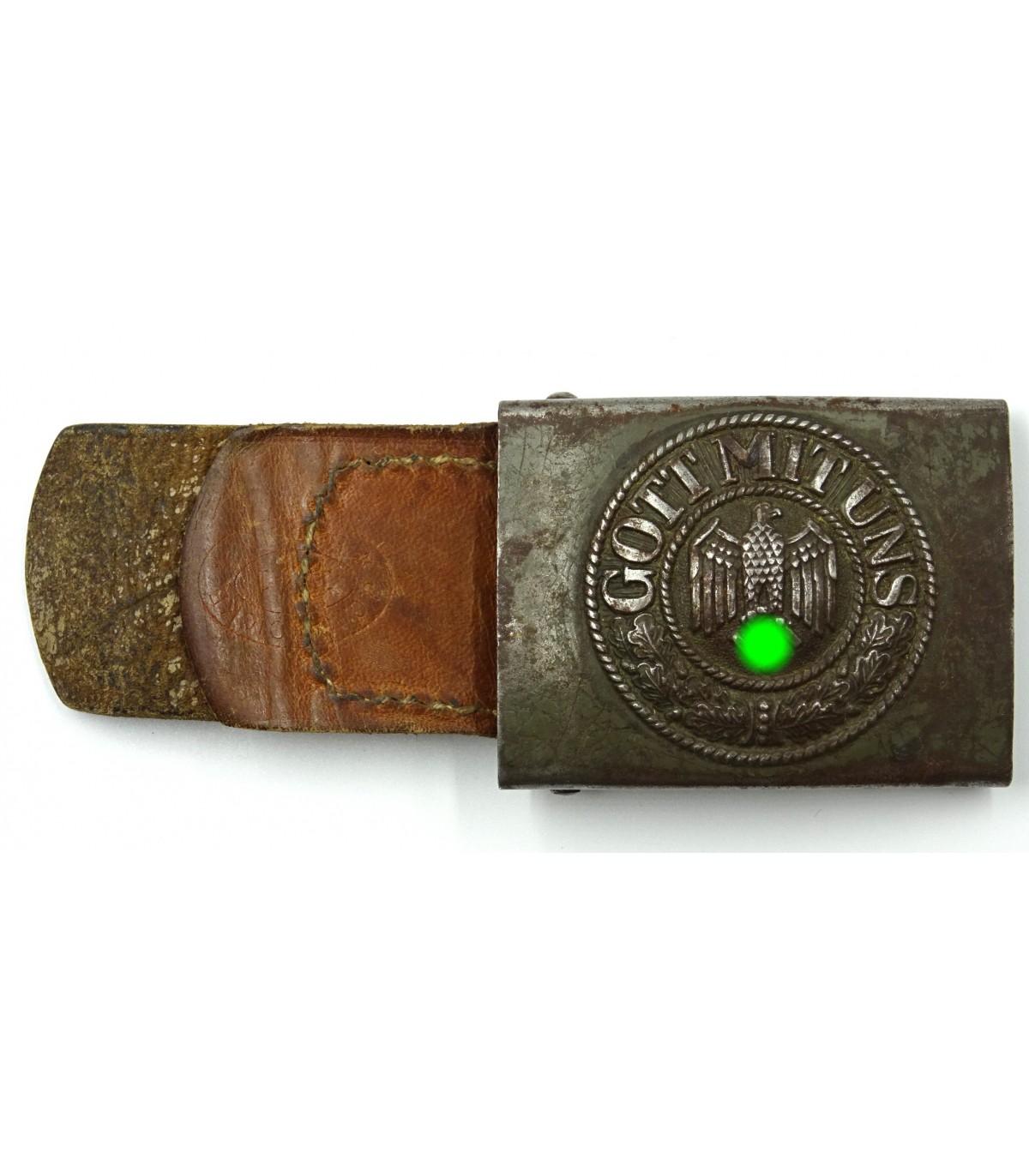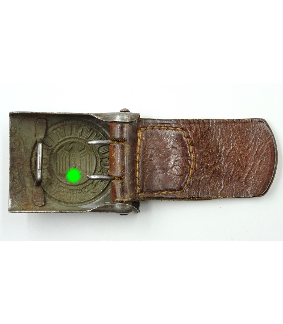 Fibbia da cintura per truppe WH, acciaio, linguetta in pelle