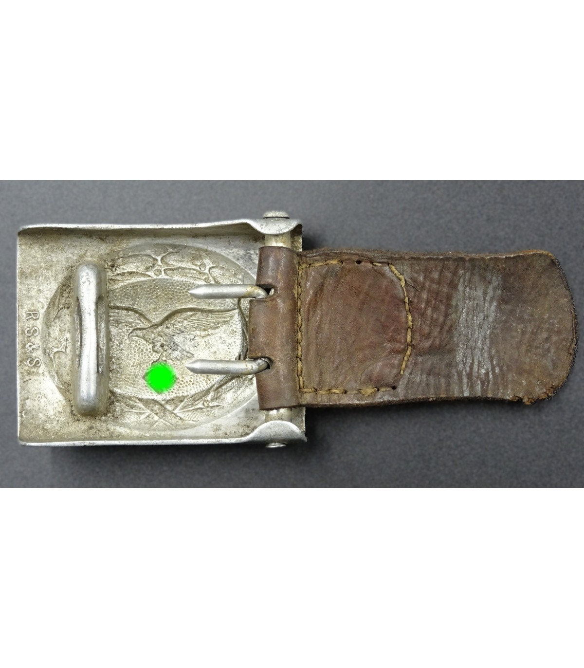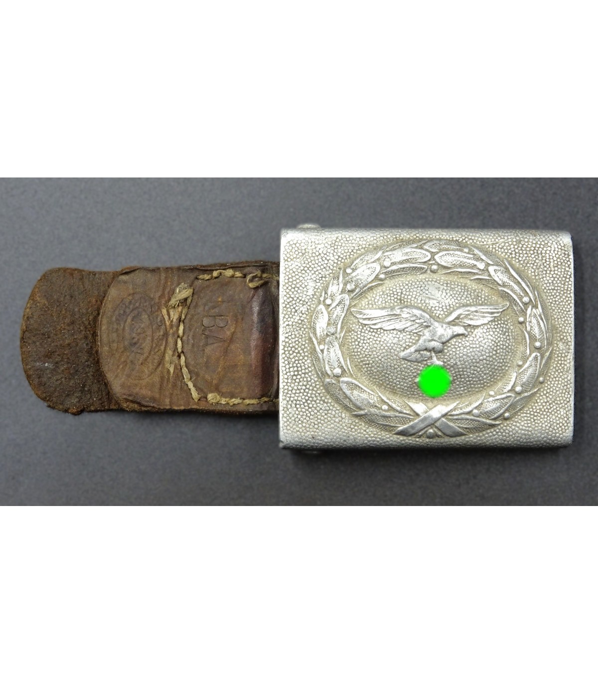 Fibbia per cintura per truppe LW, alluminio, linguetta in pelle