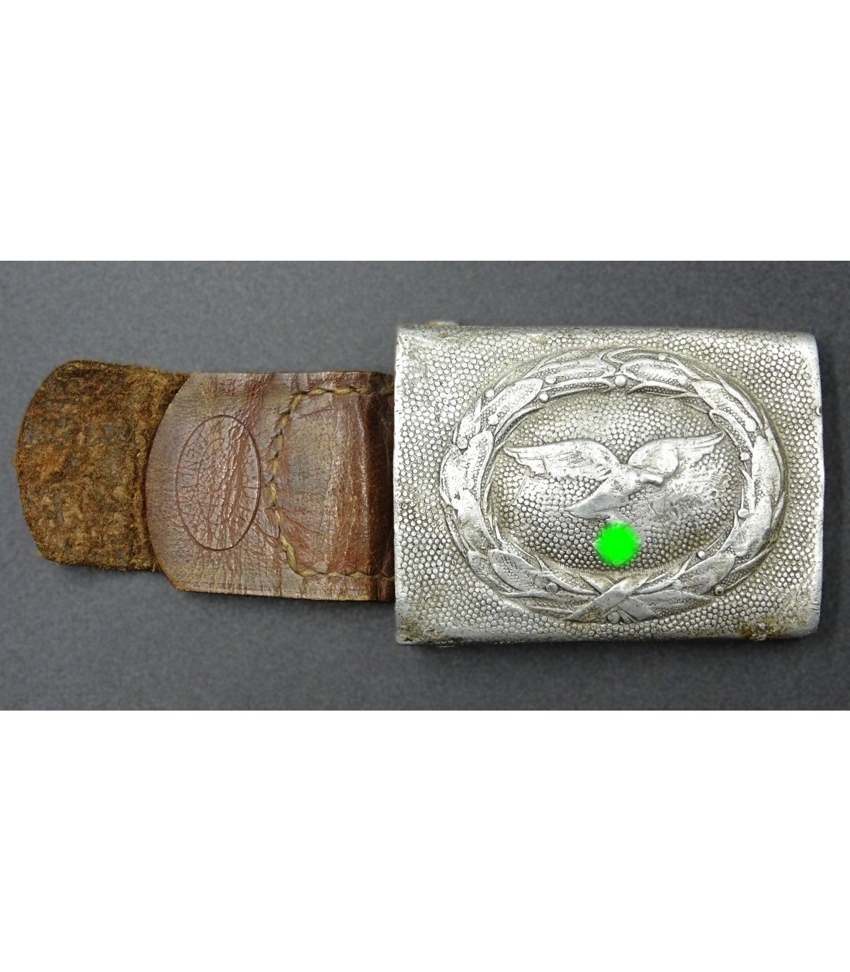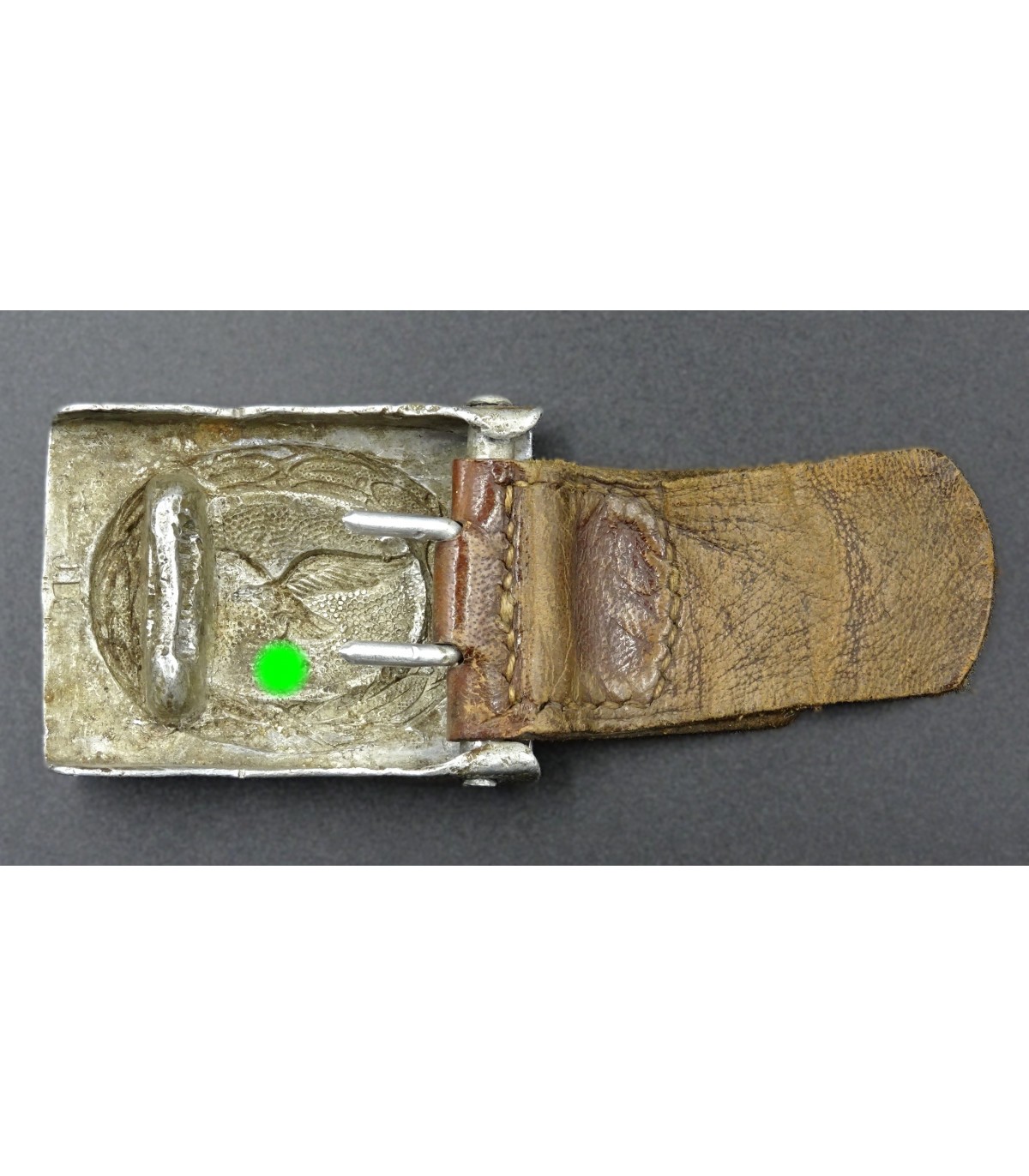 Fibbia per cintura per truppe LW, alluminio, linguetta in pelle