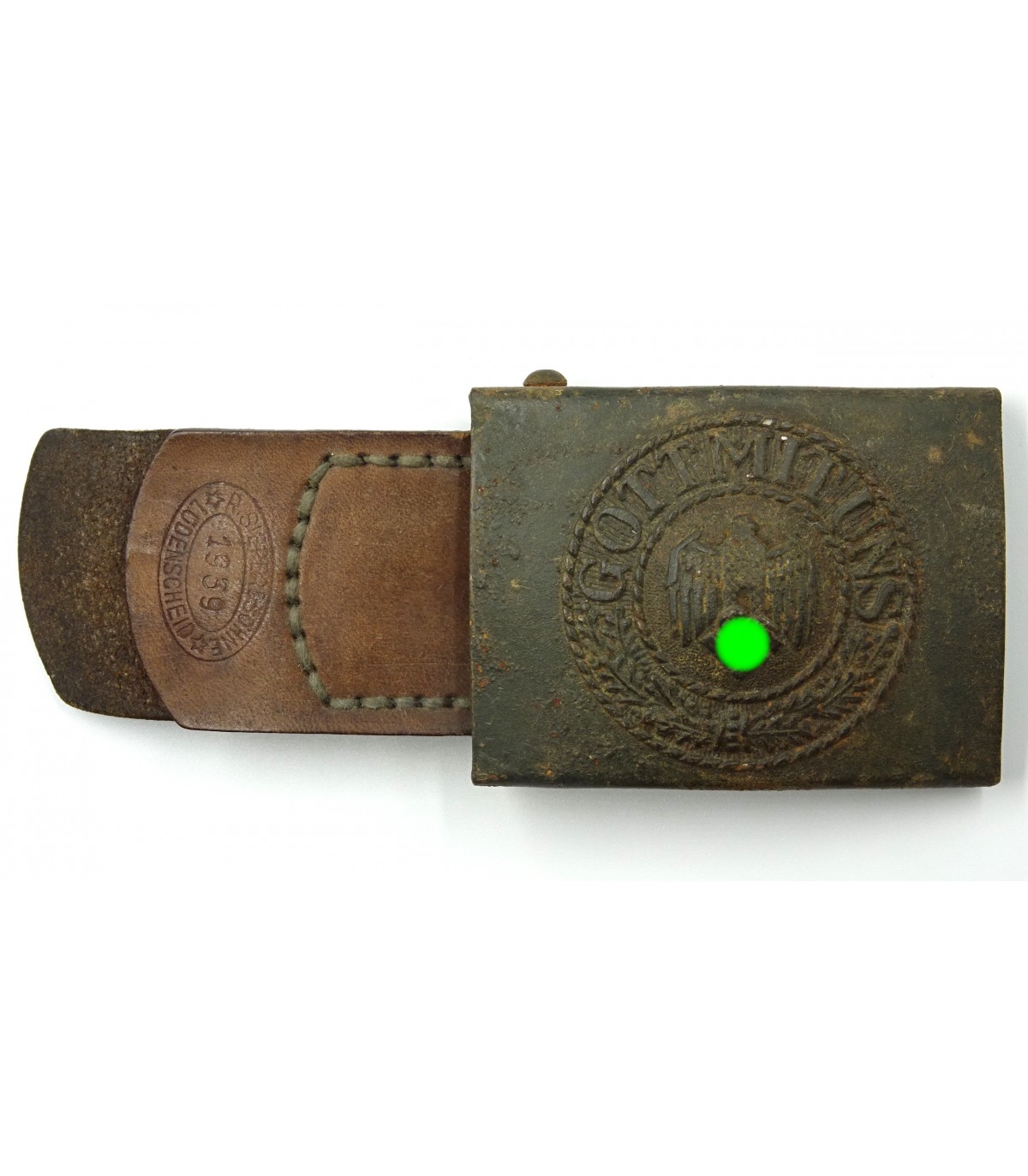 Linguetta in pelle. 70% vernice feldgrau. ABE.