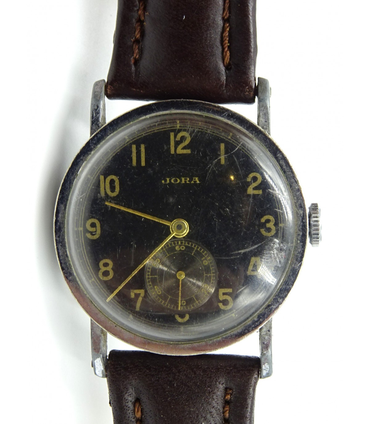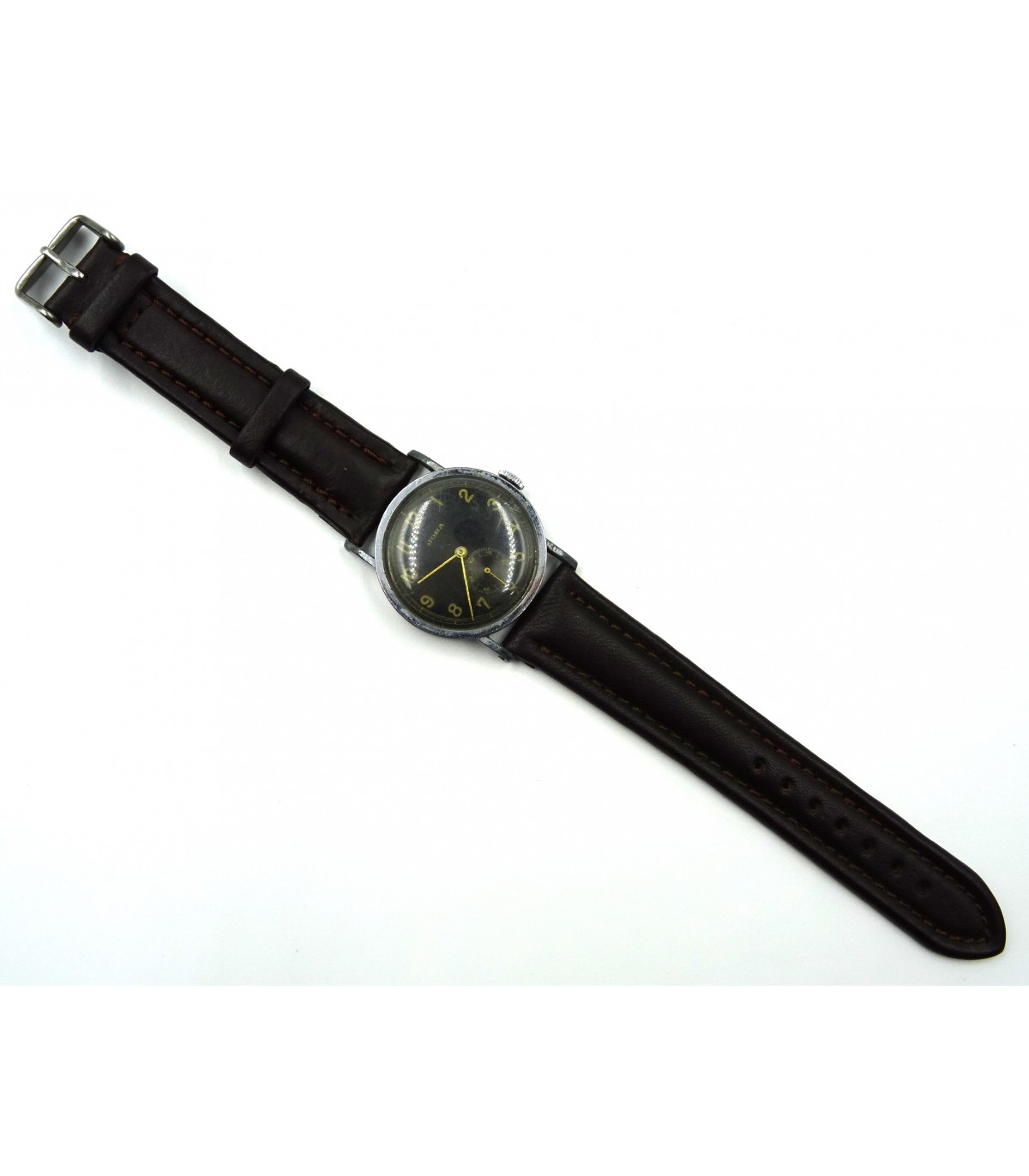 Contratto n. 435051. Quadrante nero. Perfettamente funzionante (revisionato). Con cinturino in pelle marrone nello stile dell'epoca. BUONE CONDIZIONI.