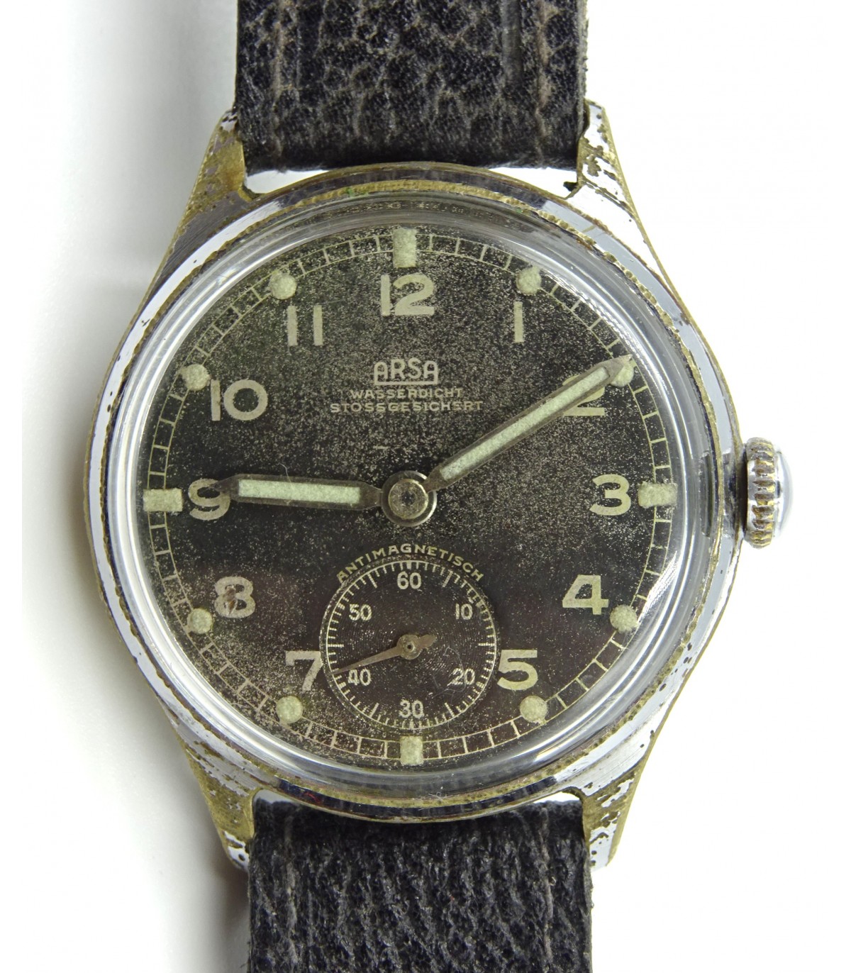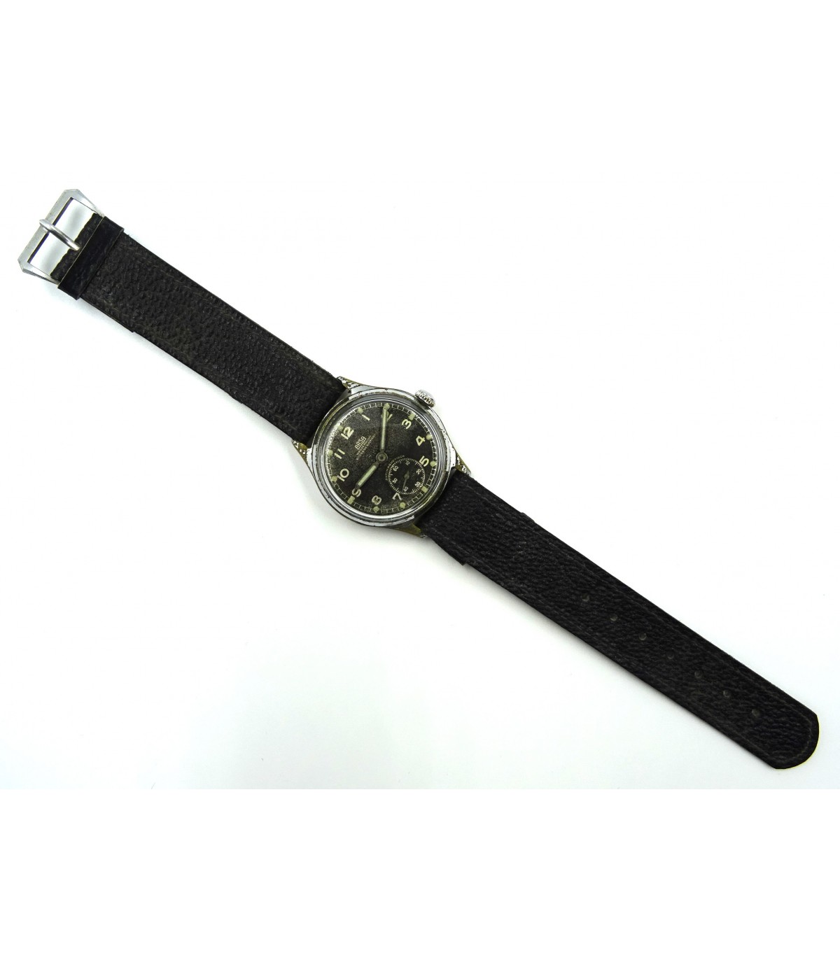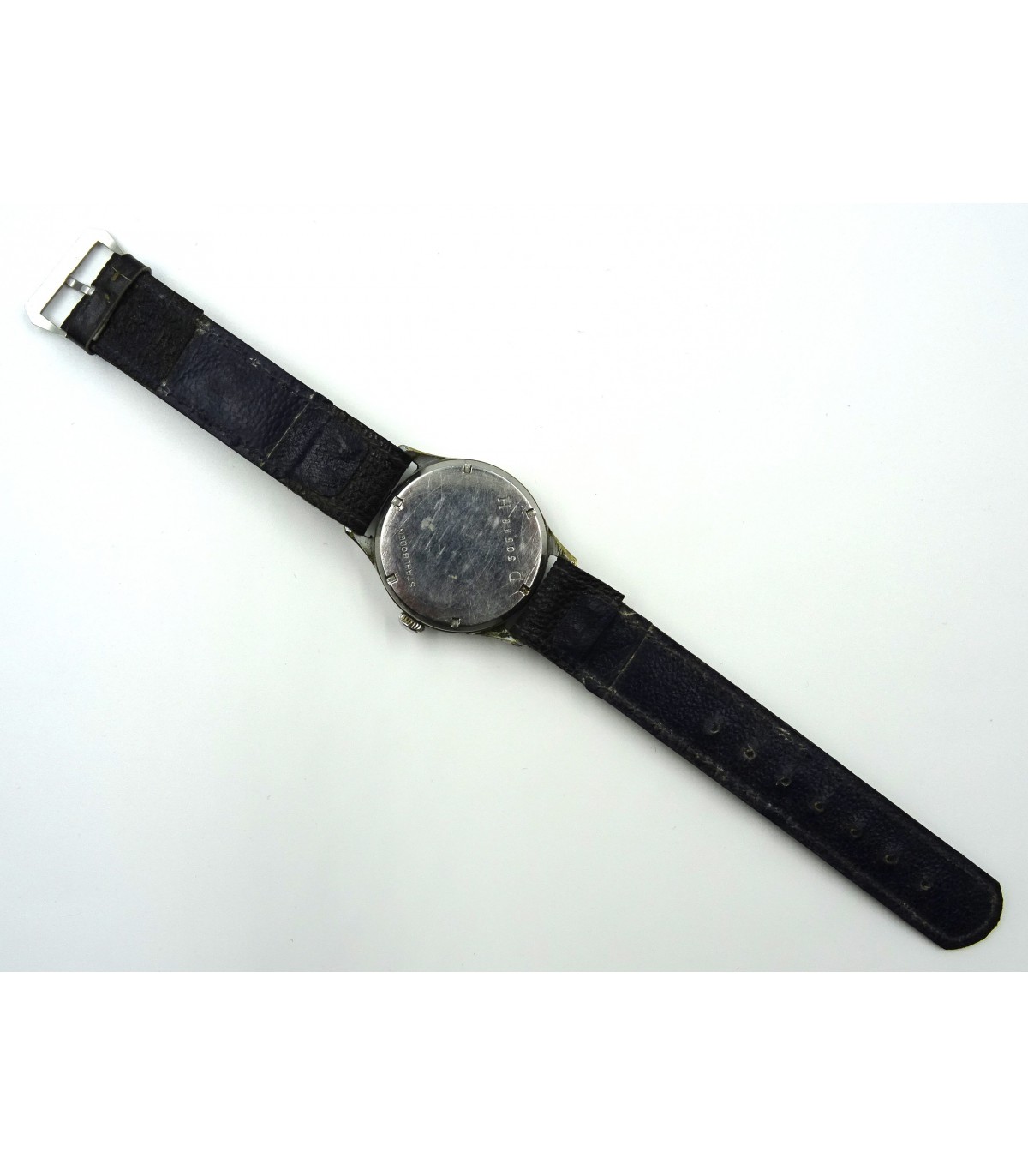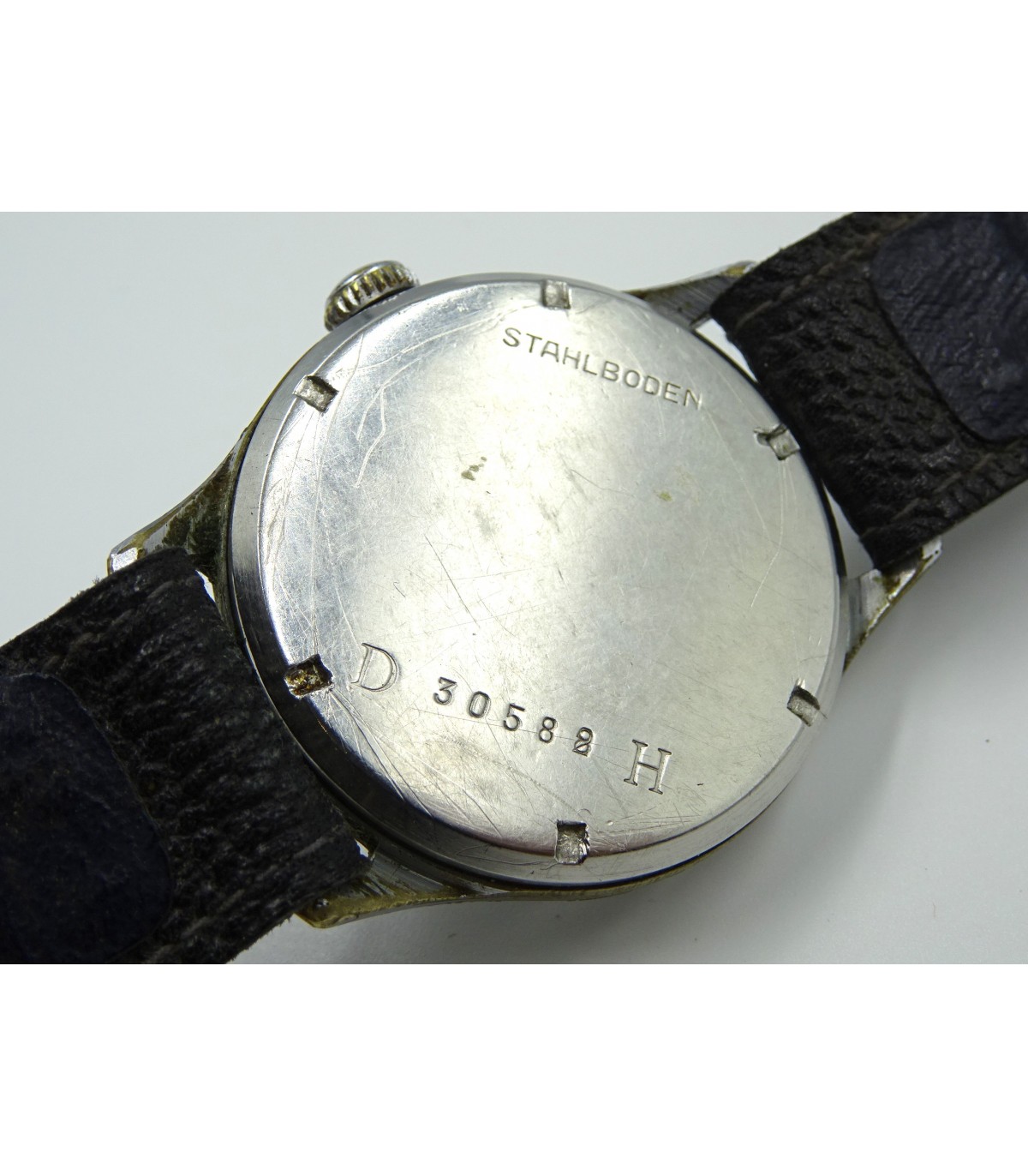 Contratto n. D30588H. Quadrante nero. Perfettamente funzionante (revisionato). Con cinturino in pelle nera. BE-TBE.