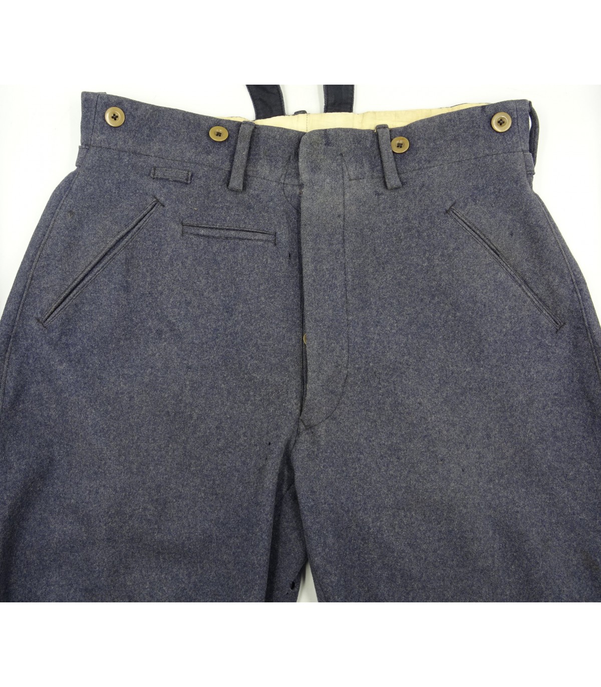Tessuto per truppe. Tasca a soffietto. Vita 85. Alcuni piccoli fori di tarme, per il resto ottime condizioni e poco indossato.