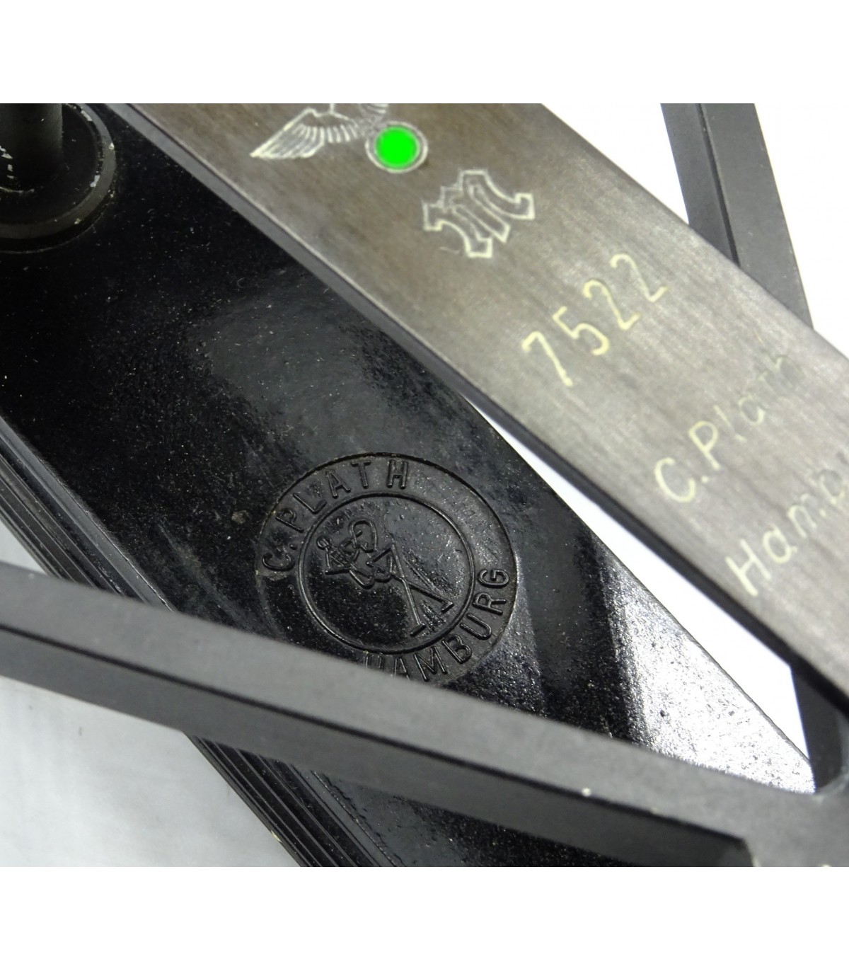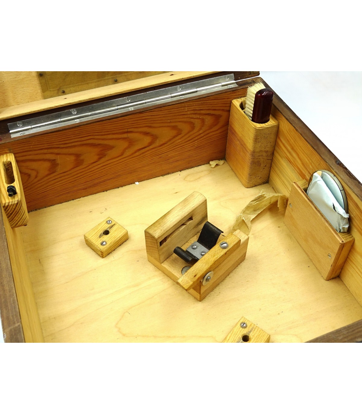 Bellissimo strumento, funzionale e ben marcato. Nella sua custodia in legno, manico in alluminio, contiene anche una spazzola, un panno, 2 bicchieri di ricambio e un piccolo strumento di smontaggio. Manca il Prüfschein. Bel set in BE-TBE.